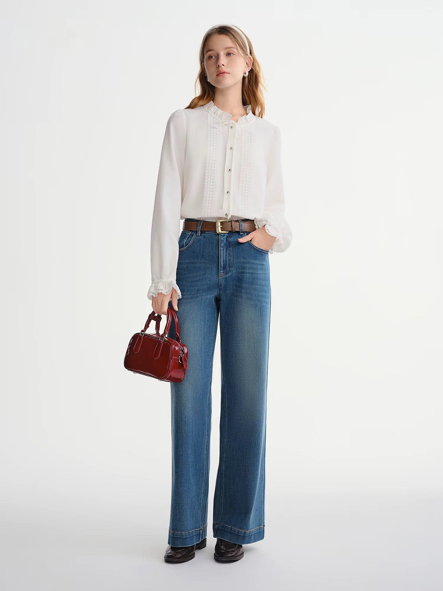 【Premium Series】Original Color Straight Wide-leg Brushed Jeans for Women Winter 2025 New Style Ins Simple Design All-match -