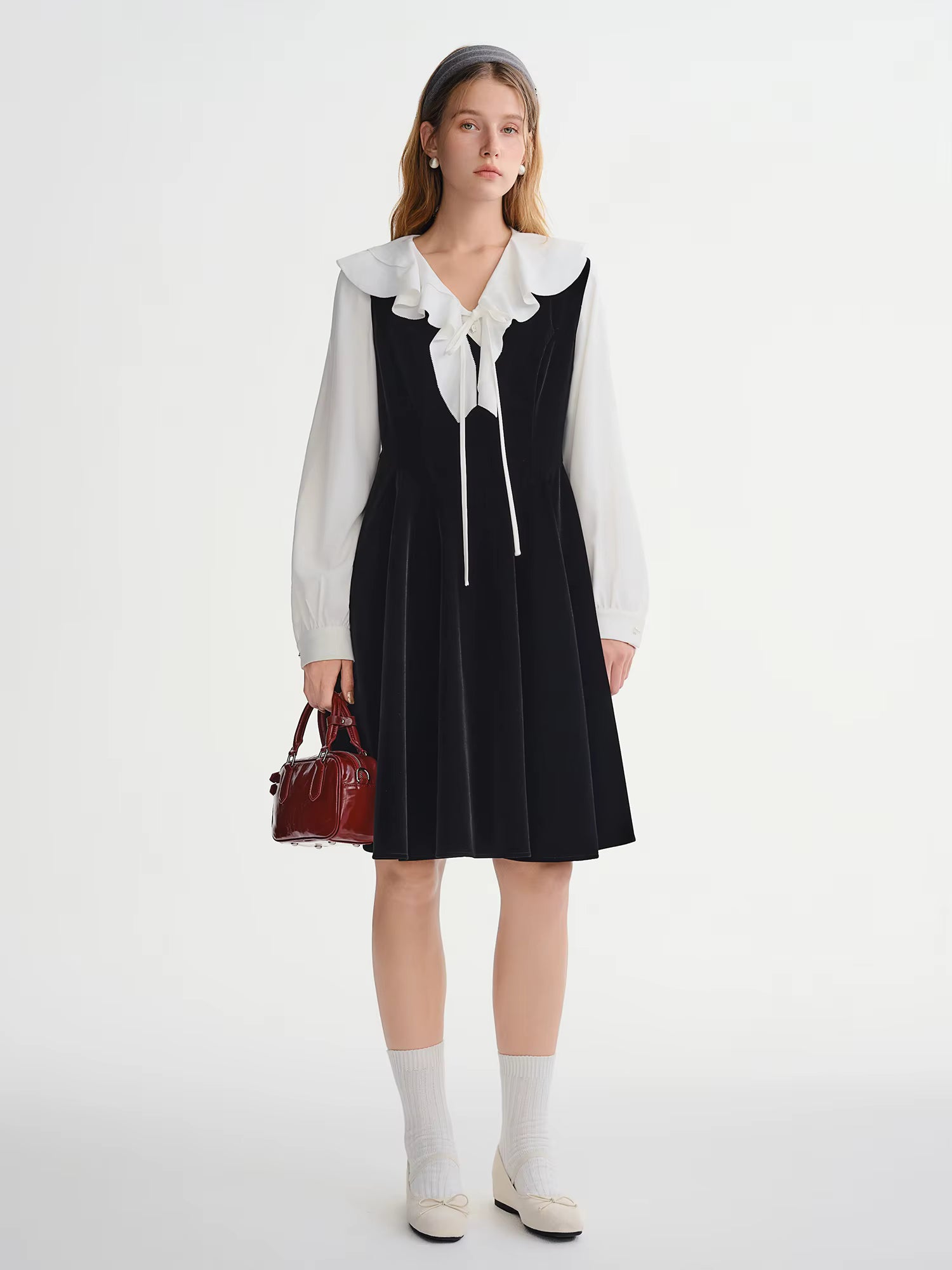 Stylish Plus-Size Flowing Velvet Waist defining Vest Design Dress - Autumn/Winter Deep V-Neck Sleeveless 2025 Winter New -