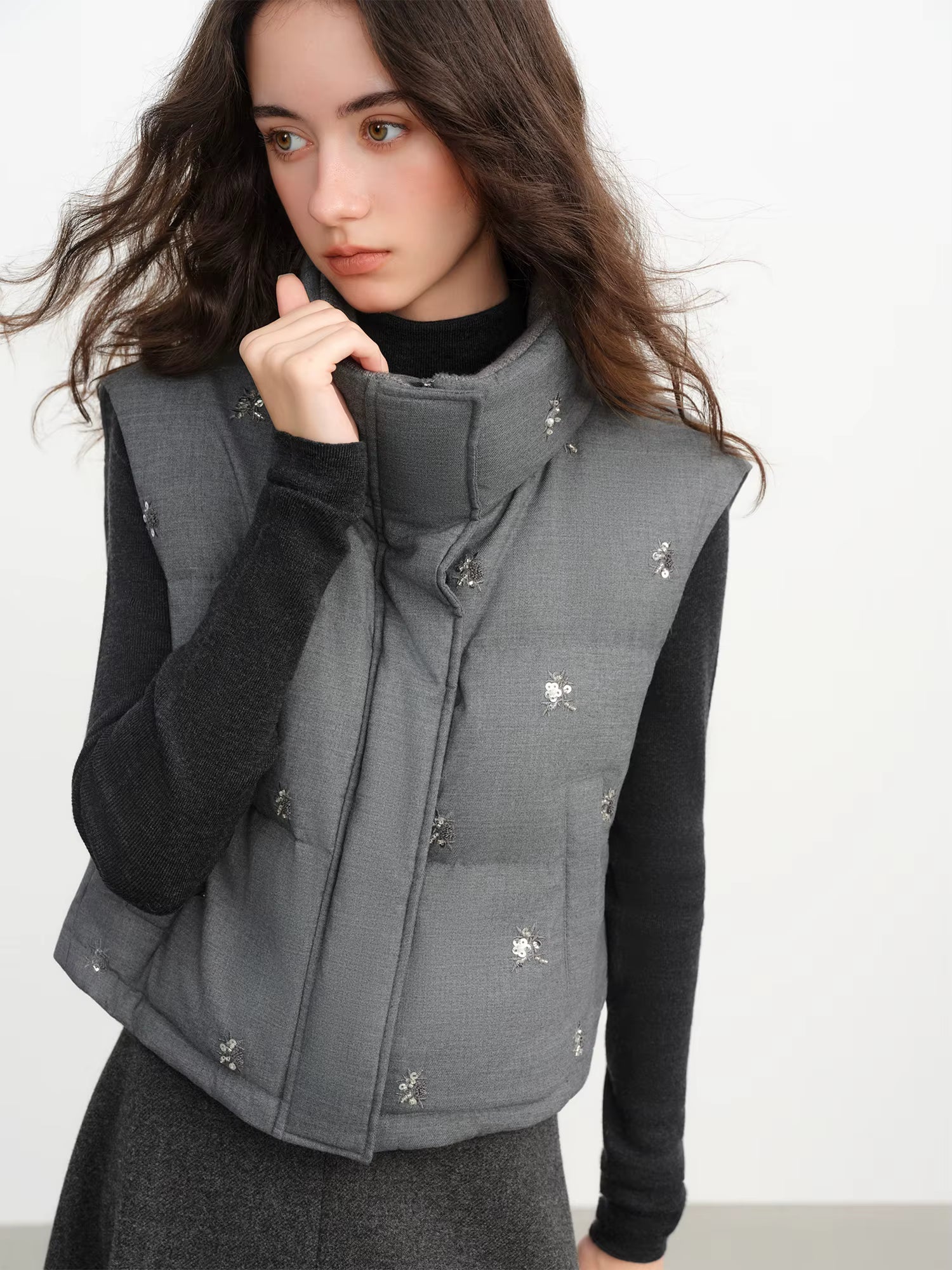 【Premium Series】Beaded Short Puffer Down Vest Women Autumn Winter Quilted Down Jacket Down Gilet Coat Outdoor Streetwear -