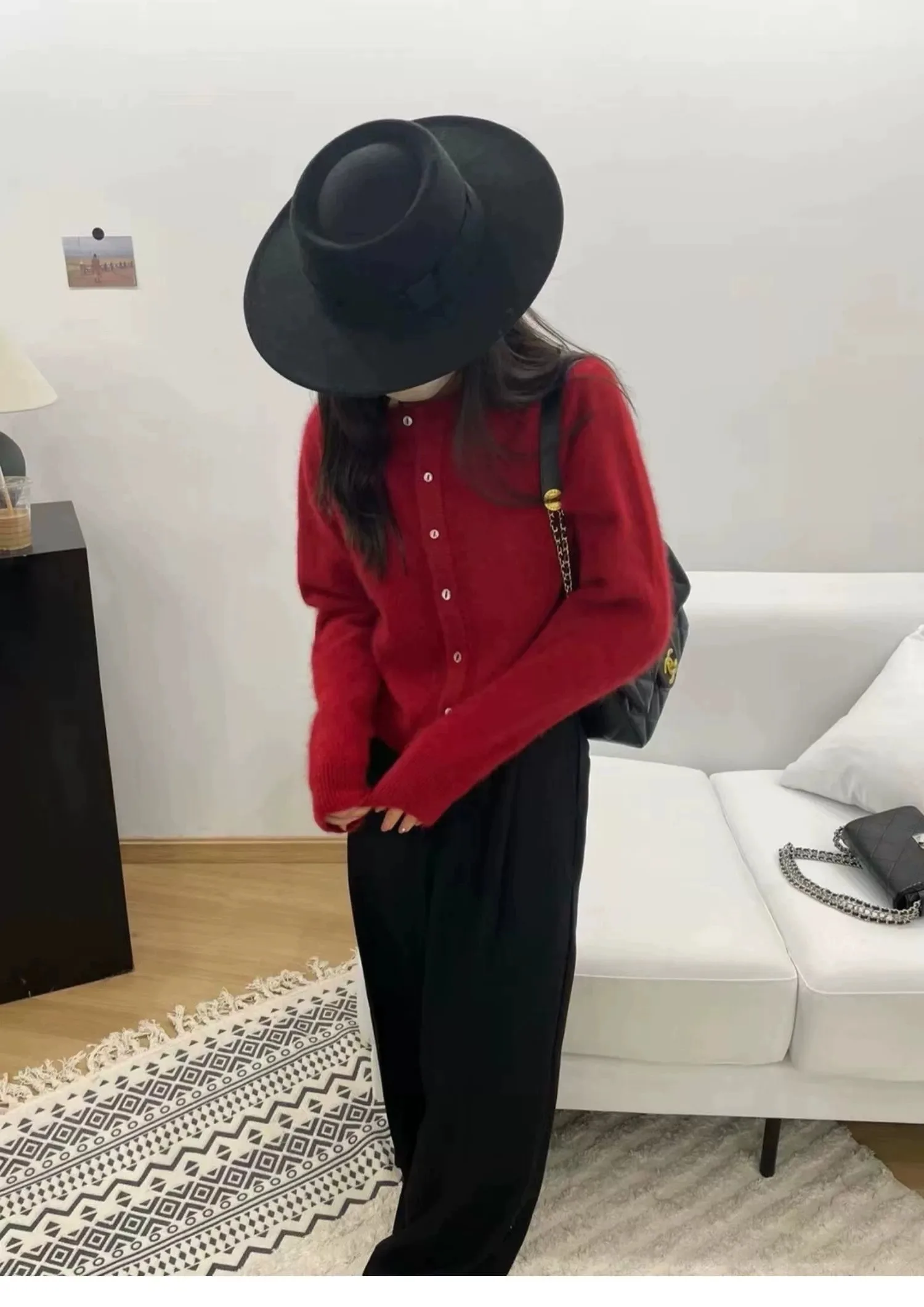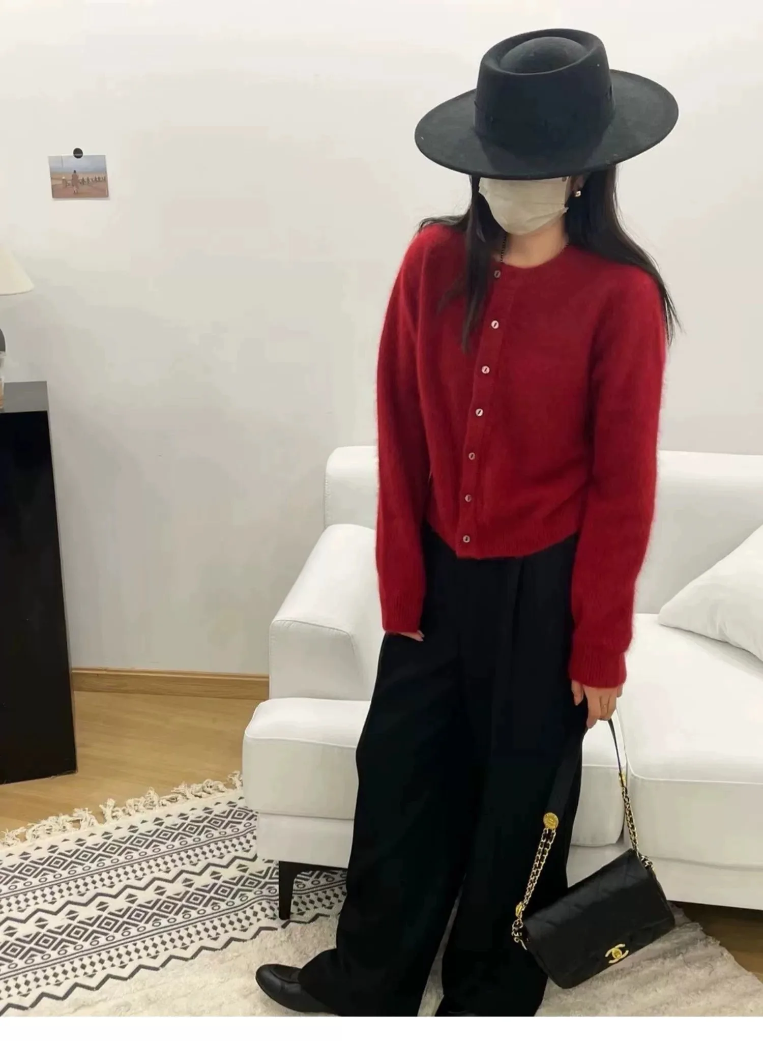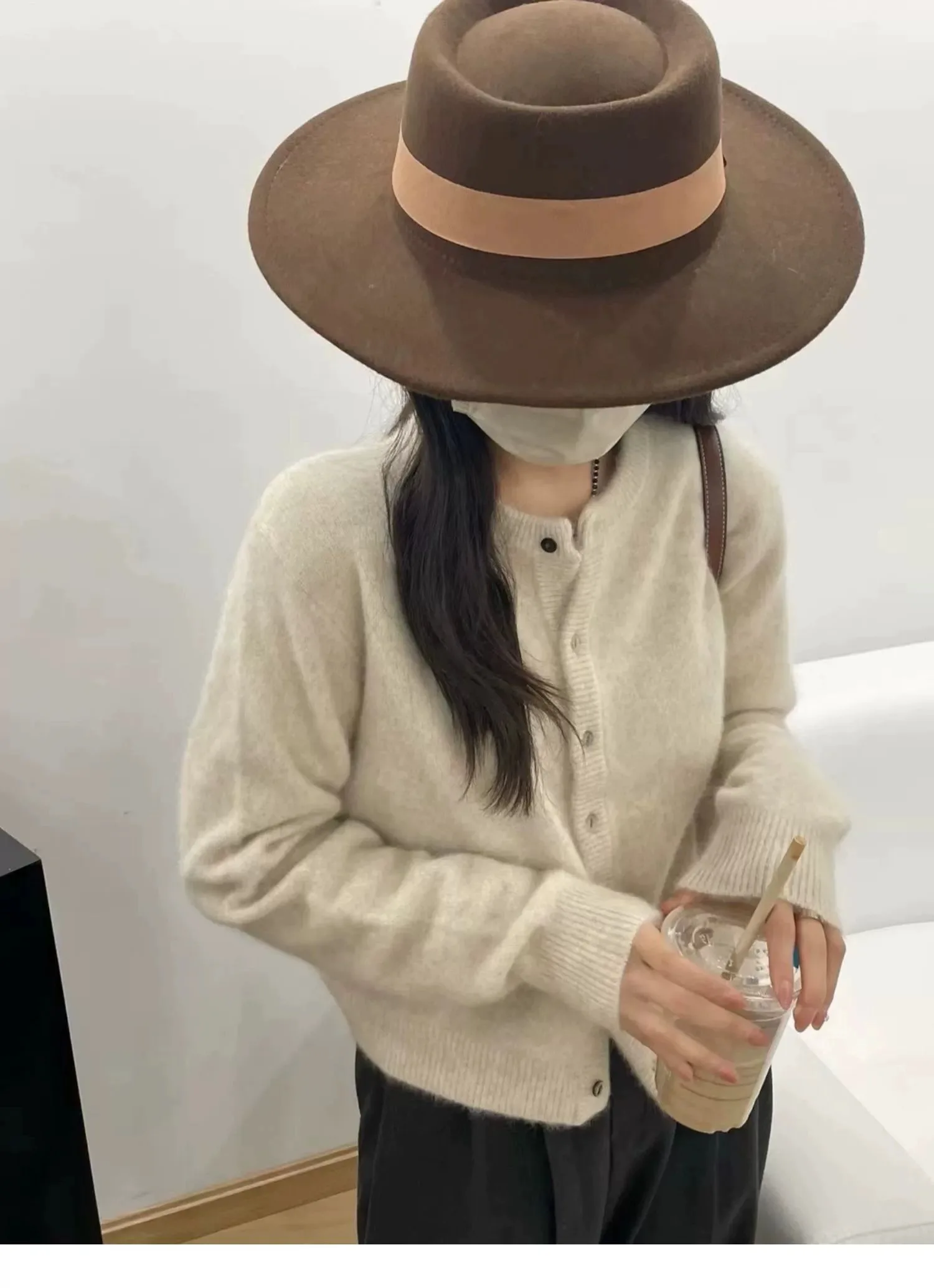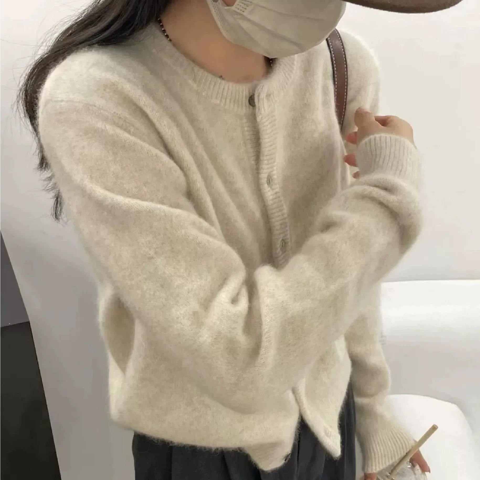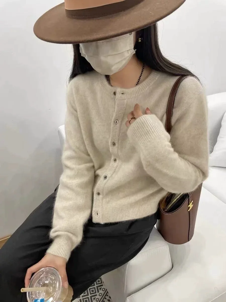 100% pure cashmere cardigan women's new autumn and winter round neck sweater loose Korean knitted sweater short coat