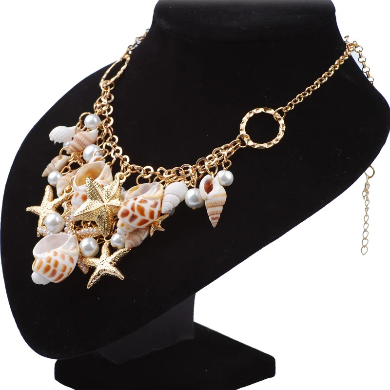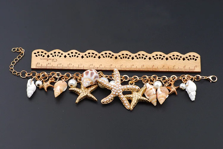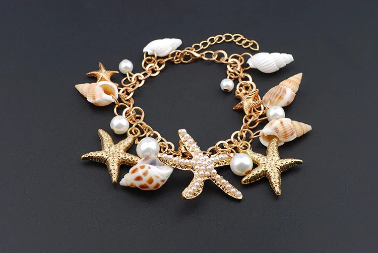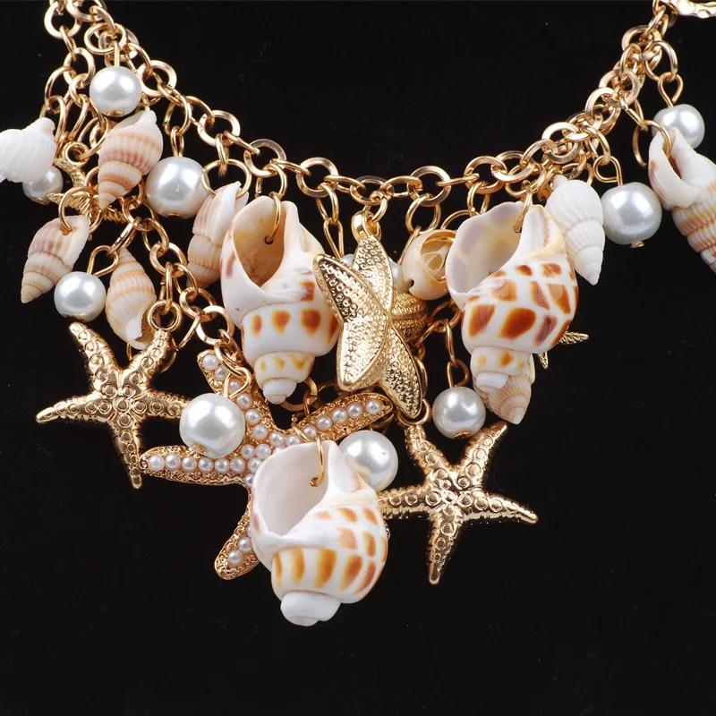 Best Selling Starfish Jewellery sets Charms Imitation Pearl Shell Necklace earrings Boho Gold Color Bracelet Beach Jewelry Set