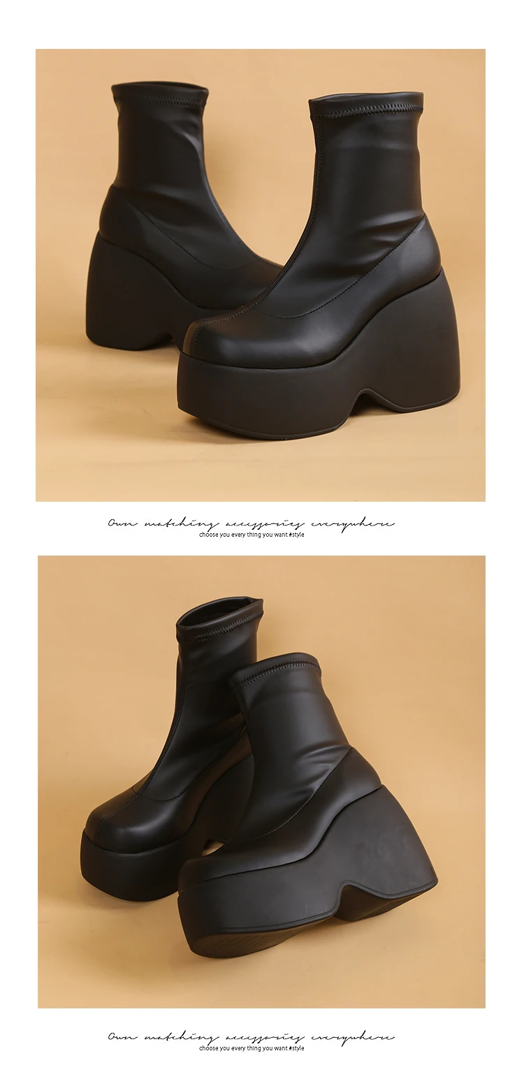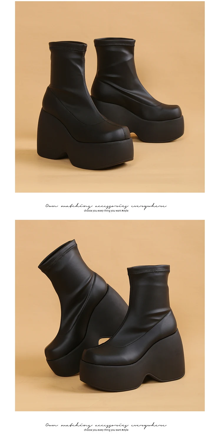 Brand New Design Women's Mid Calf Boots Platform Wedges High Heels Gothic Punk Shoes Autumn Ladies Fashion Plus Size Long Boots