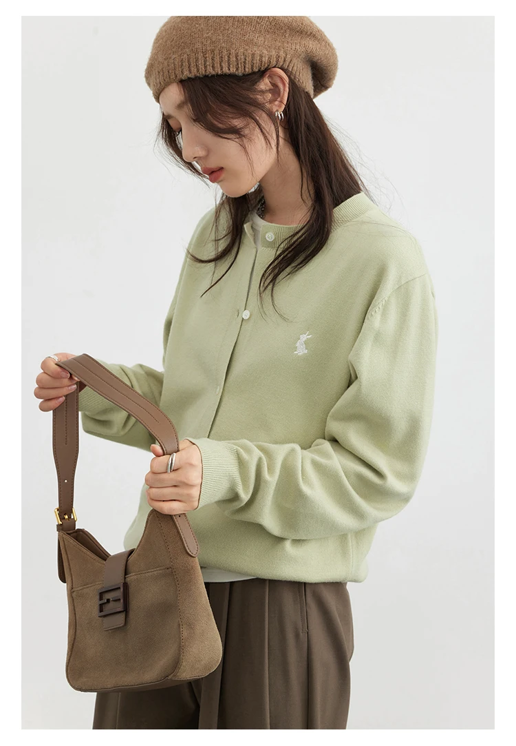 CHIC VEN Women Cardigan New Multi Color Basic Female Jumpers Solid Rabbit Embroidery Knitted Woman Sweater Autumn Spring 2023