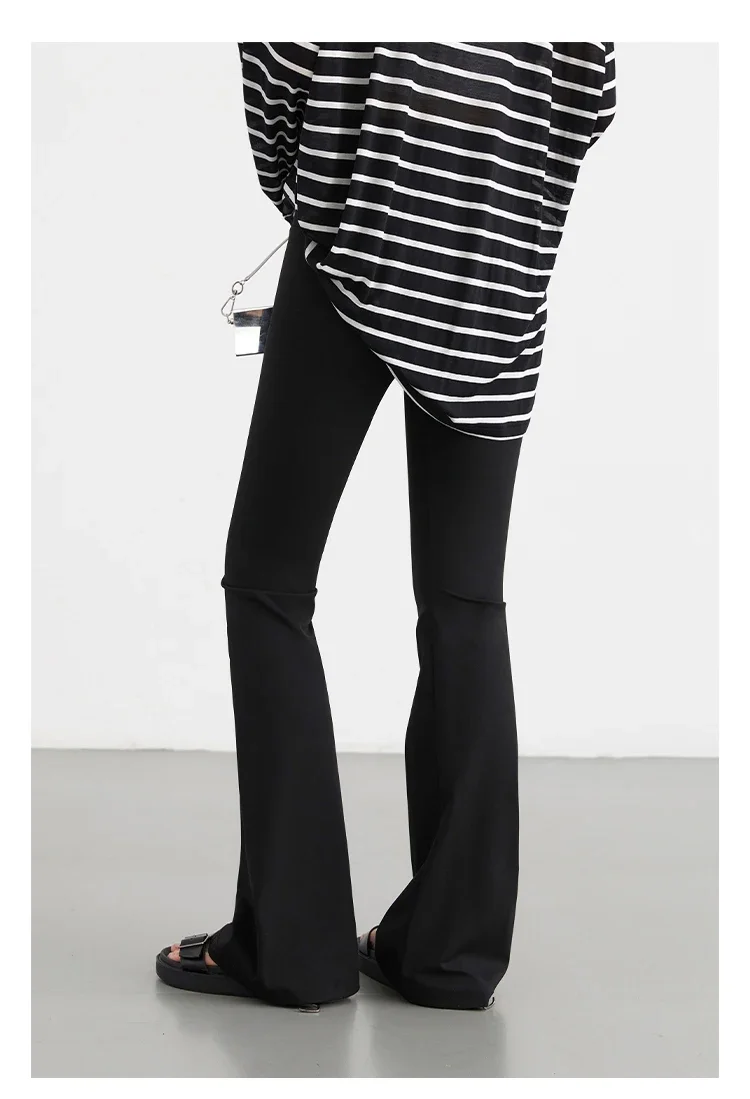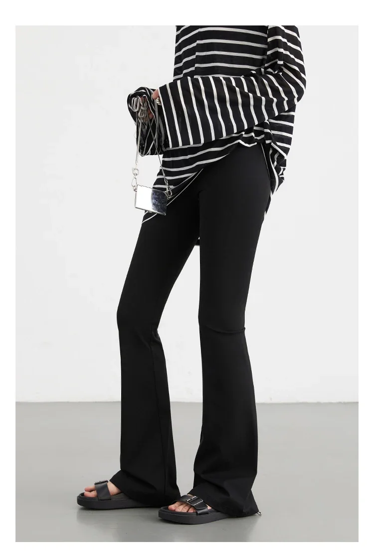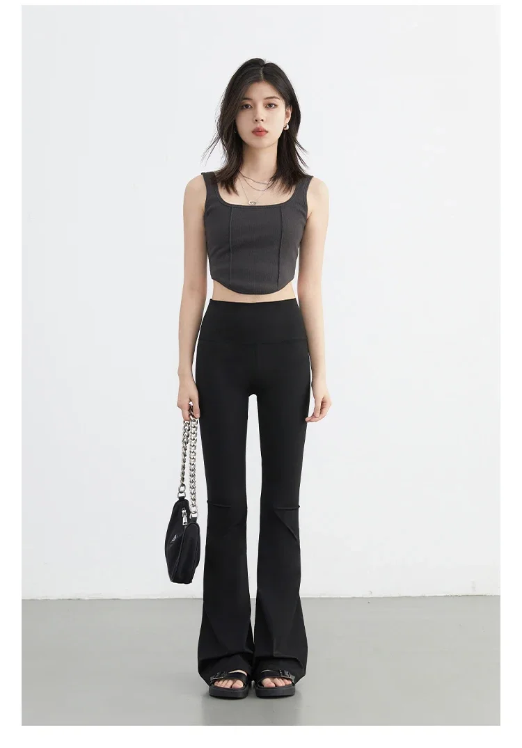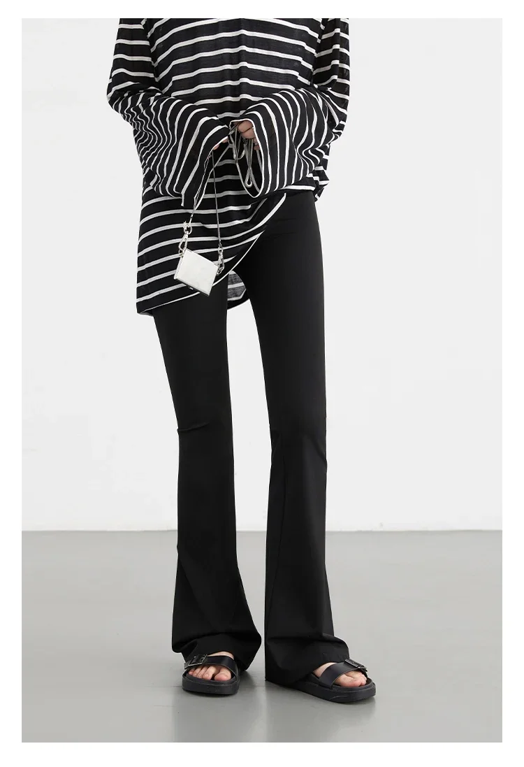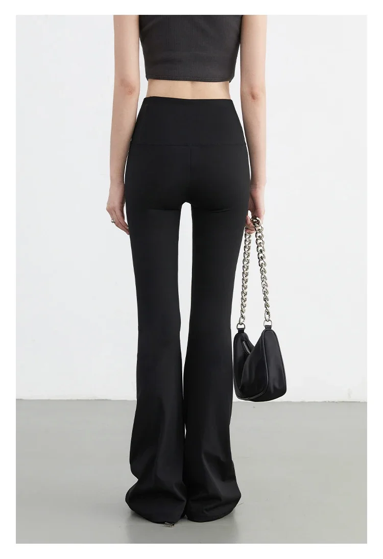 CHIC VEN Women Pants Fashion High Waisted Slim Black Yoga Trousers Casual Elastic Soft Flared Pant for Girls Autumn New 2024