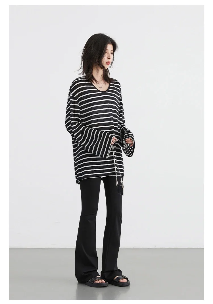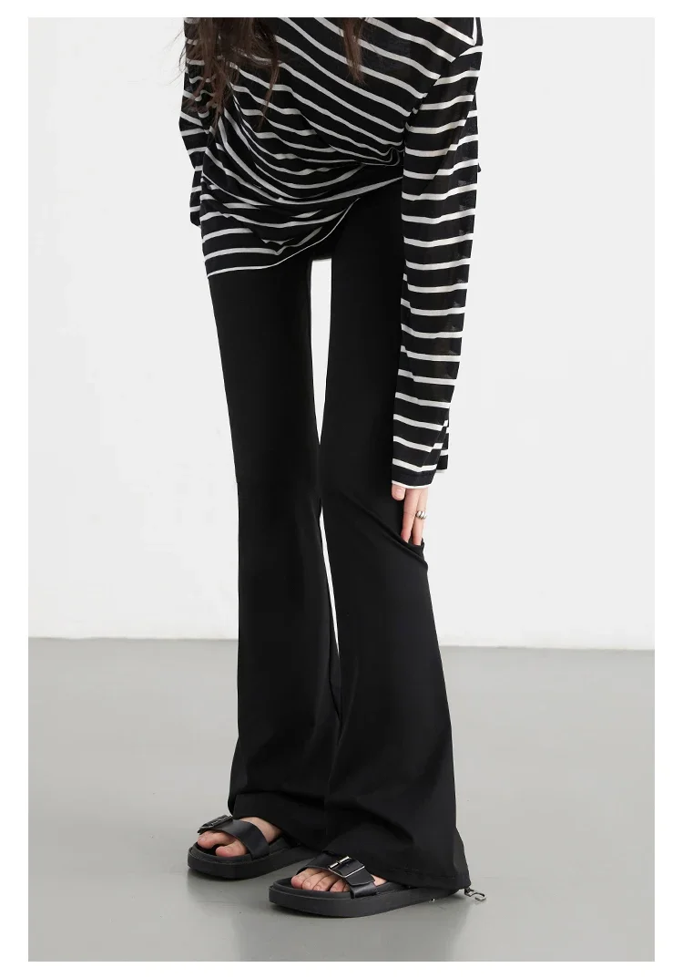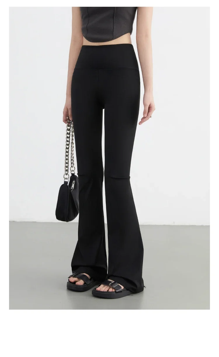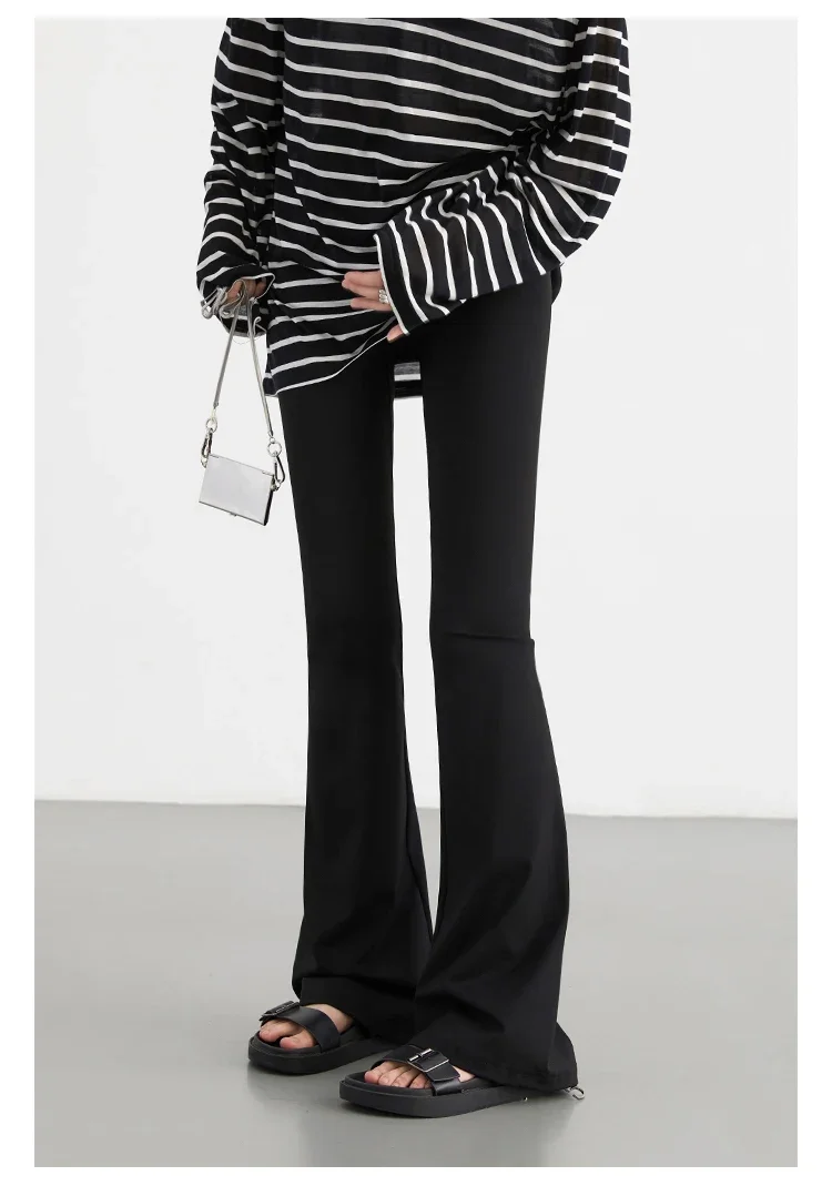 CHIC VEN Women Pants Fashion High Waisted Slim Black Yoga Trousers Casual Elastic Soft Flared Pant for Girls Autumn New 2024