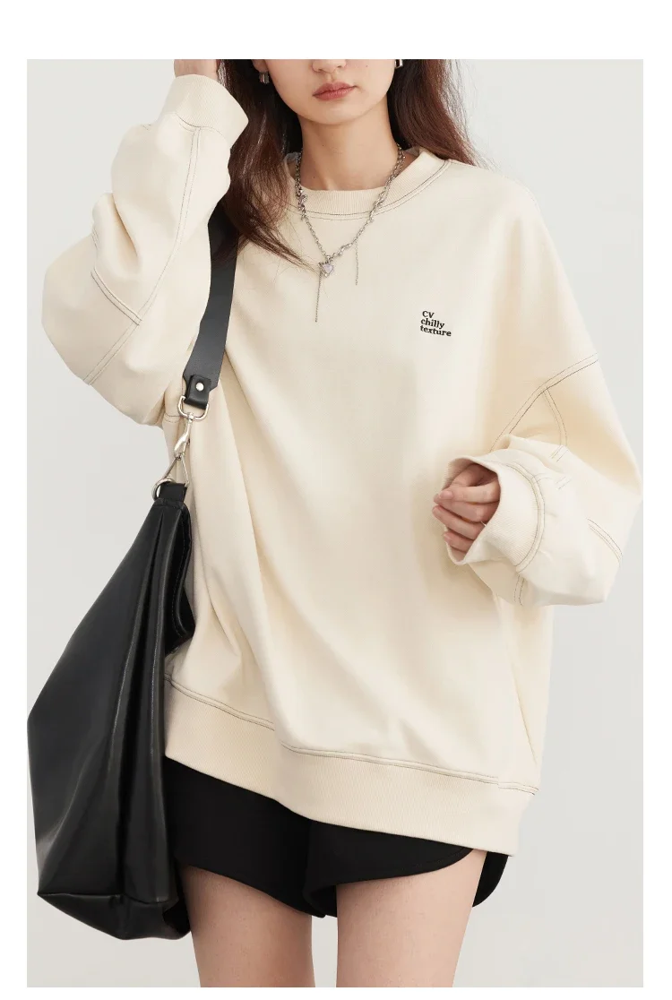 CHIC VEN Women Sweatshirts Streetwear Casual Loose Letter Embroidered Long Sleeved Female Top O Neck Pullover Spring Autumn 2024