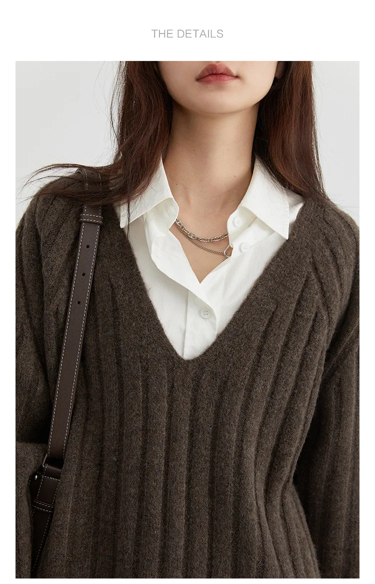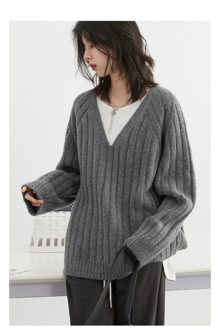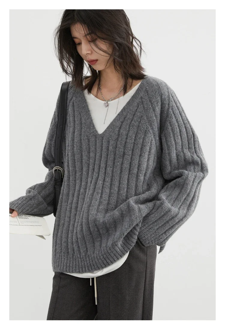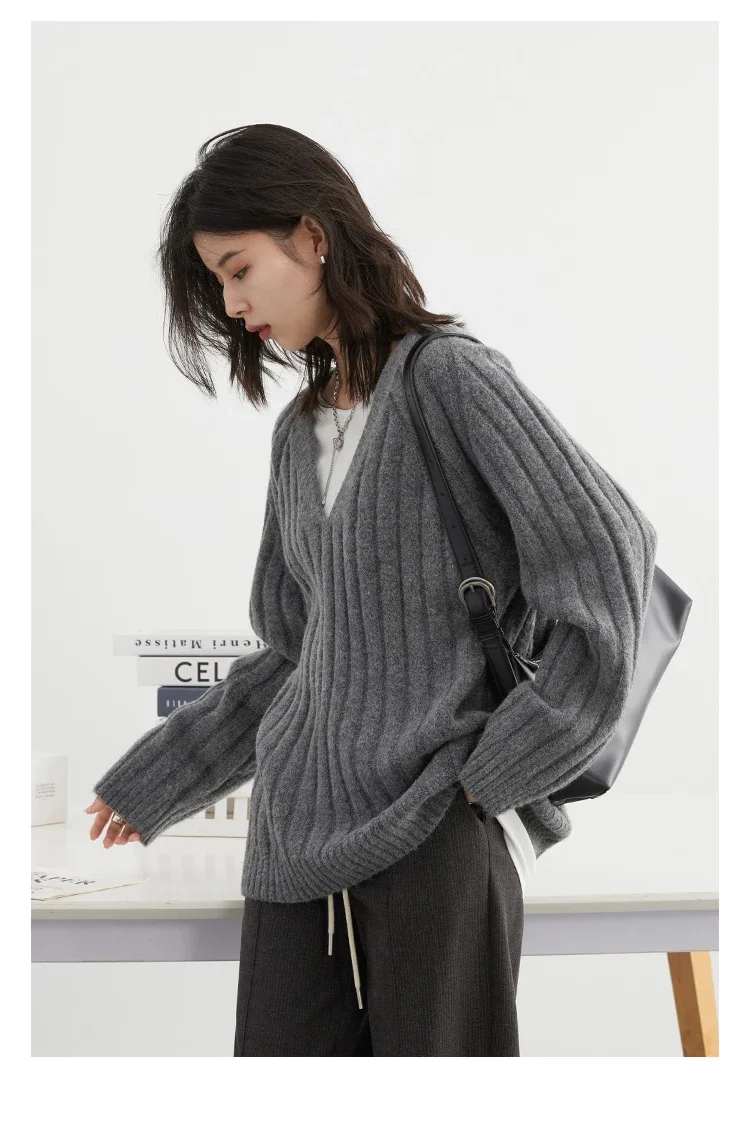 CHIC VEN Women's Sweaters Casual Simple V-Neck Loose Pullovers Soft Pit Stripe Mohair Female Knitted Tops Autumn Winter New 2023