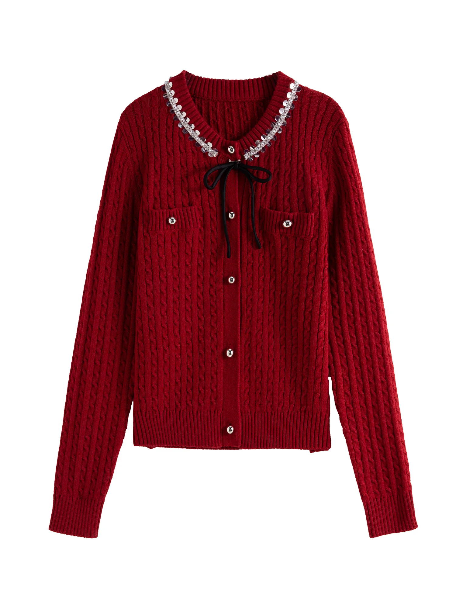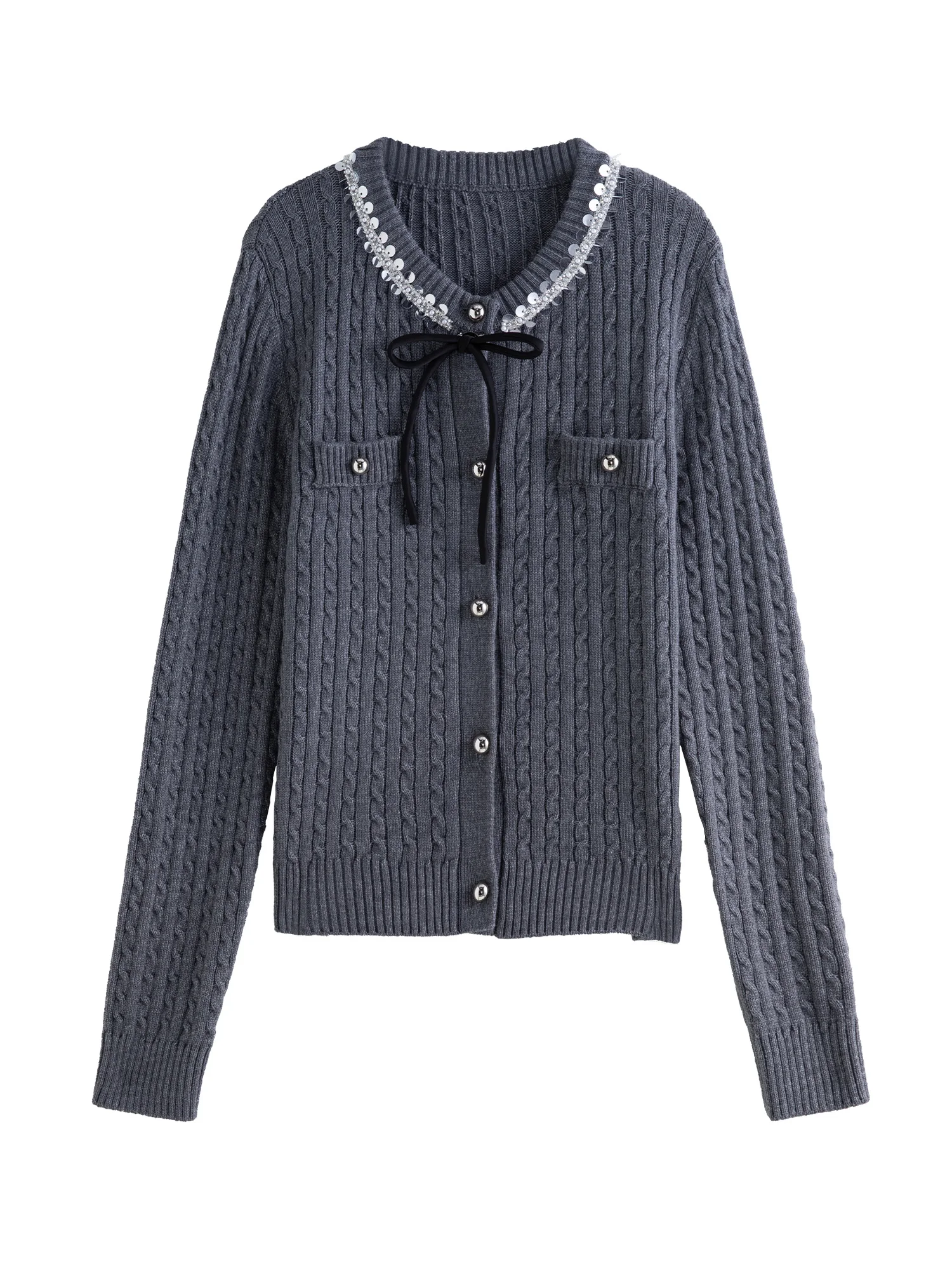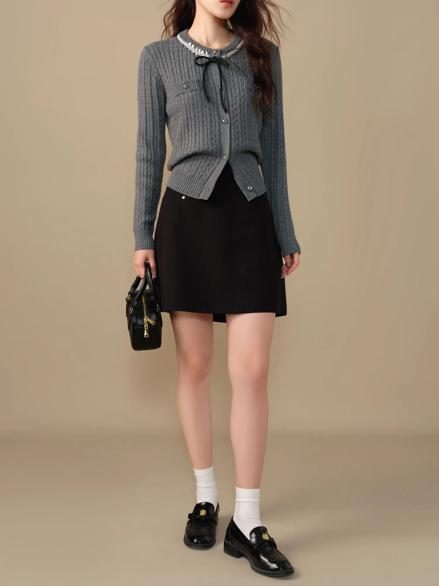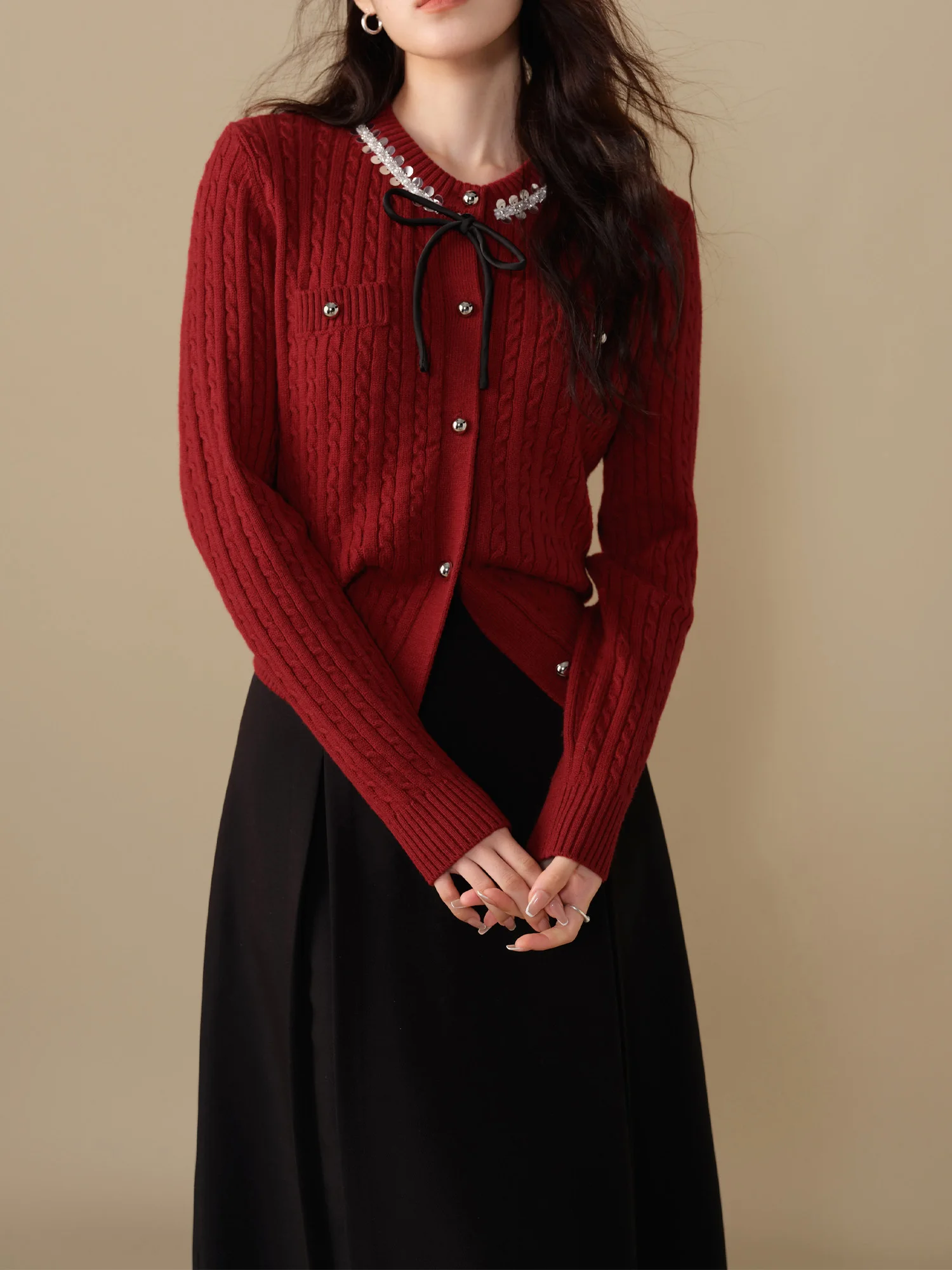 DUSHU 10.1% Wool Warm Knitted Cardigan Jacket For Women 2024 Winter New Elegant Versatile Casual Knitted Cardigan 24DS84116
