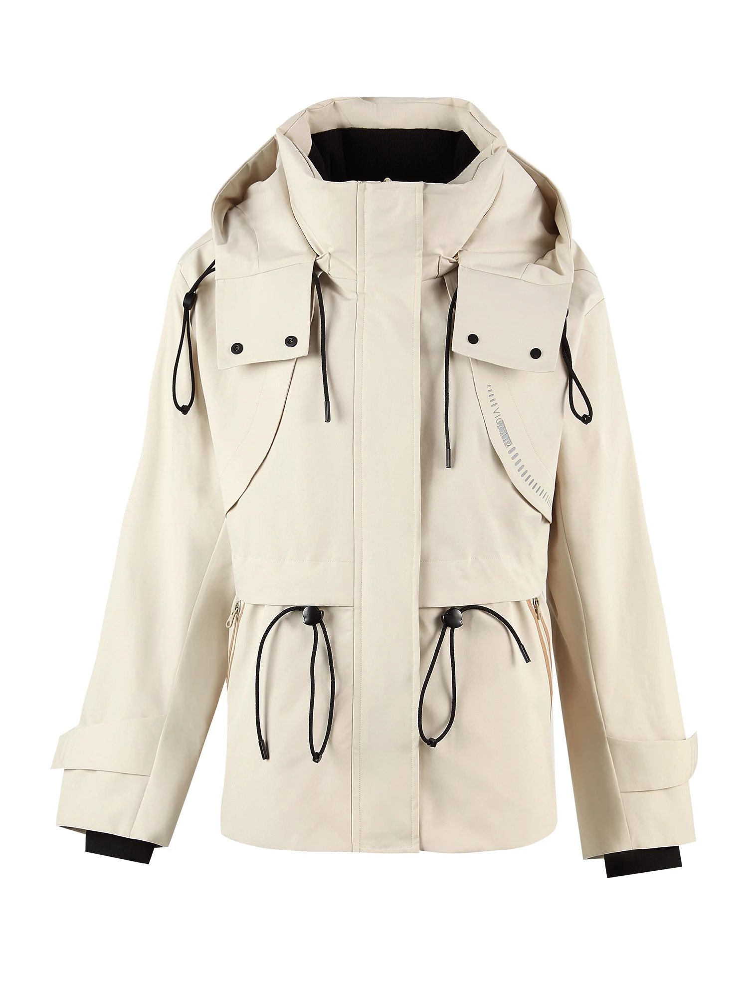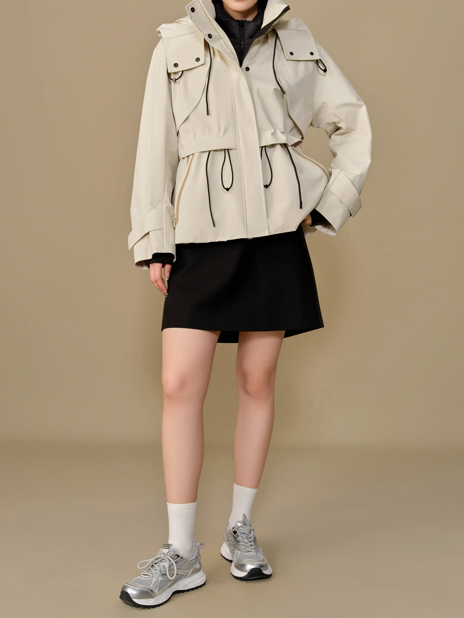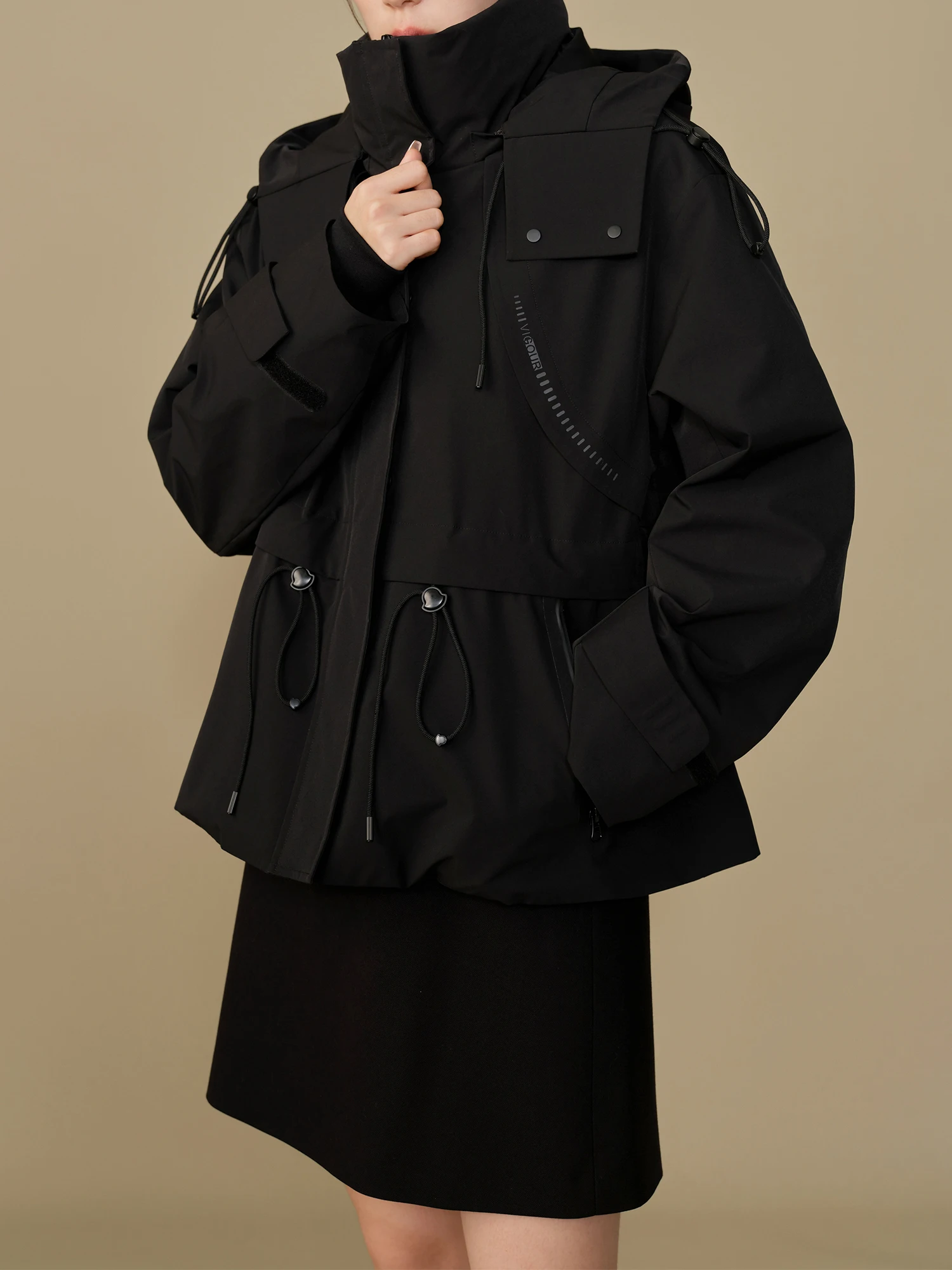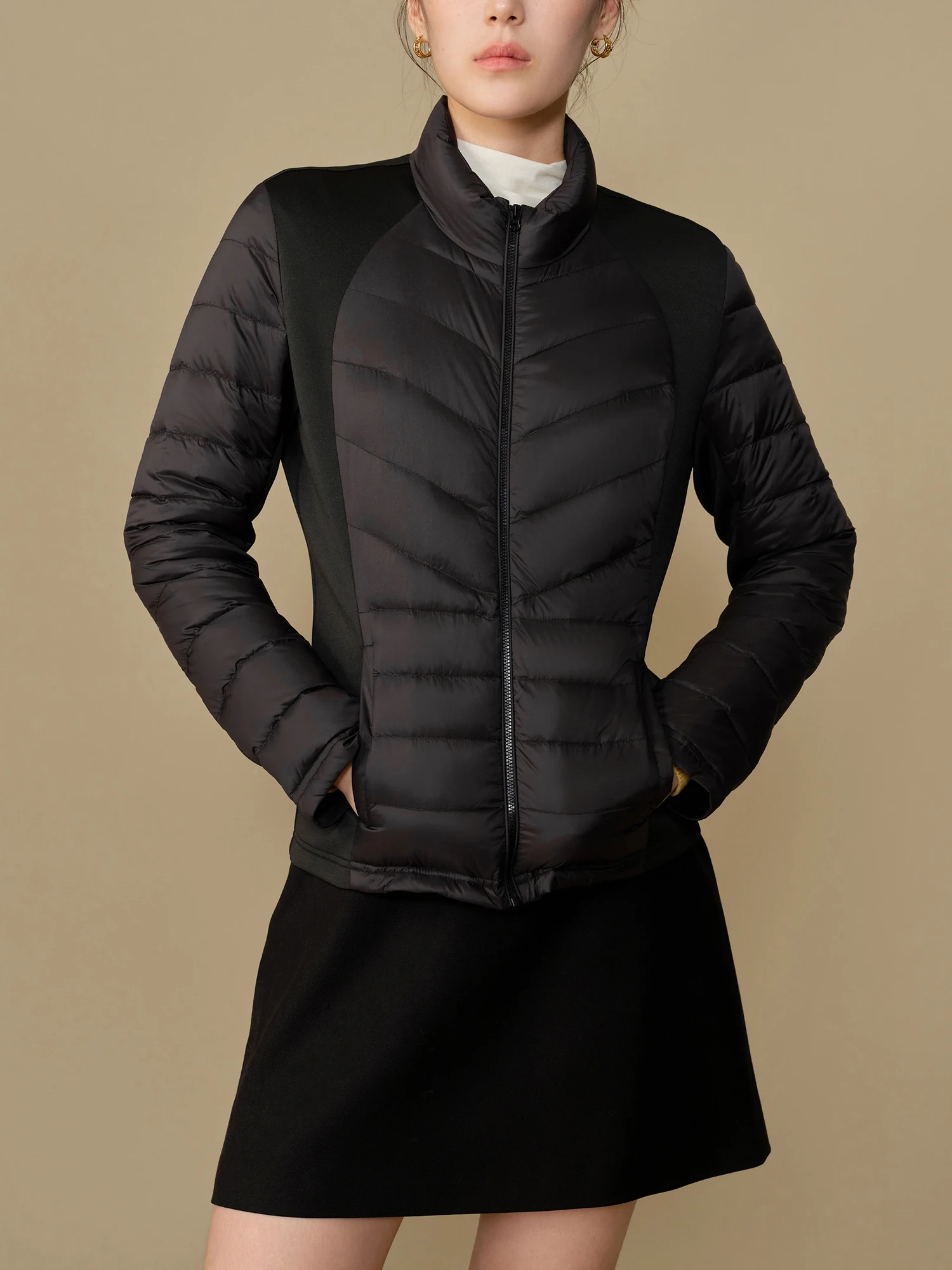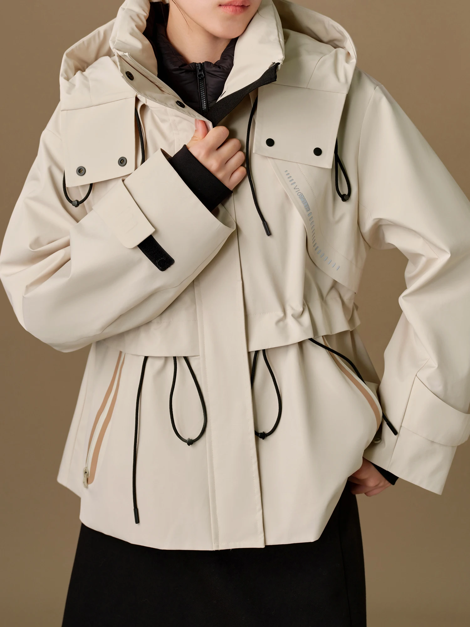 DUSHU 51.8G Filling Amount Female Black Lightweight Short Down Coat+Hooded Thick Khaki Two Piece Sets Outwear Coats 24DS84198