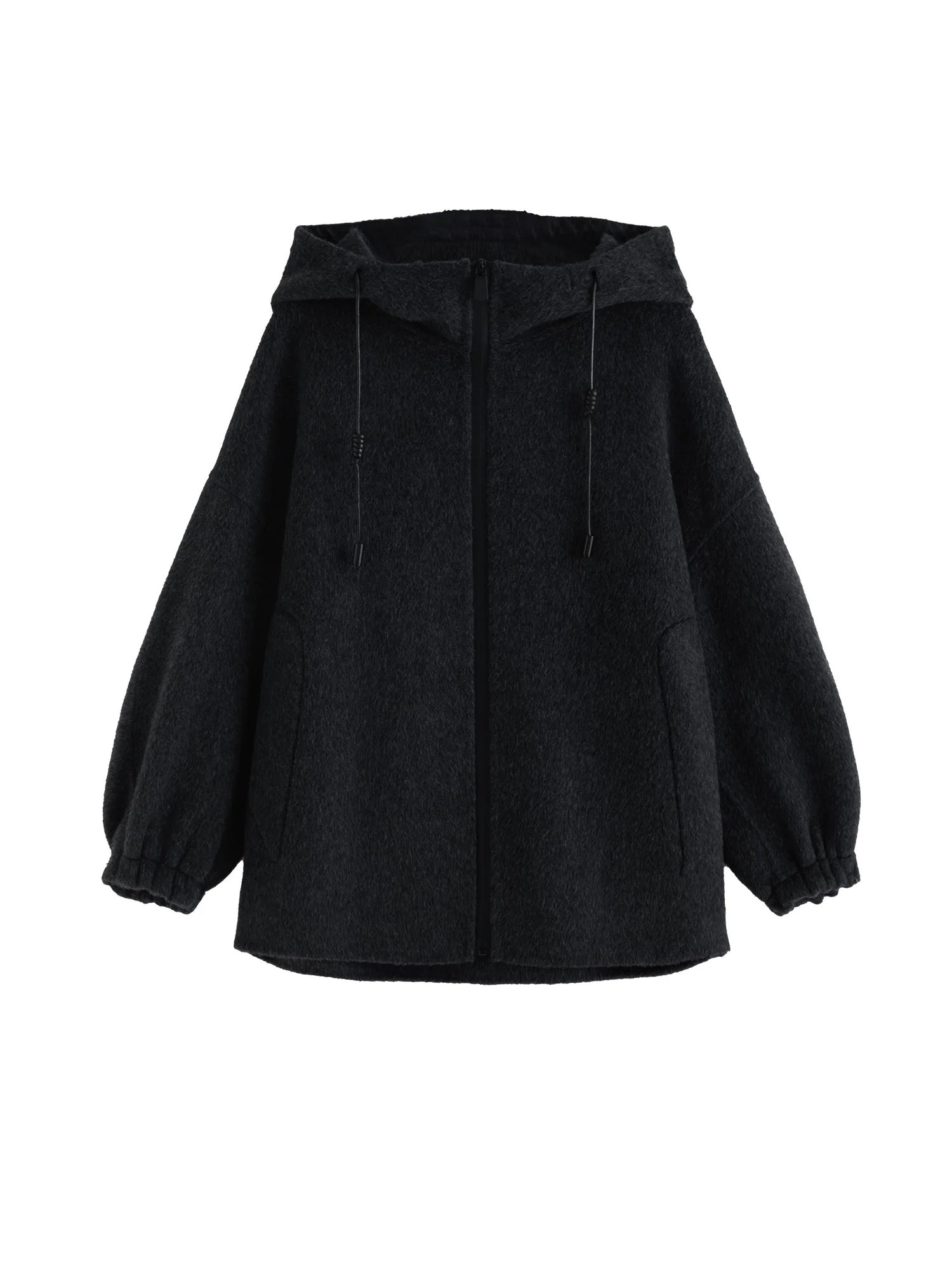 DUSHU 86.4% Wool Mulberry Silk Yak Velvet Hooded Tweed Plus Size Women Coat 2024 Winter New Compound Commuter Jacket 24DS84173
