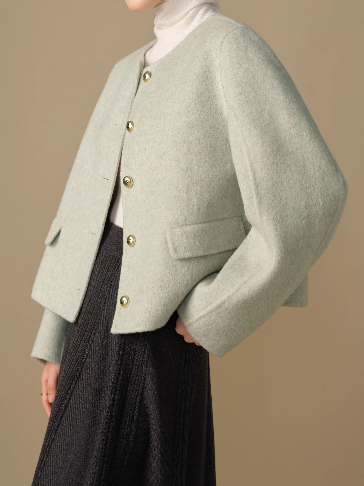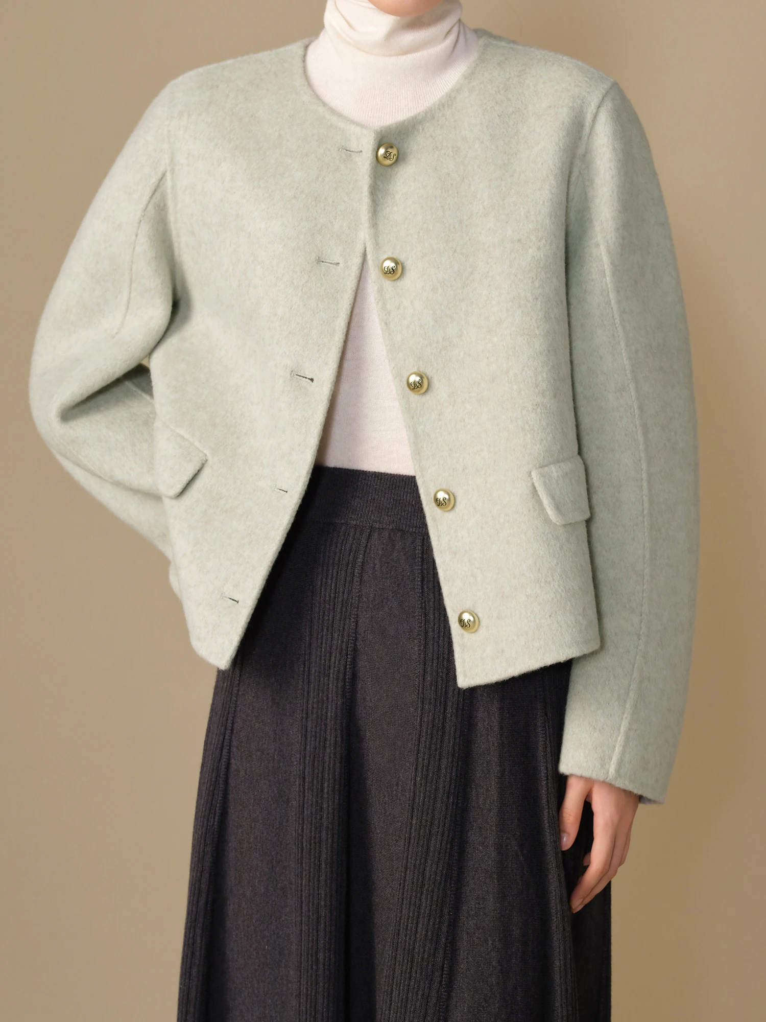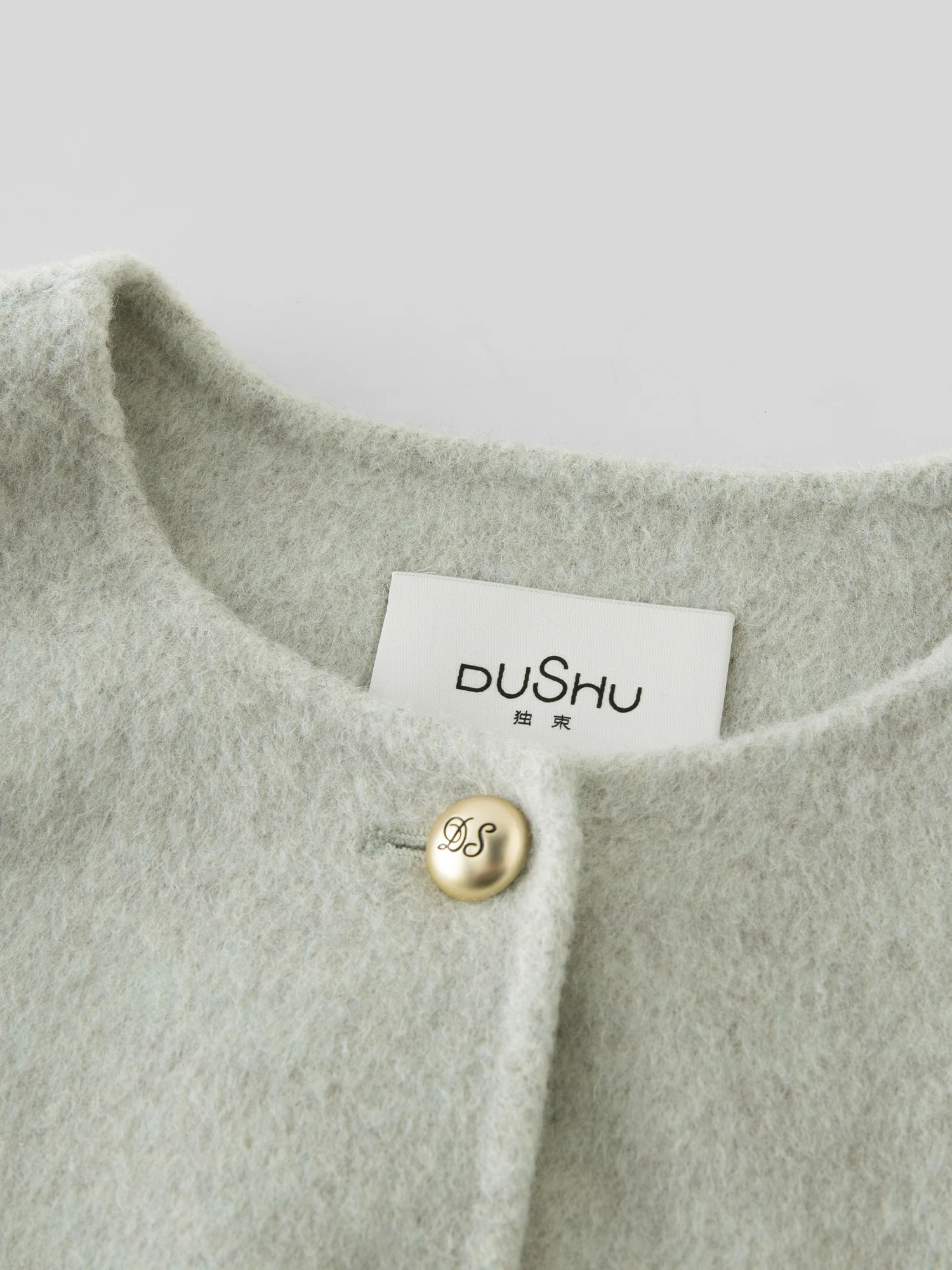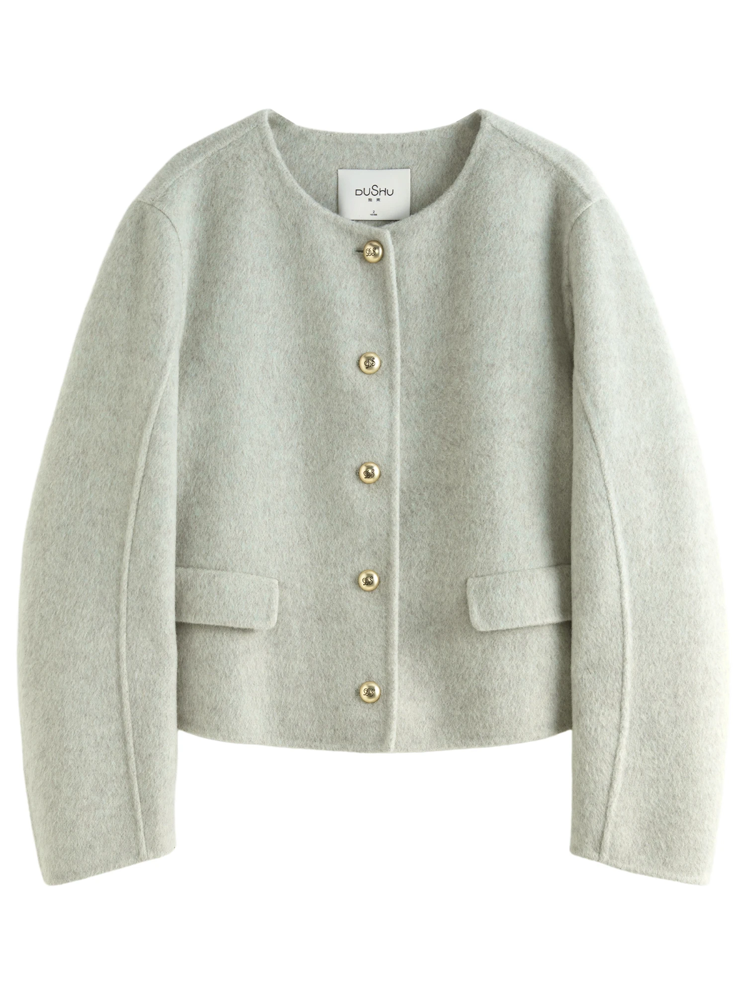 DUSHU 88.2% Wool 5.6% Mulberry Silk Women Woolen Coats Short Round Neck Temperament Light Green Female Winter Jackets 24DS84131