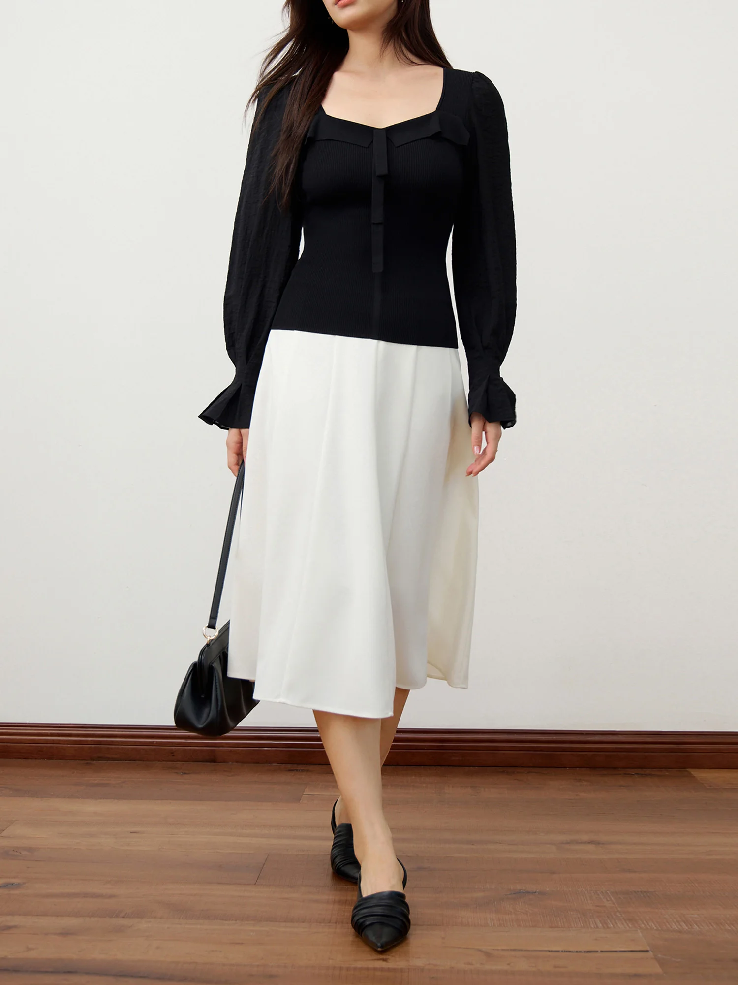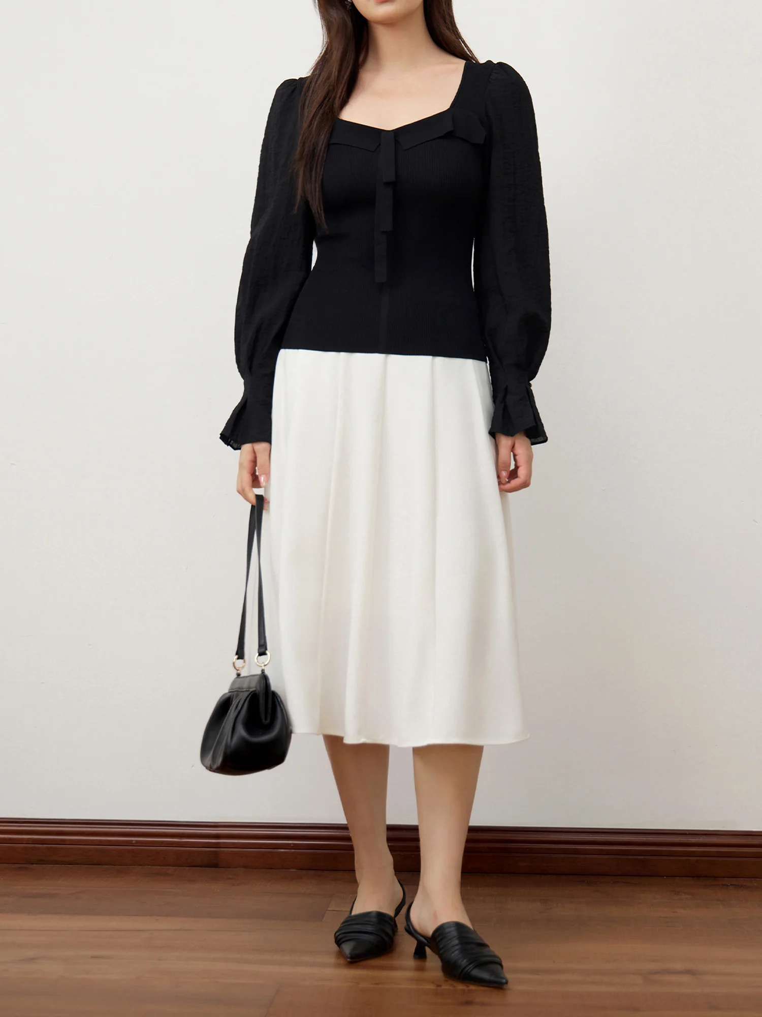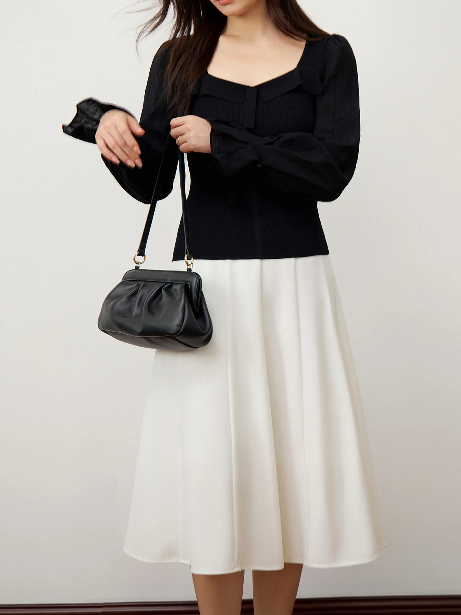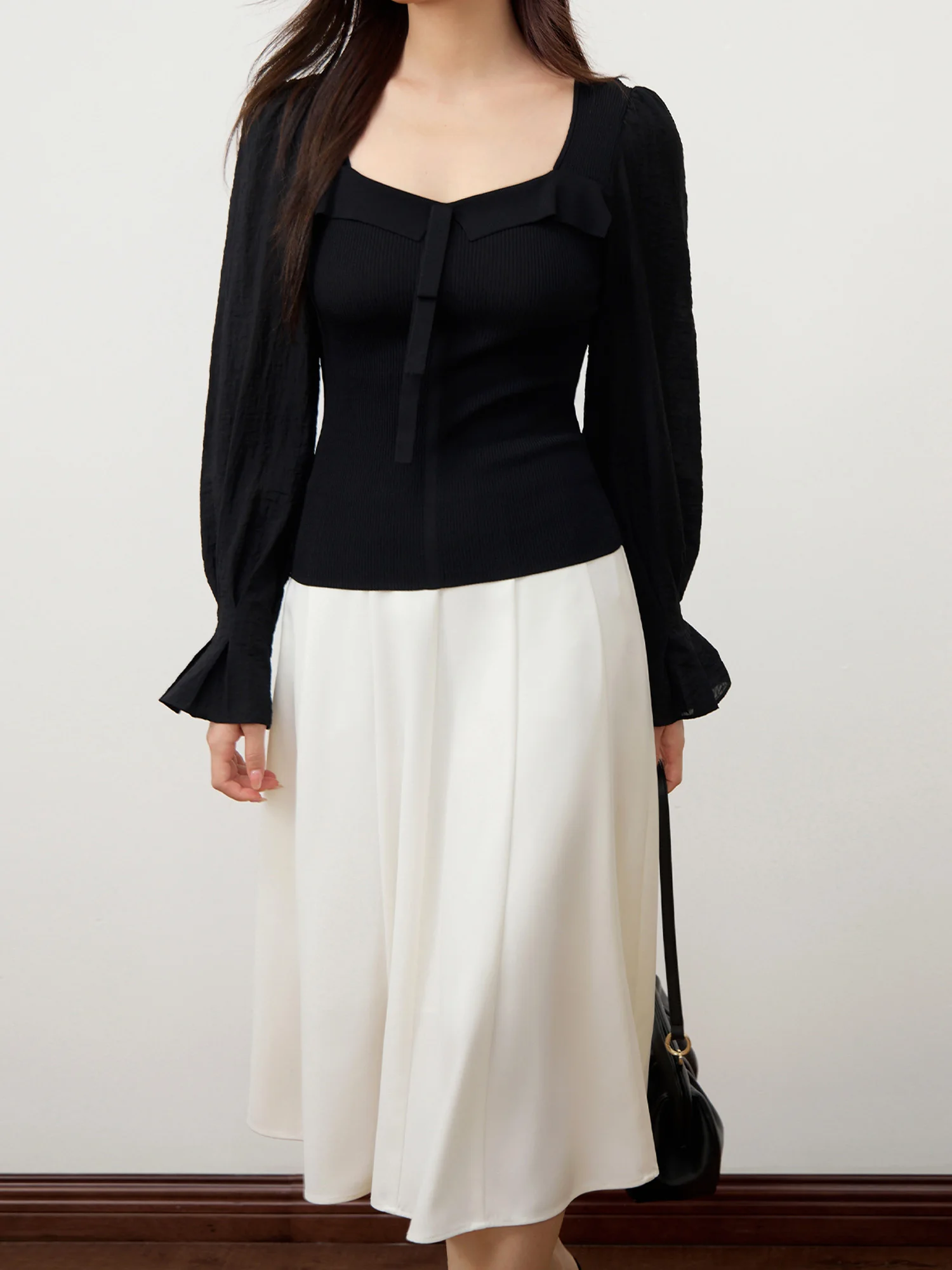 DUSHU Black Elegant Sweater All-match Slim Pullover Knitted Top 2024 Autumn New Design Puff Sleeves Sweater 24DS83232