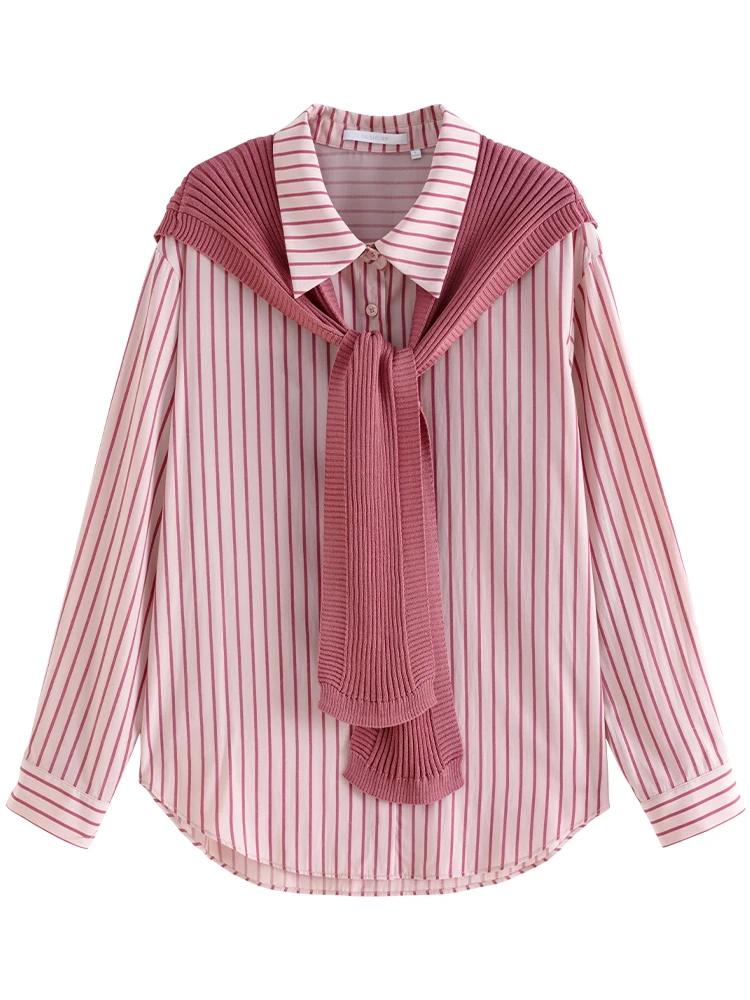 DUSHU Commuter Style Detachable Shawl Retro Striped Shirt for Female Autumn New Personality Fashionable Top Shirt Women