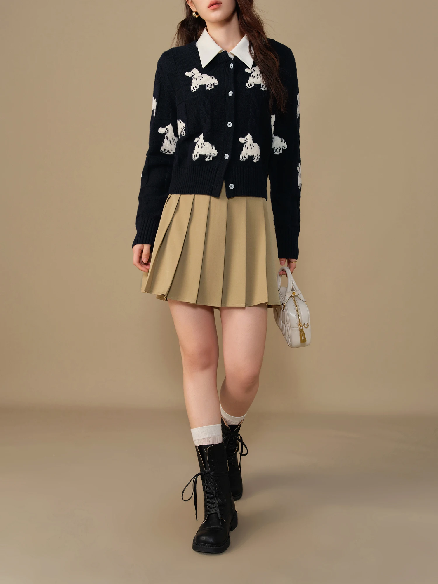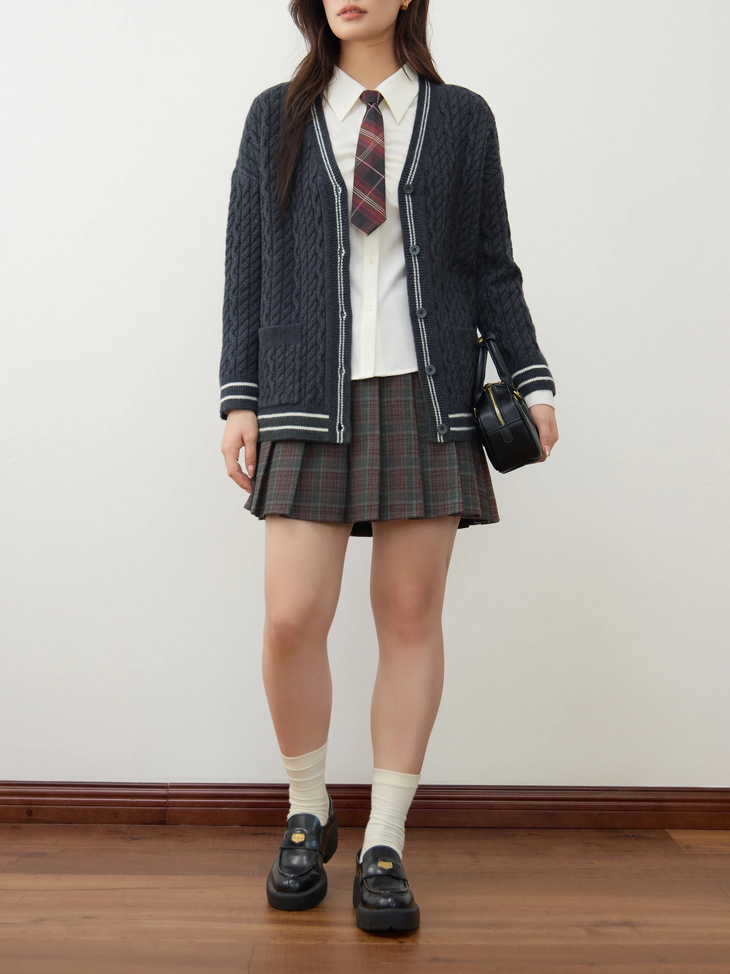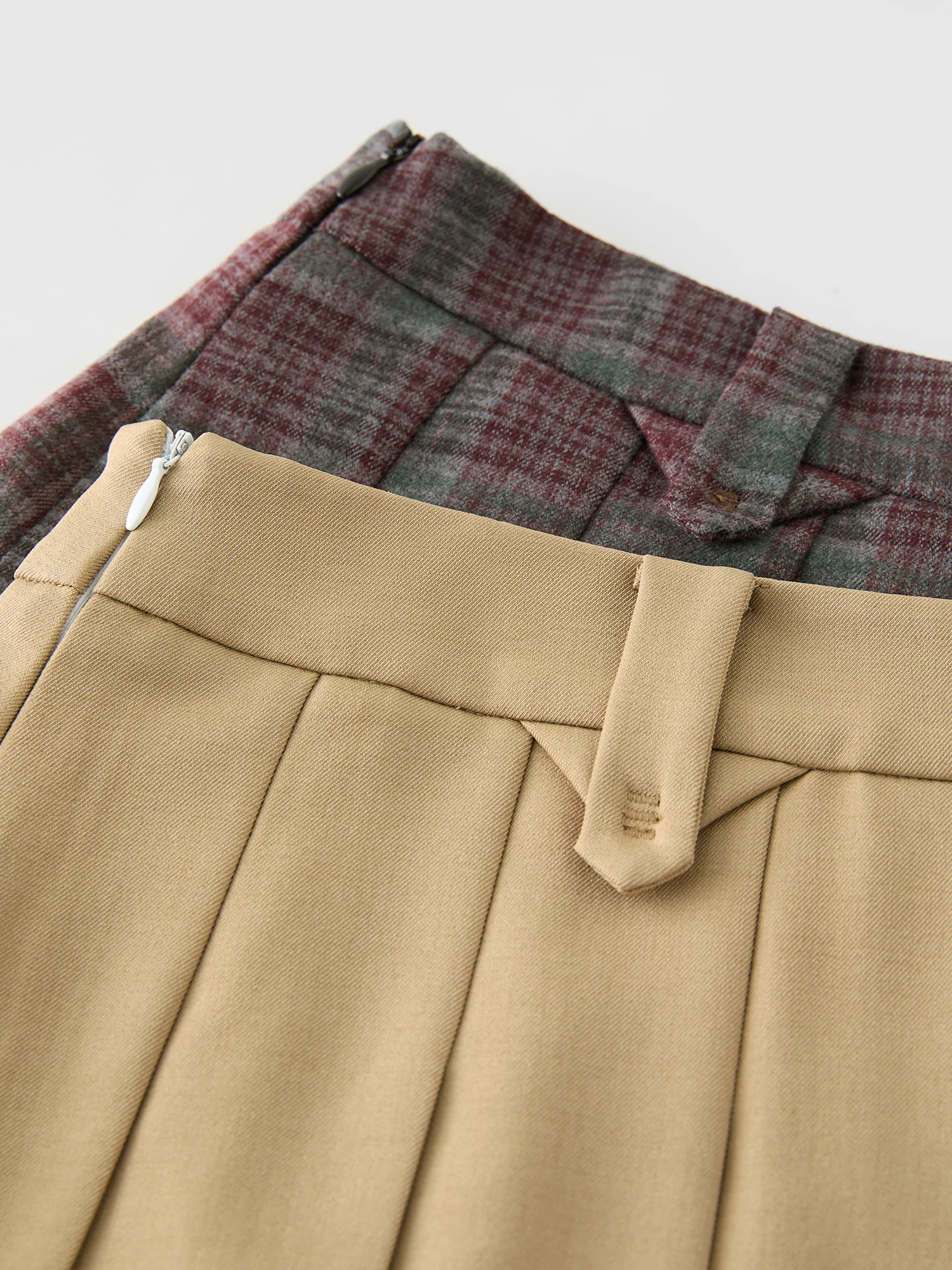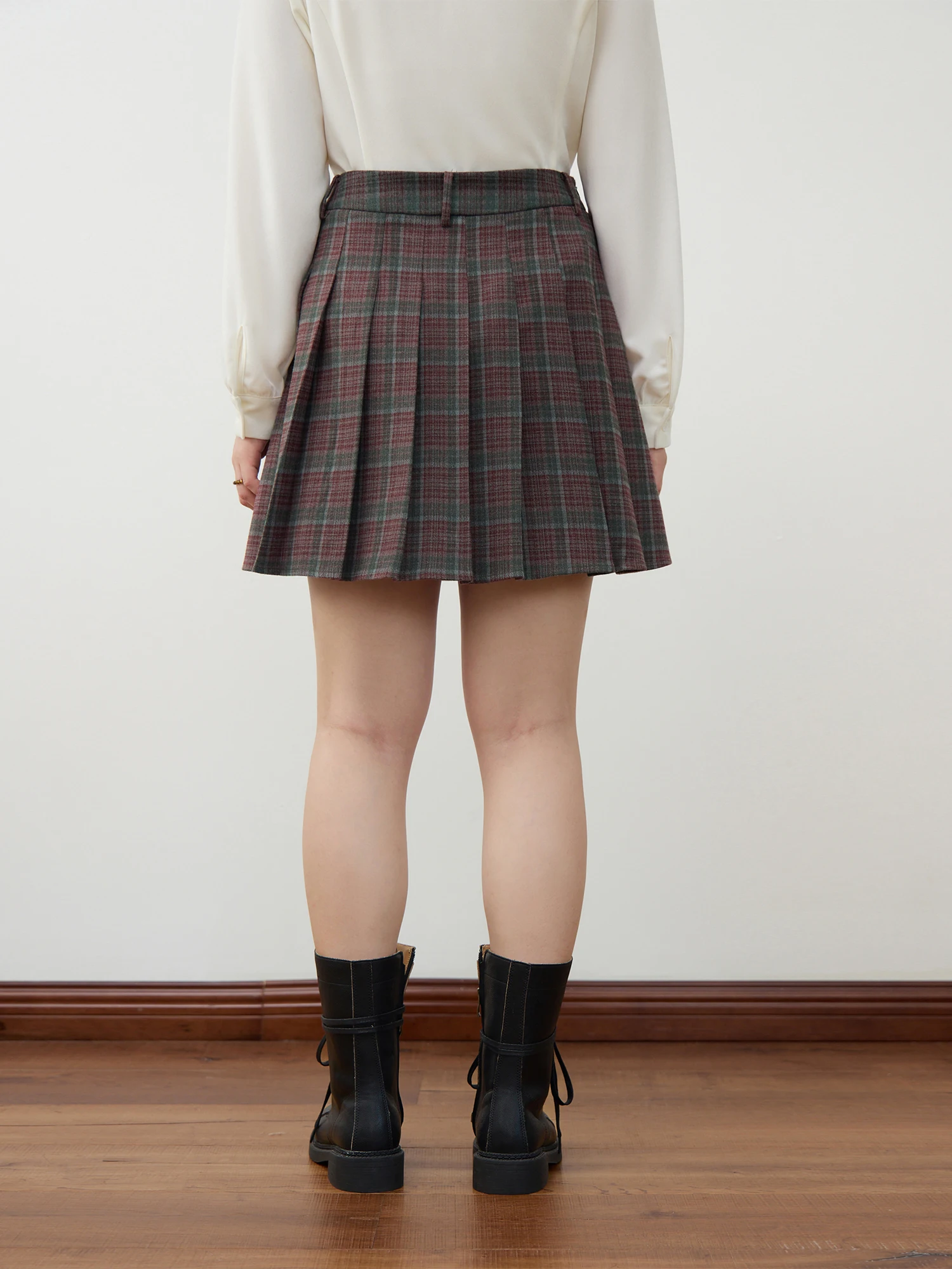 DUSHU Grid High Waisted Pleated Skirt 2024 Winter New Product Classic Versatile Fashion Half Skirt Short Skirt 24DS84242