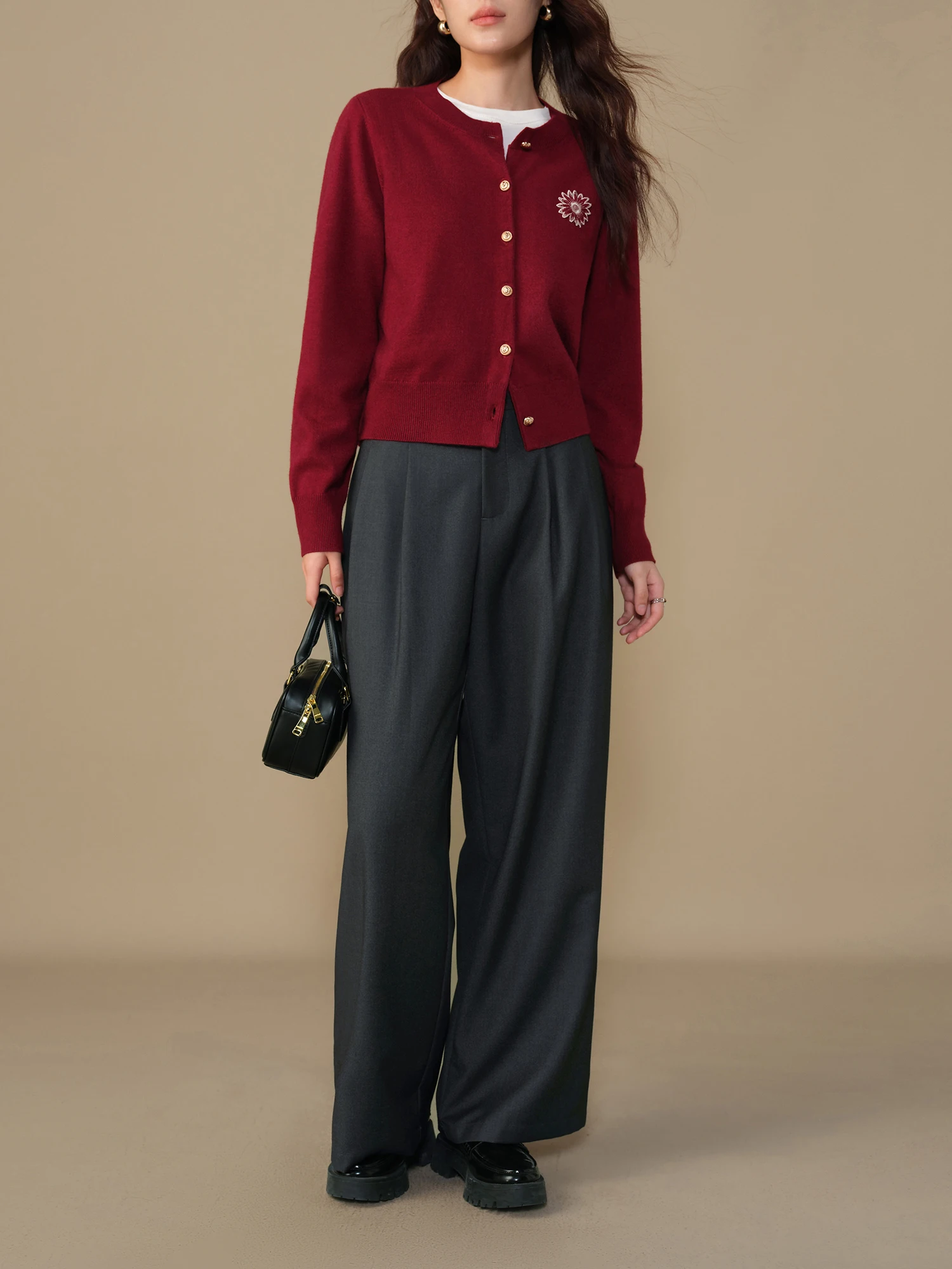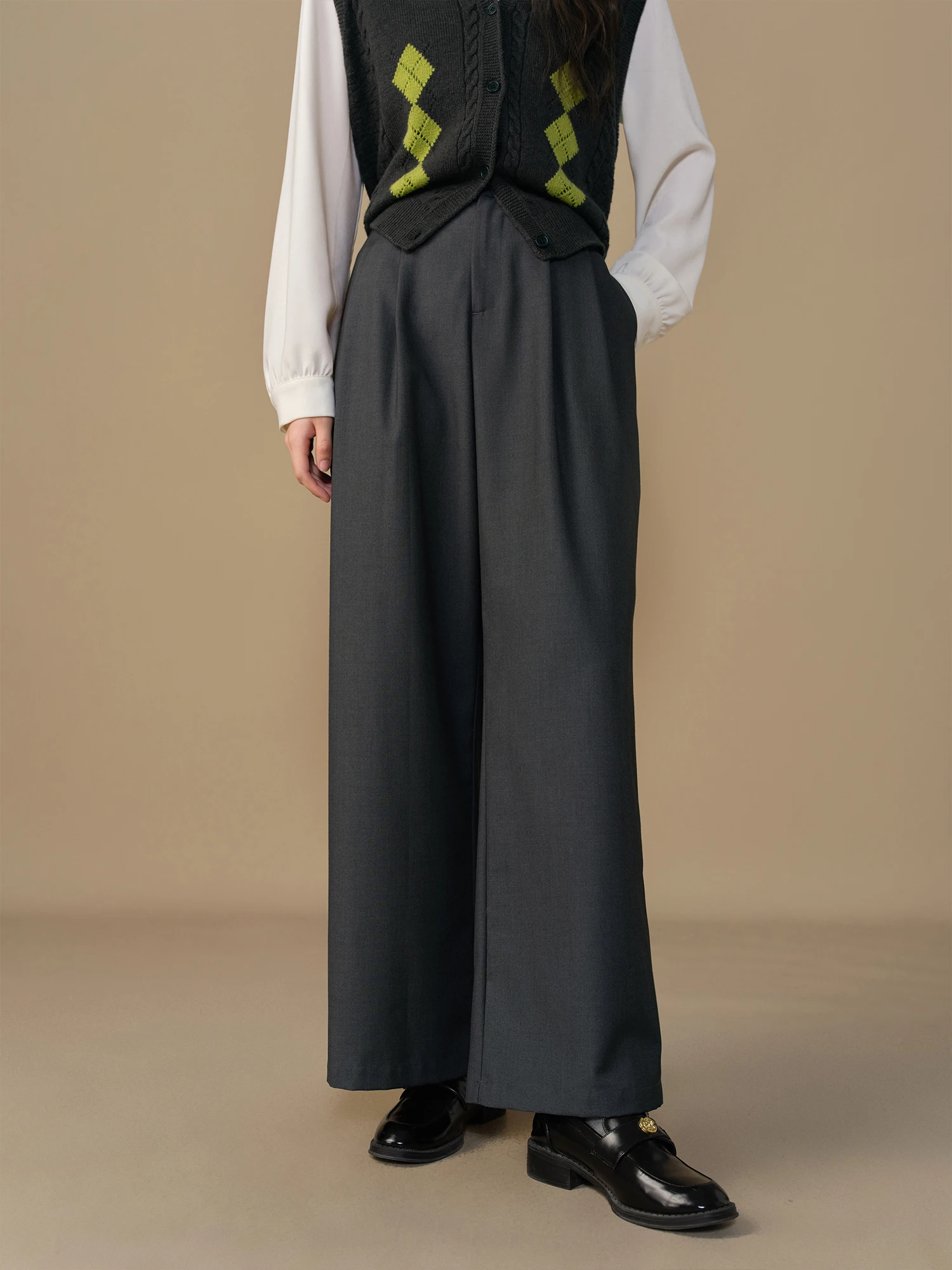 DUSHU High Waisted Loose Fit Slimming Straight Leg Suit Pants 2024 Winter New Women's Fashion Versatile Pants 24DS84252