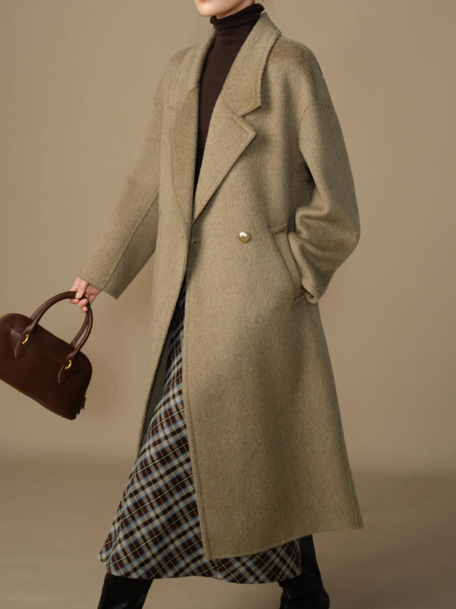 DUSHU Office Lady Coat 2024 Winter New Thin Double Sided Coats Casual Loose Women Coats Grey Beige Women Coats 24DS84178