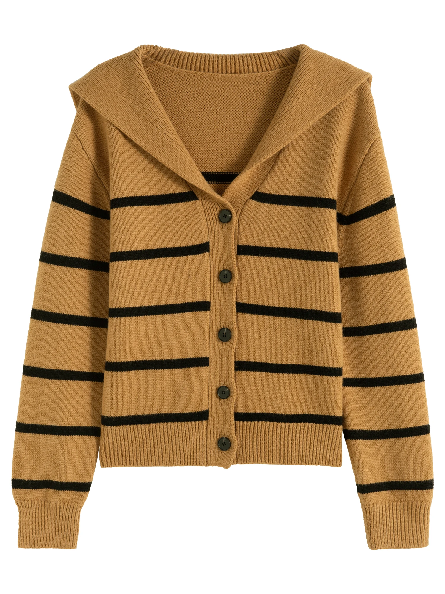 DUSHU Plus Size Sailor Collar Striped Cardigan Sweater For Women 2024 Winter New Chic Warm Loose Knit Cardigan 24DS84149