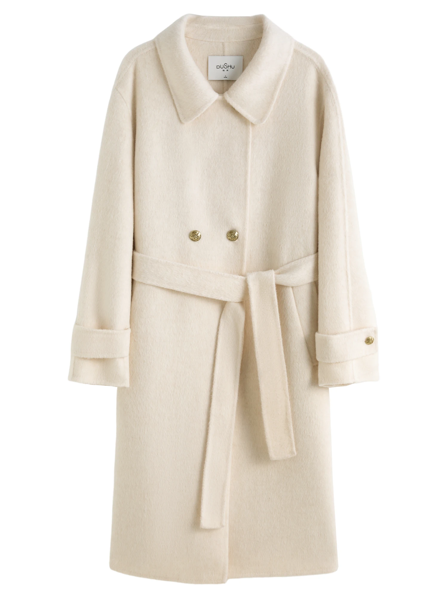 DUSHU Plus Size Simple Atmospheric Long Woolen Coat Winter New Style Elegant Shoulder Drop Woolen Coat Outerwear 24DS84265