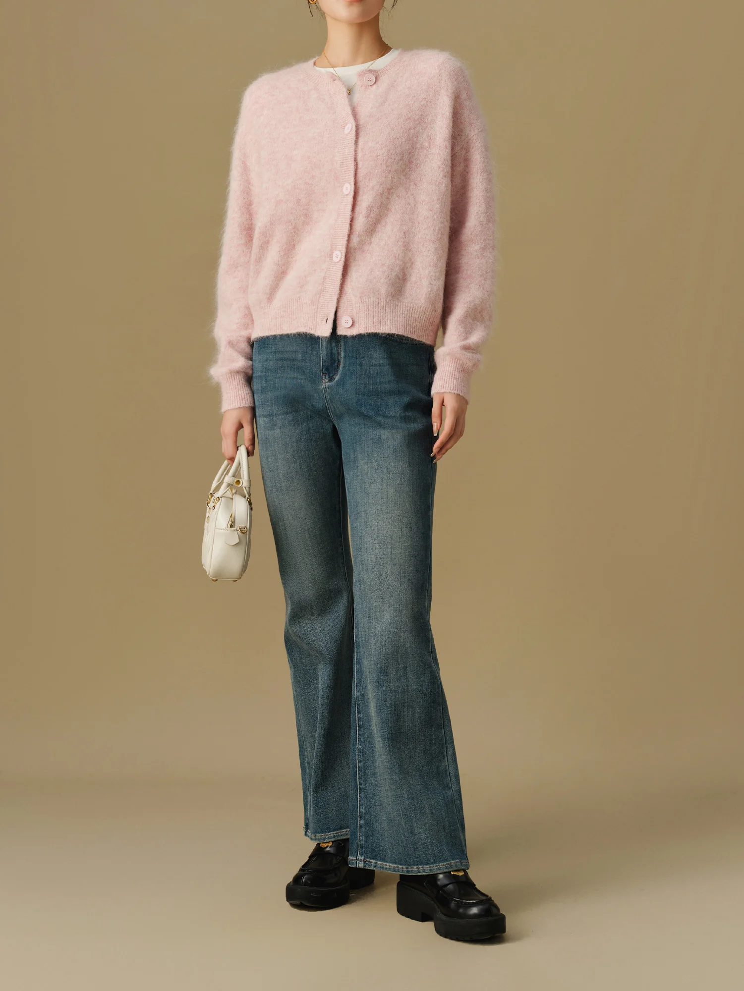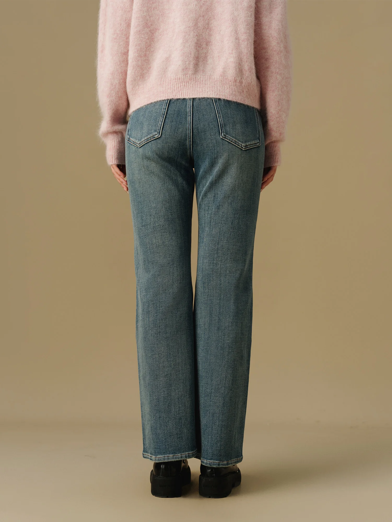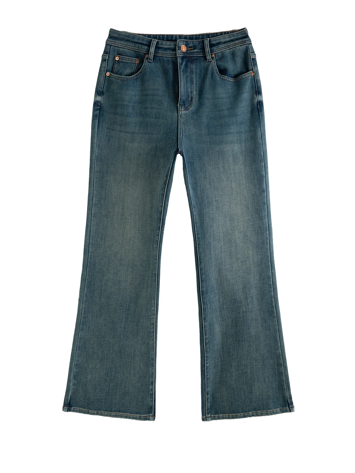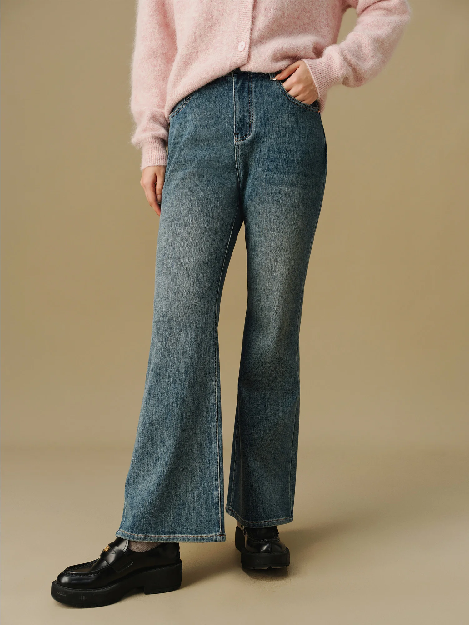 DUSHU Women Winter Thicken Jeans Plus Size 3XL Women Cotton Elastic Retro Denim Blue Pants Flared Cropped Jean 24DS84213
