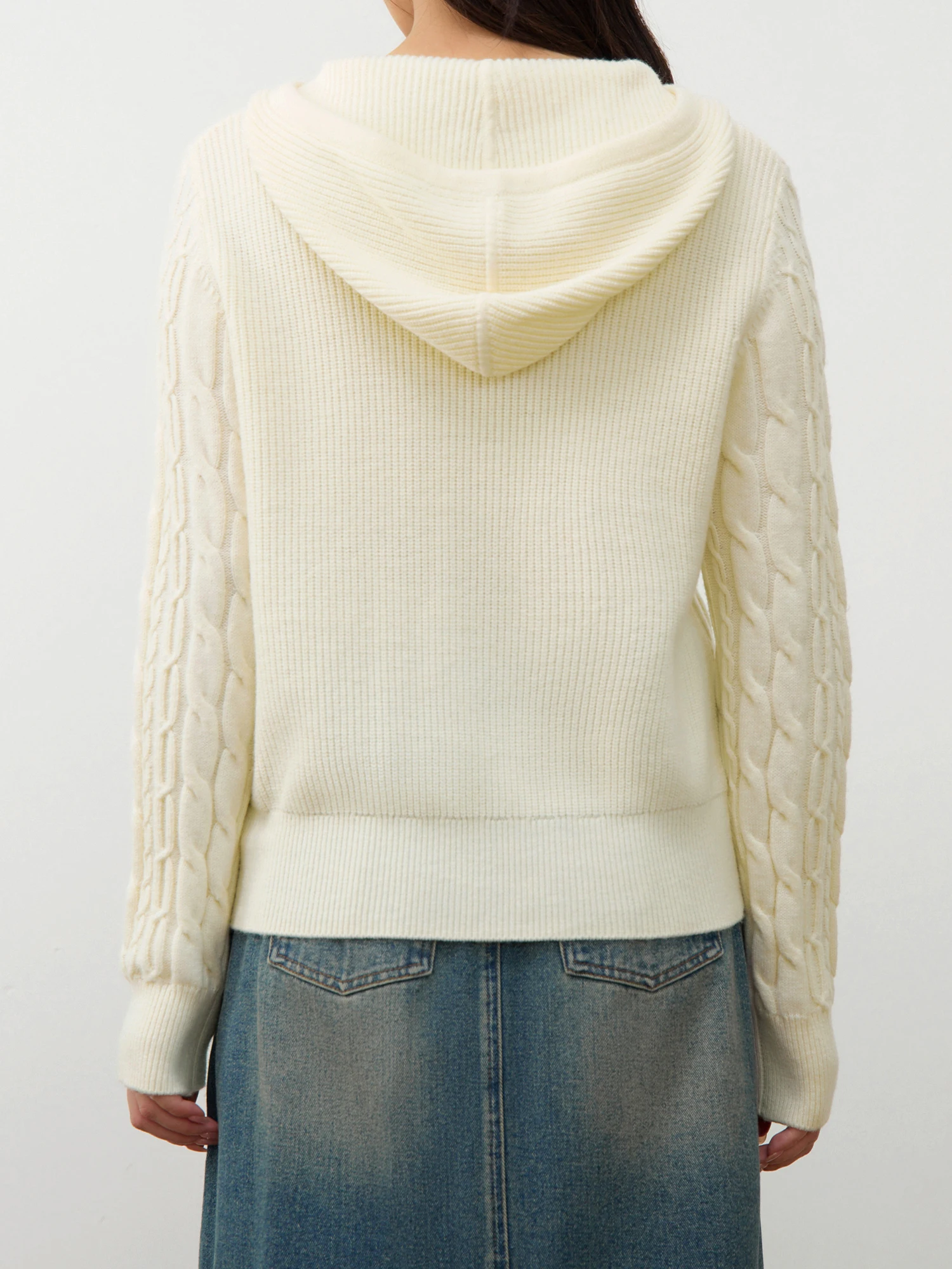 DUSHU Women's Hooded Twisted Knitted Beige Cardigan 2024 Winter New Design Comfortable Soft Knit Sweater Jacket Coat 24DS84114