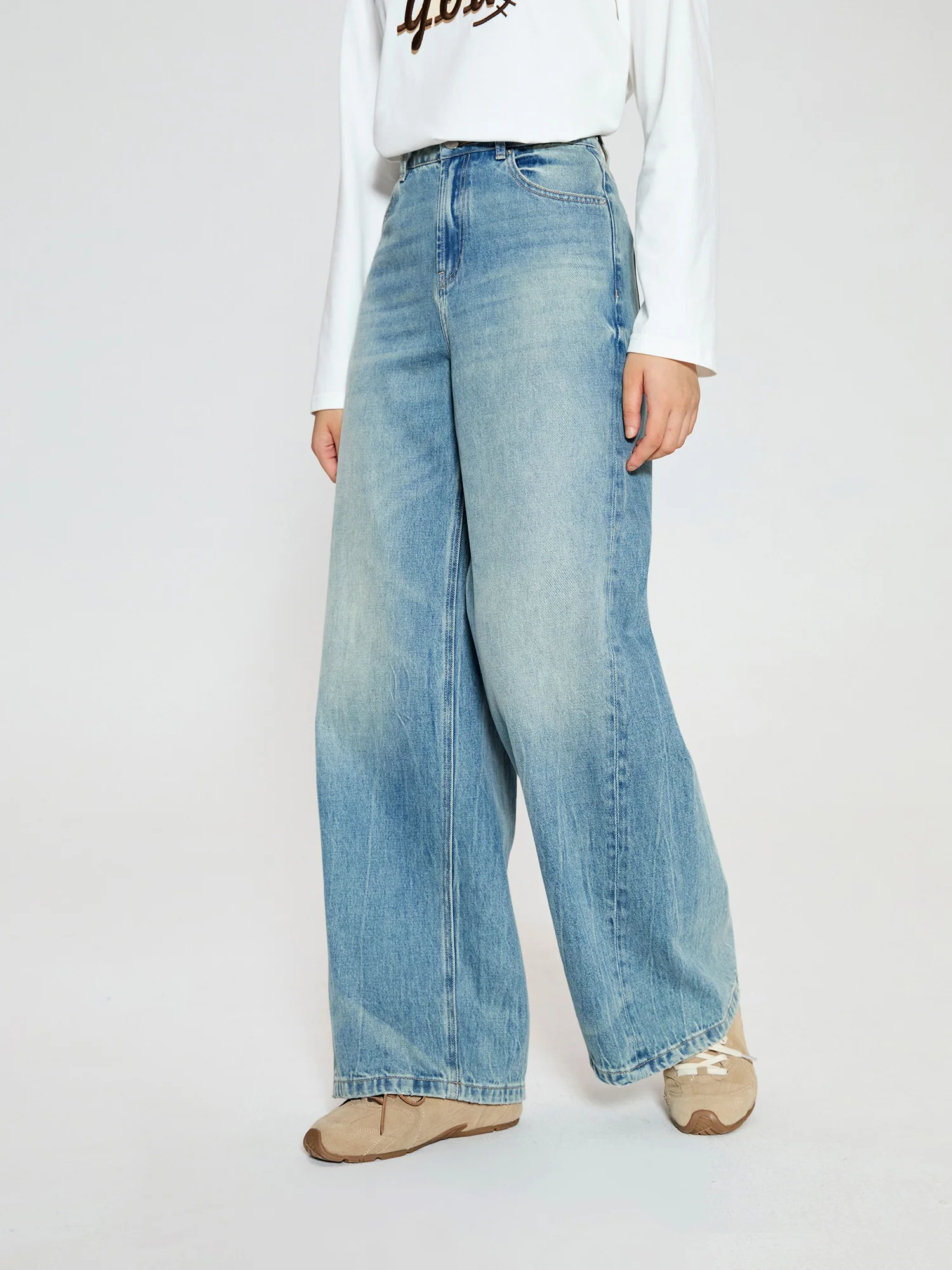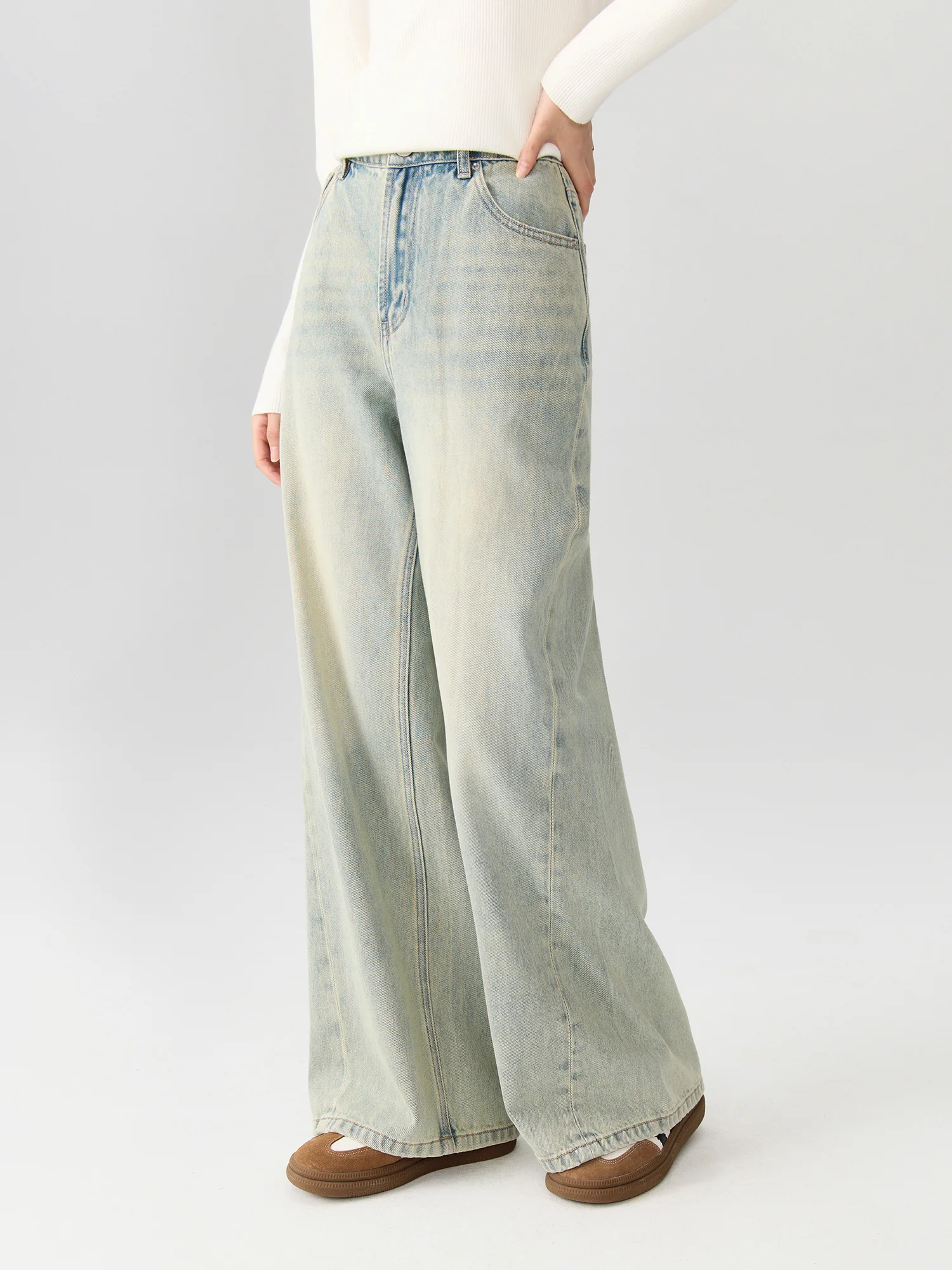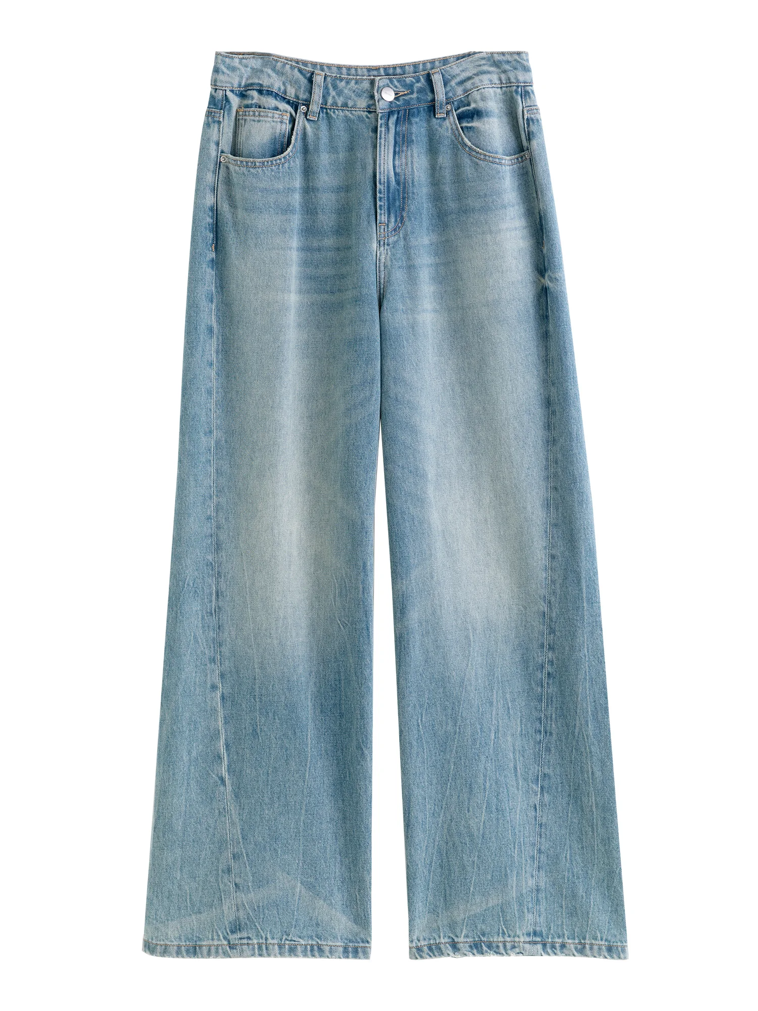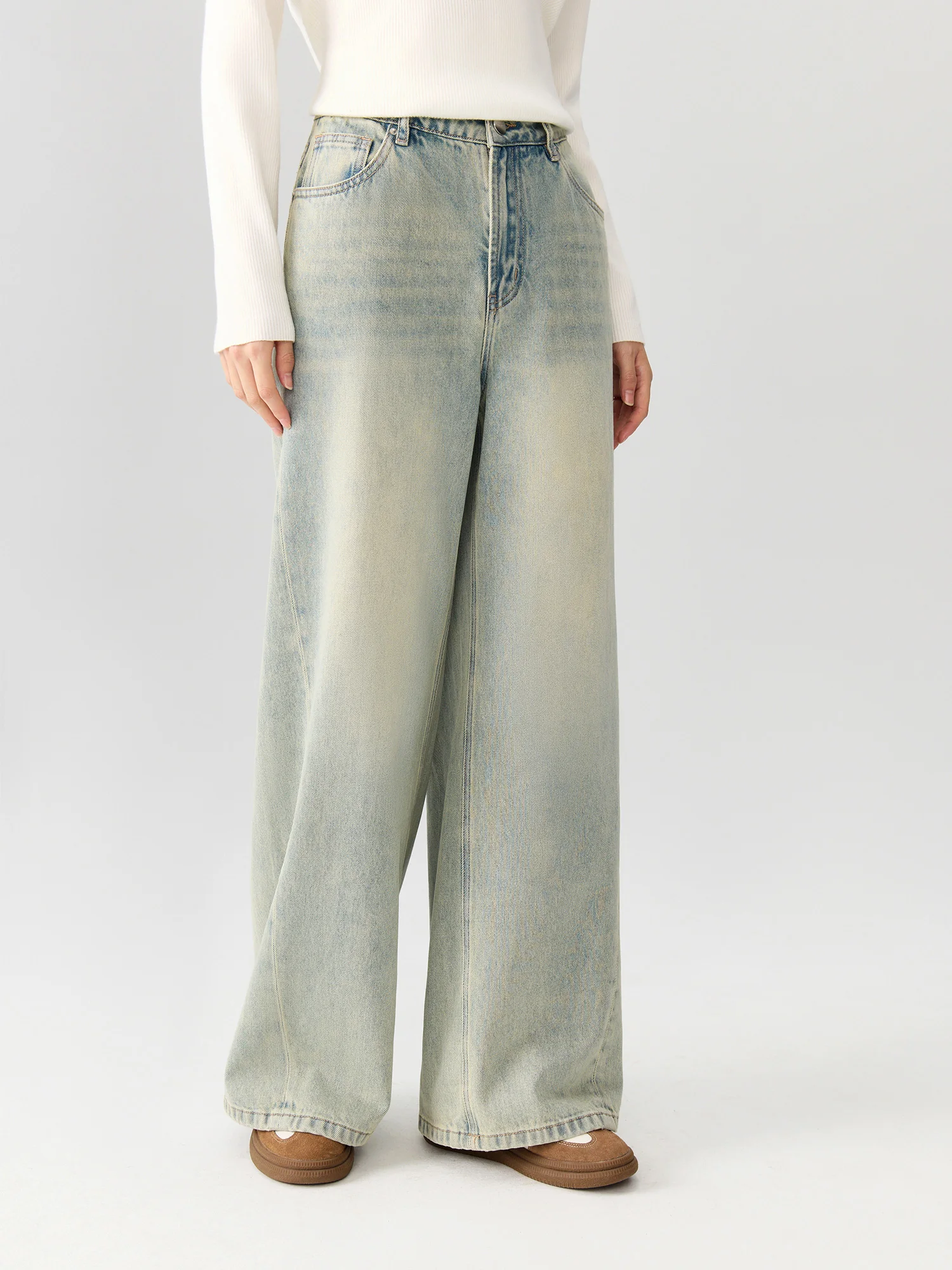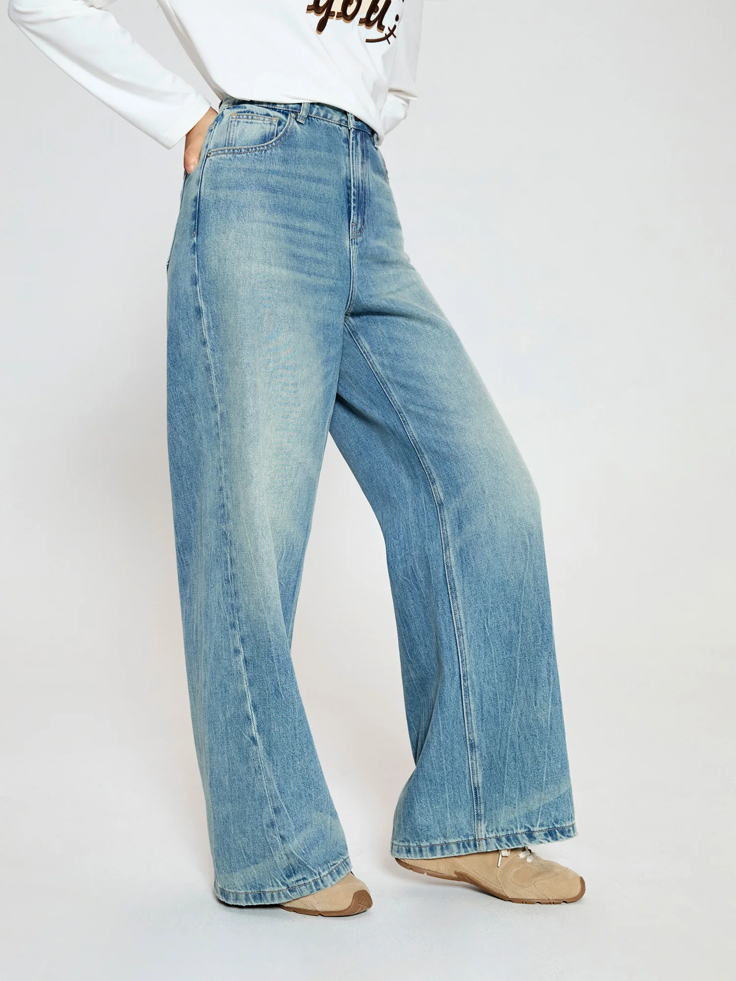 DUSHU Women's Loose Straight Jeans Autumn New Fashionable Two-color High Waist Denim Wide Leg Versatile Casual Pants 24DS83018