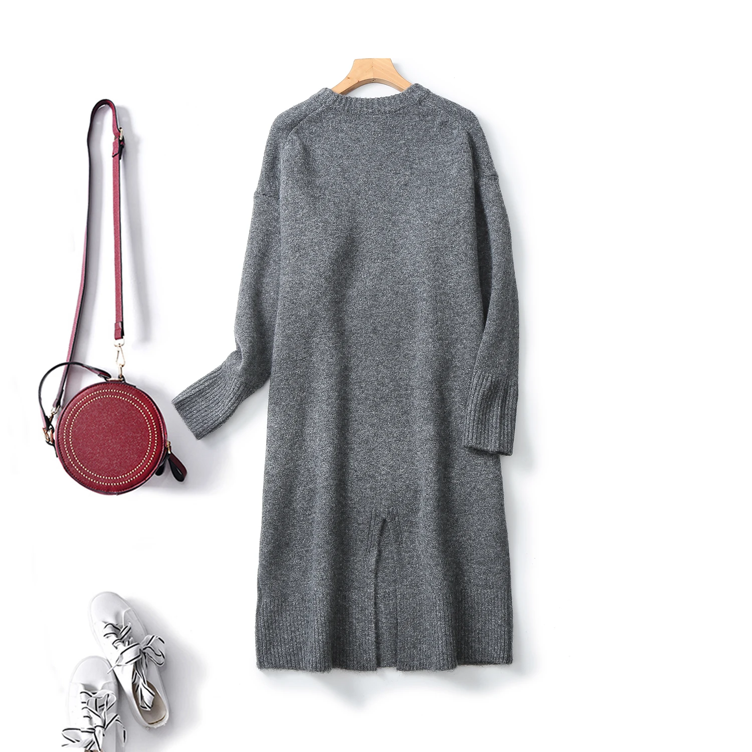 Ethereal 2024 new style of Women's casual long round neck wool blend dress