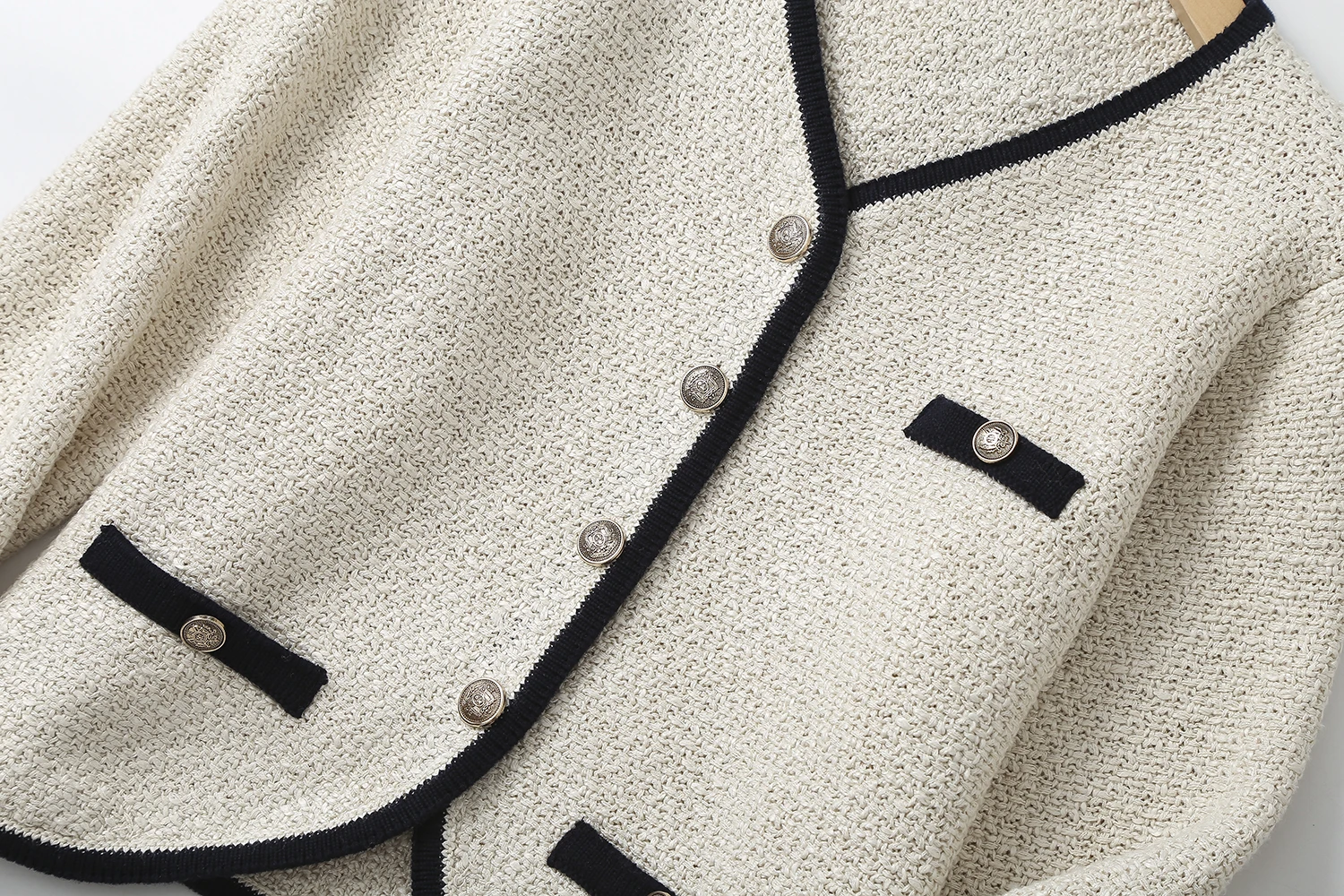 Ethereal MD 2024 new style of Small fragrance style Qianjin sense lady style short V-neck sweater coat