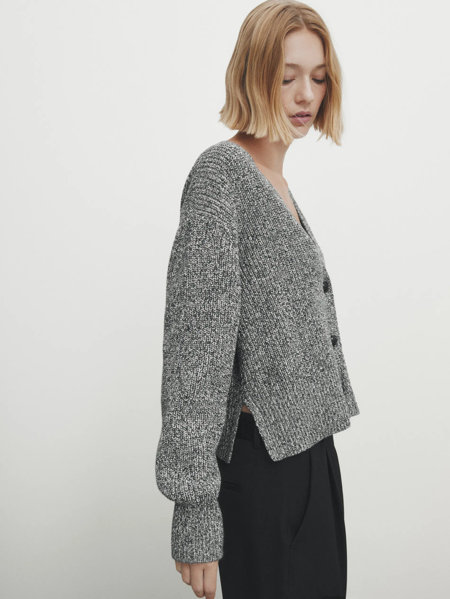Ethereal MD 2024 women's spring new style of Casual comfort two-tone yarn cotton short knitted cardigan