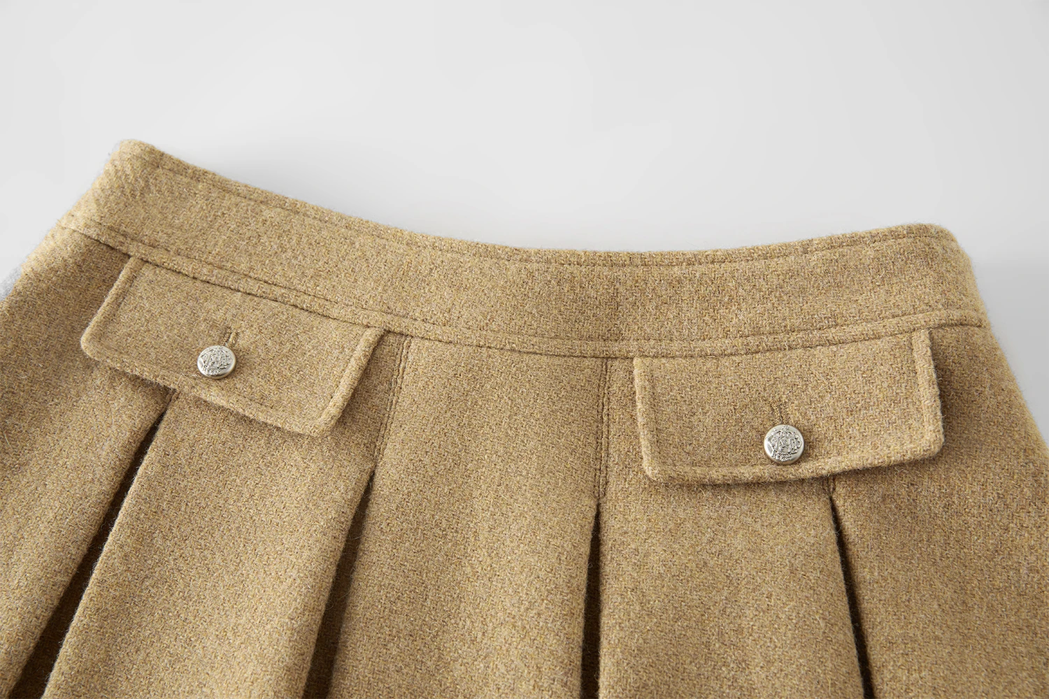 FSLE 100% Wool Women Short Jackets Winter Grey Temperament Coat Skirt Sets Polo Neck Zipper Woolen Jackets 24FS14589+24FS14590