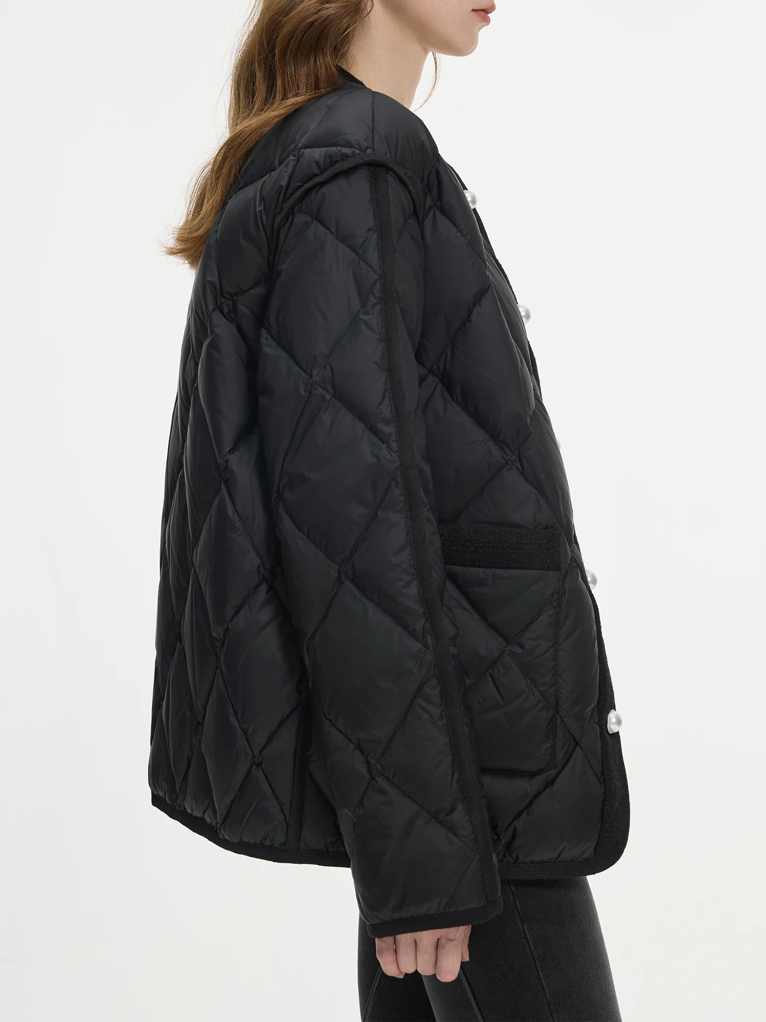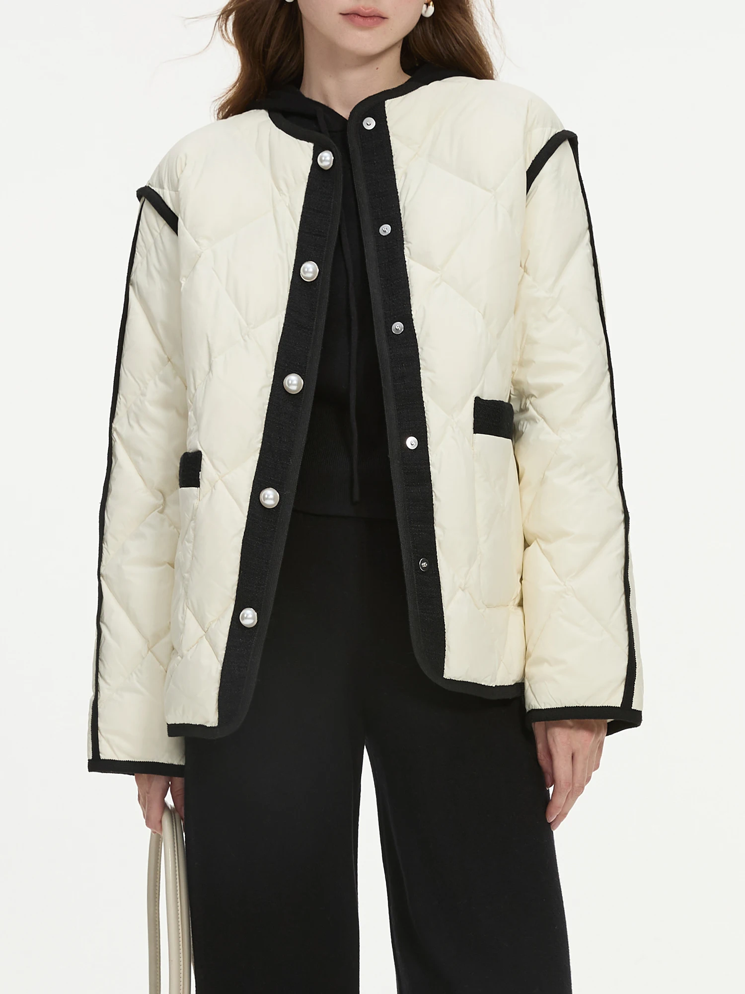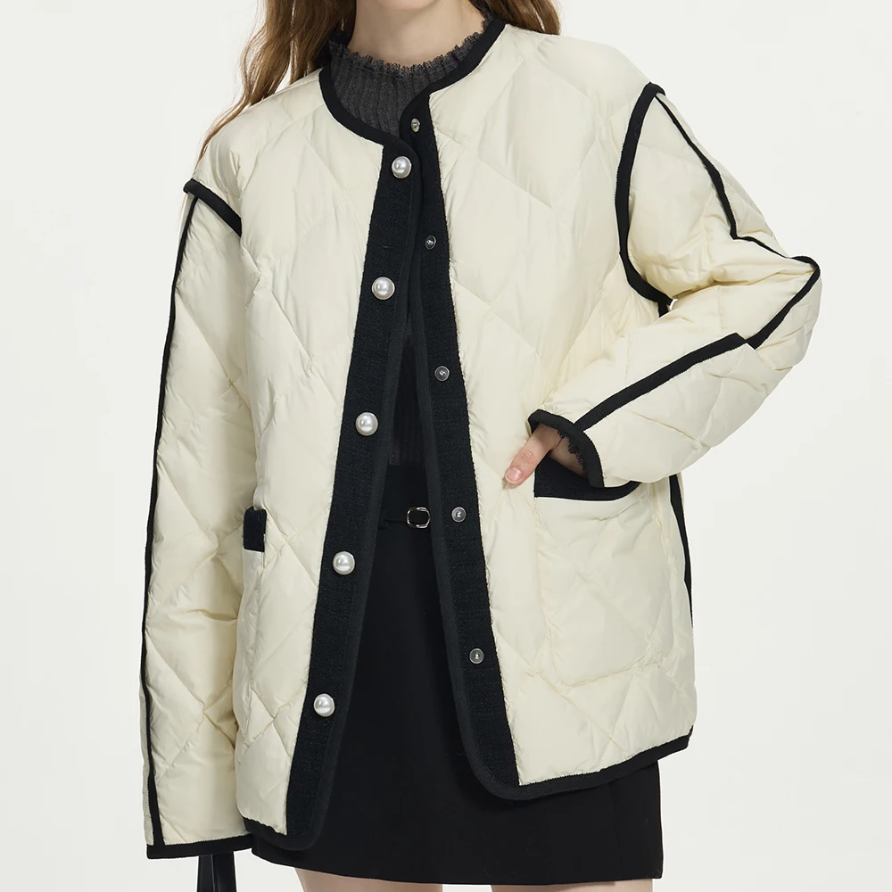 FSLE 105G Filling Amount Fashion Lattice Design Down Coat Jacket For Female Fall Winter 2024 New Loose Warm Jacket 24FS14052