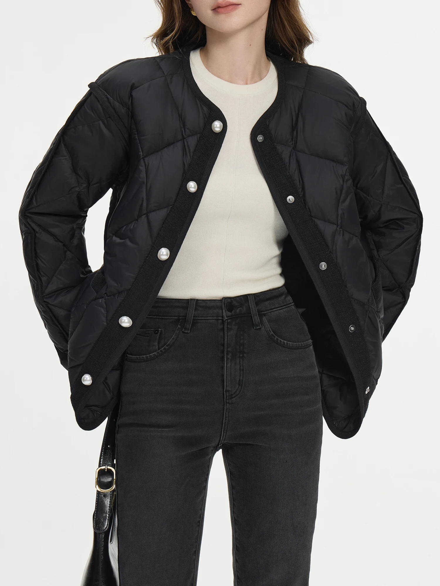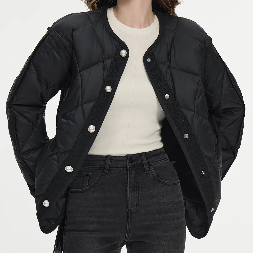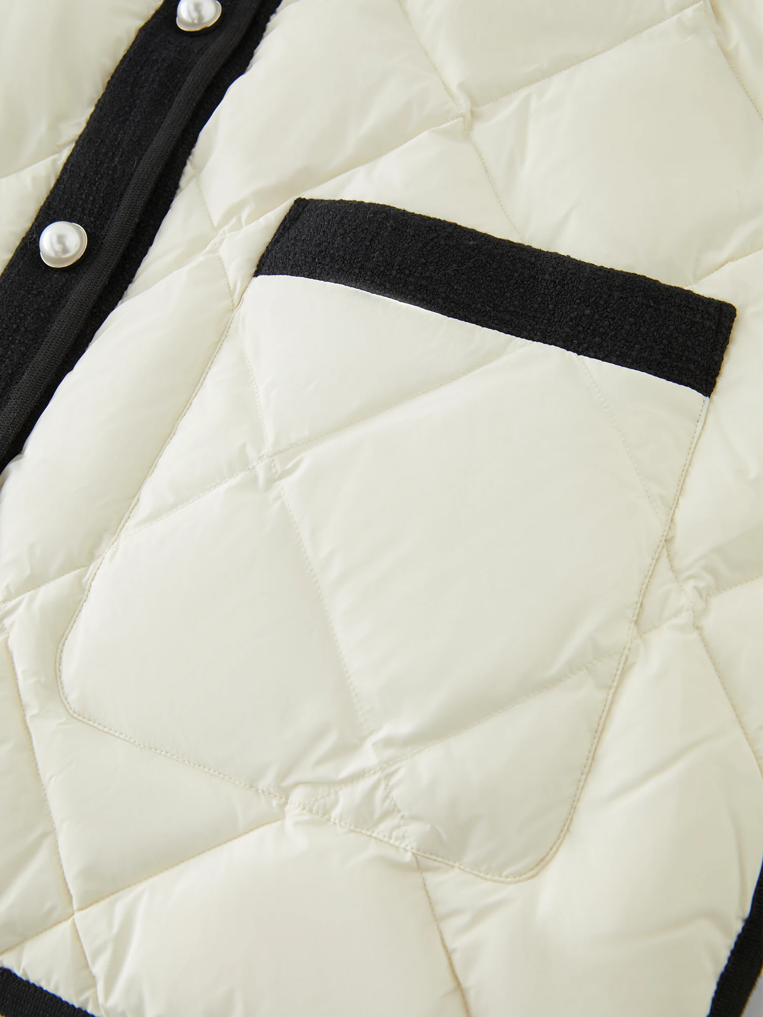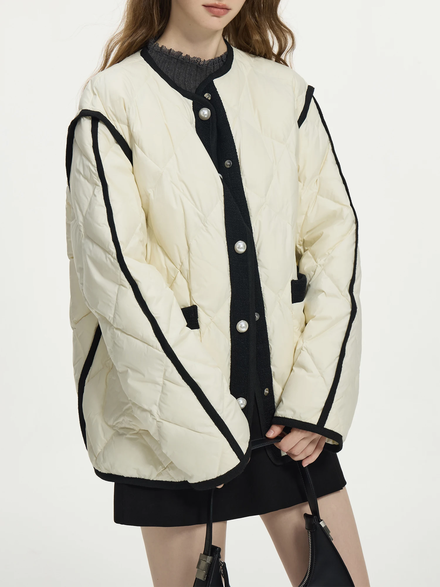 FSLE 105G Filling Amount Fashion Lattice Design Down Coat Jacket For Female Fall Winter 2024 New Loose Warm Jacket 24FS14052