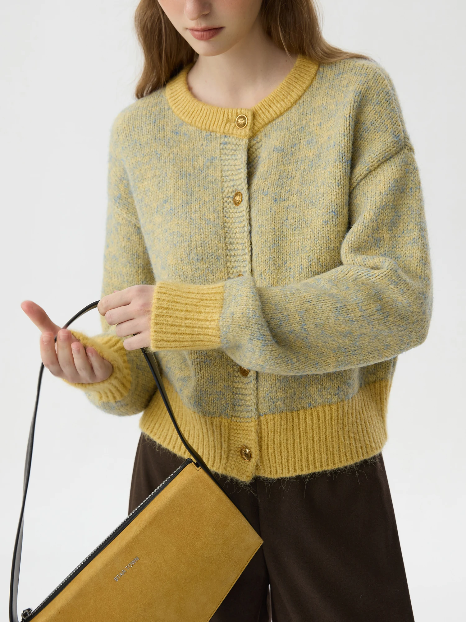 FSLE 2.8% Wool Retro Style Contrast Color Round Neck Cardigan Women Autumn Winter 2024 Colorful Dot Yarn Loose Sweater 24FS14027