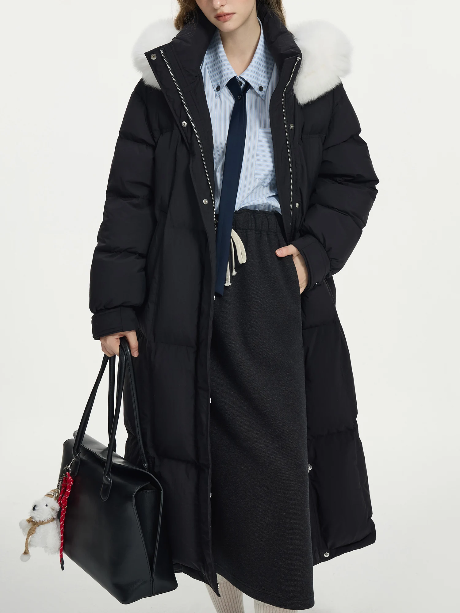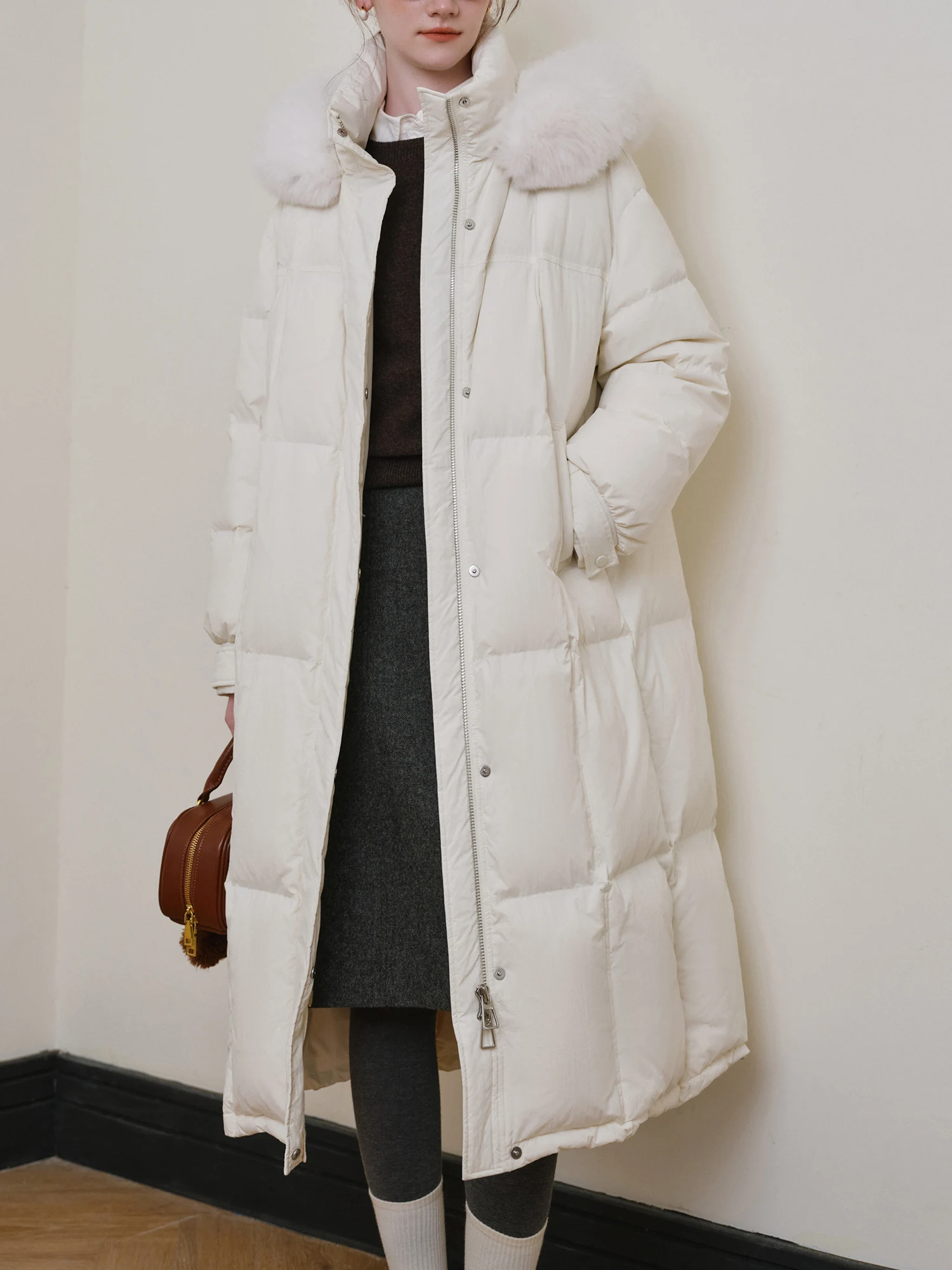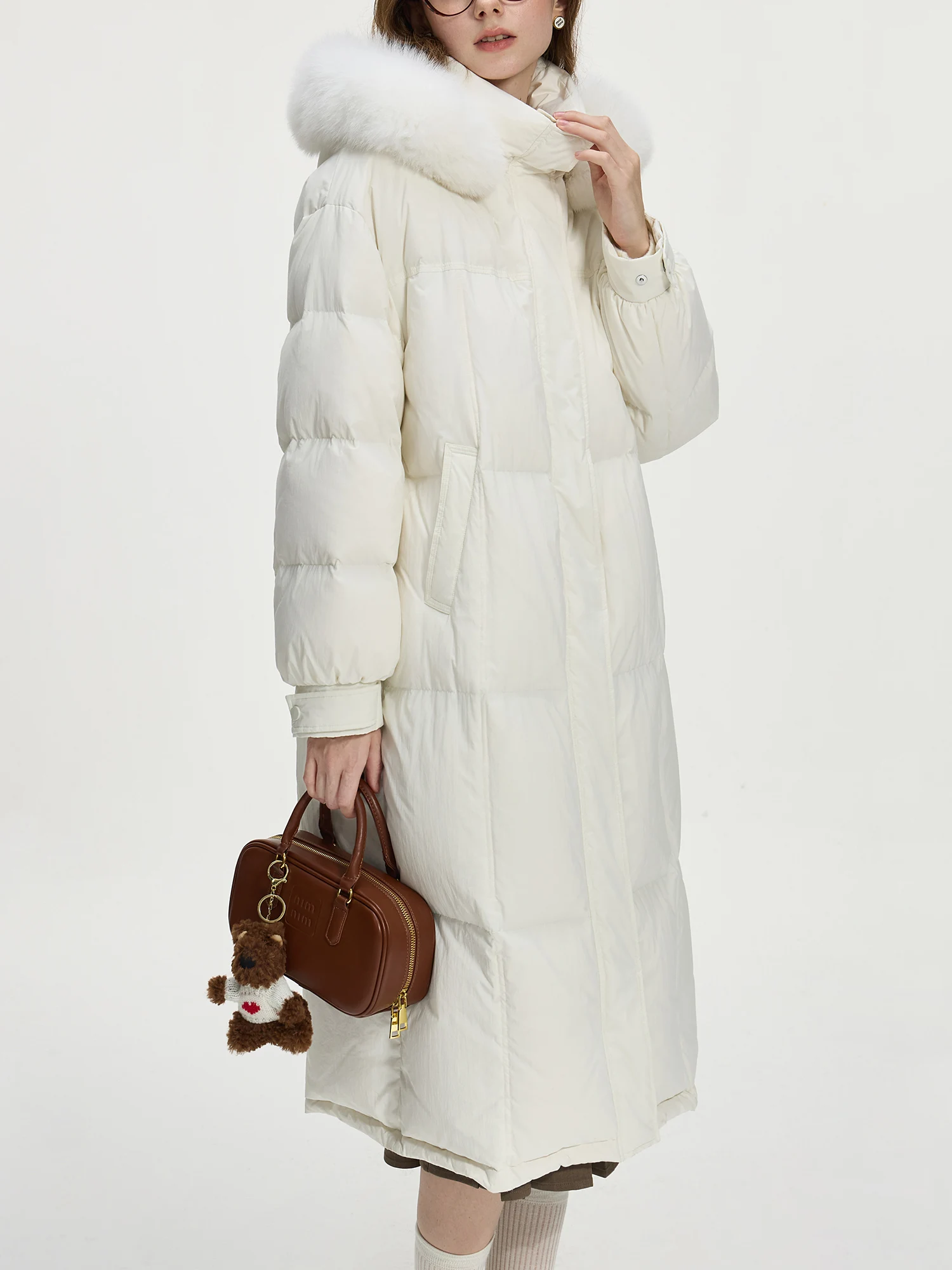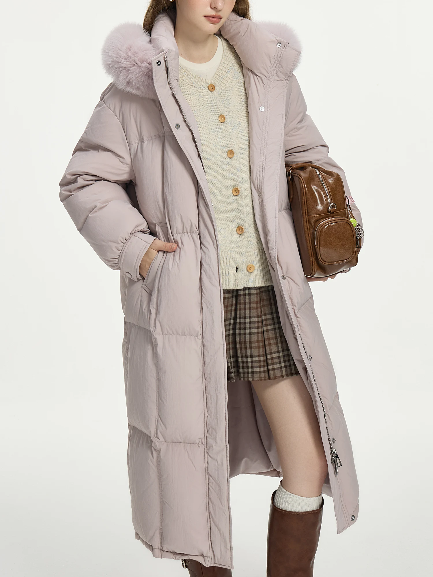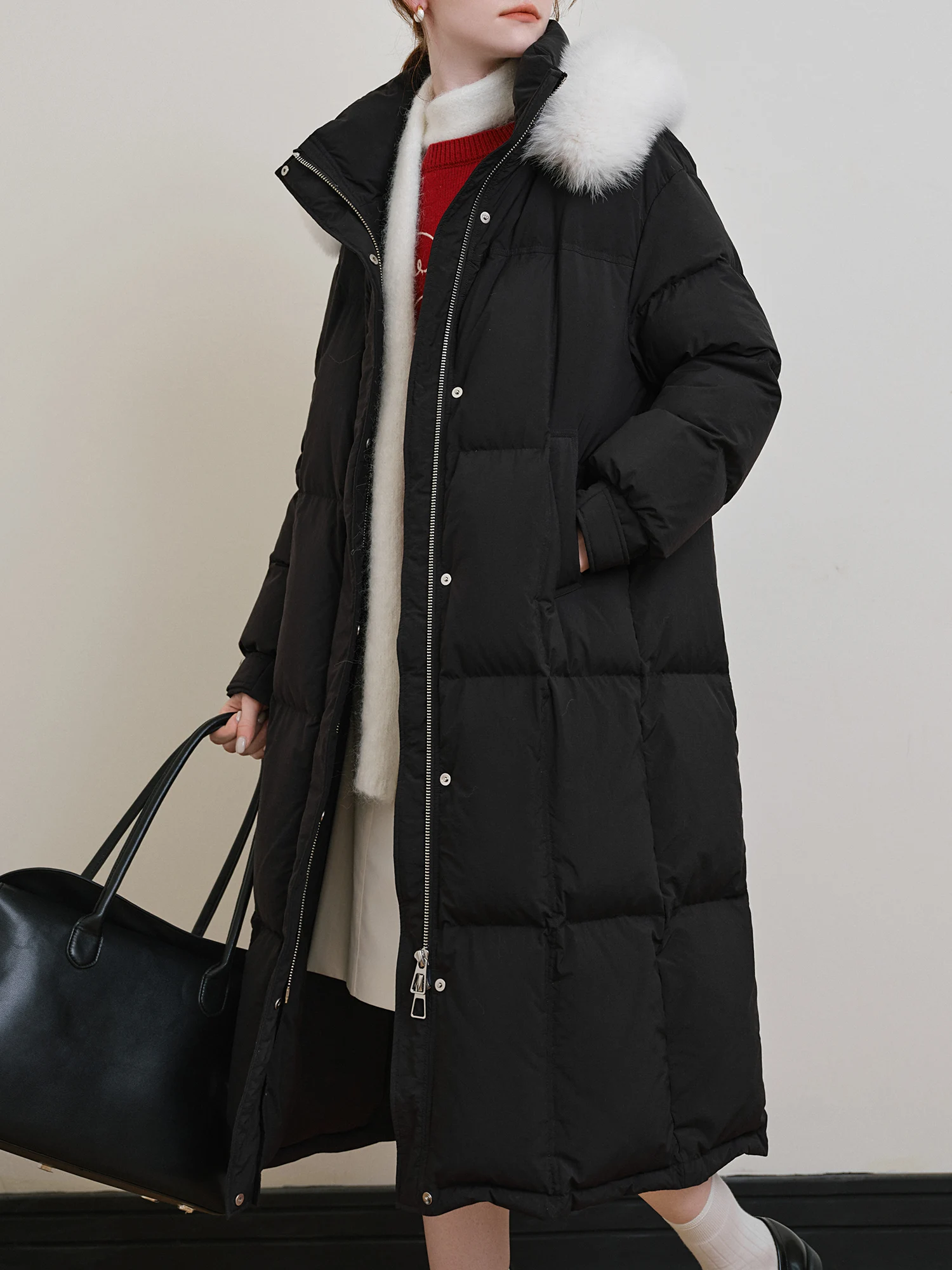 FSLE 207.2G Filling Amount 5 Color Long Down Coat For Women 2024 Winter Fox Fur Collar Hooded Warm Elegant Jacket 24FS14057