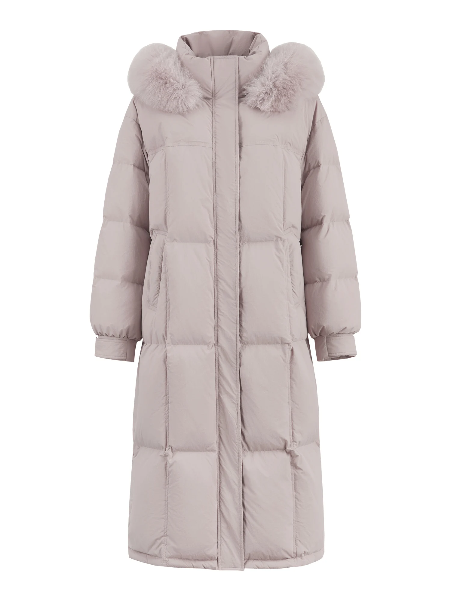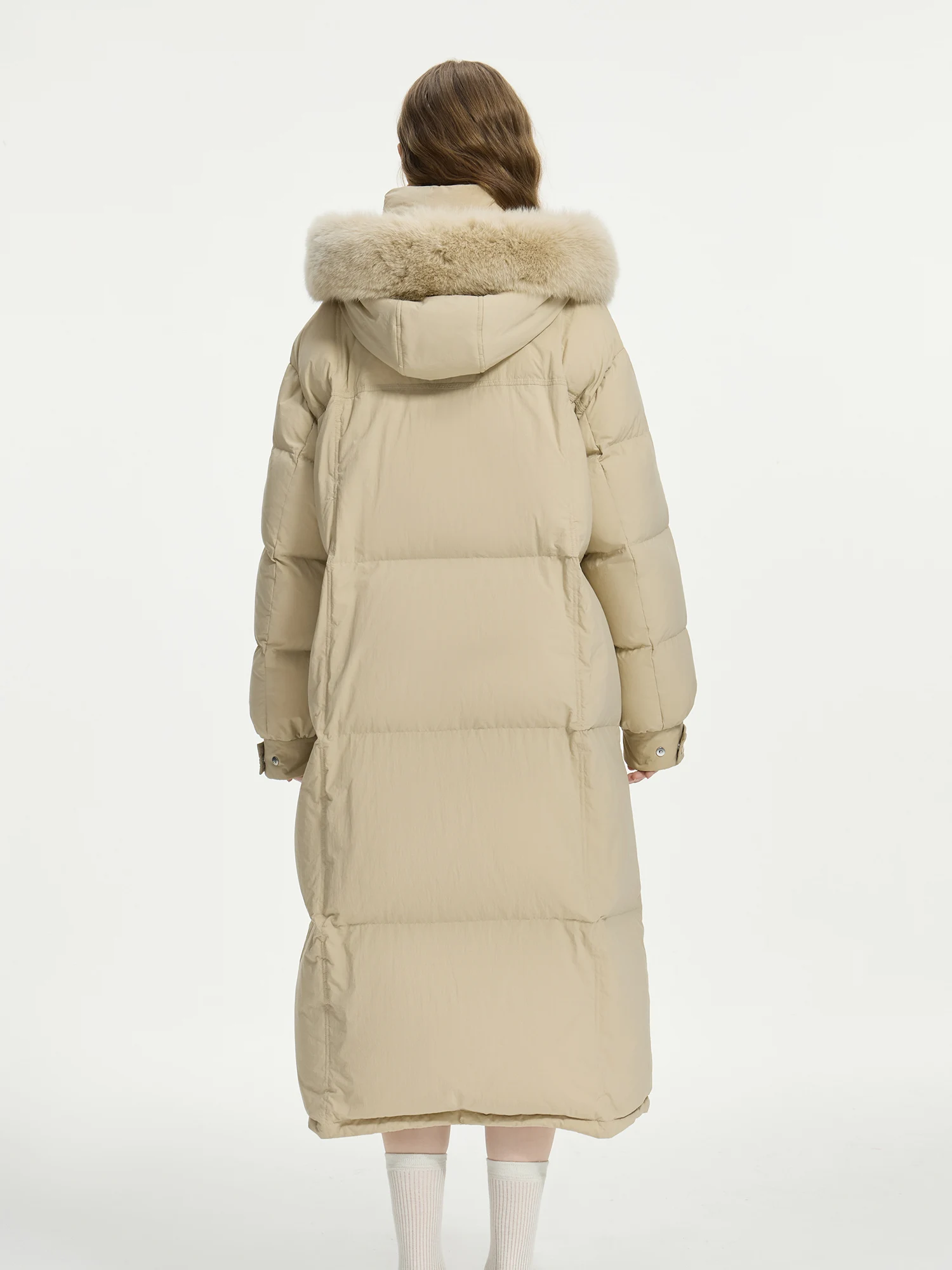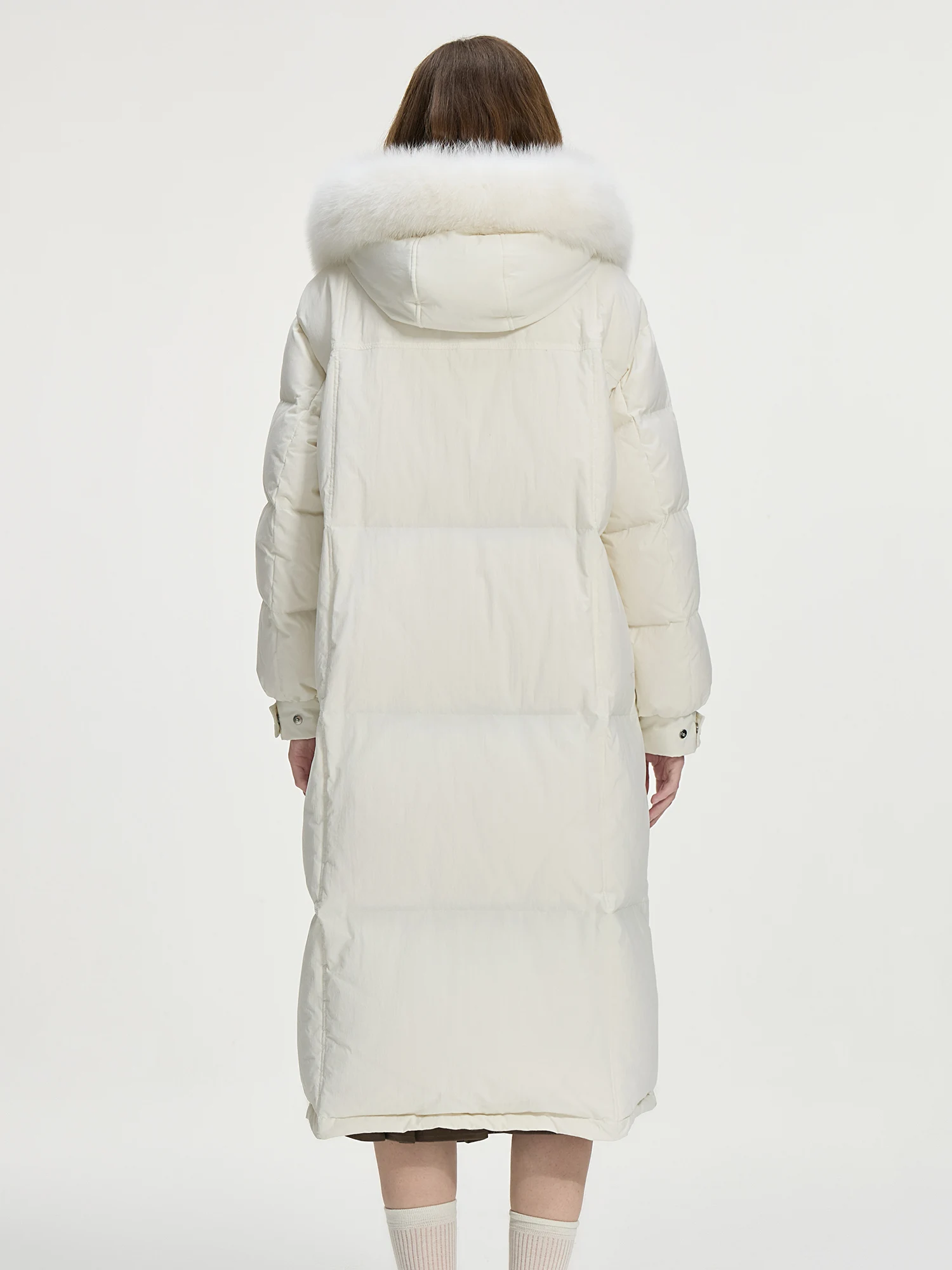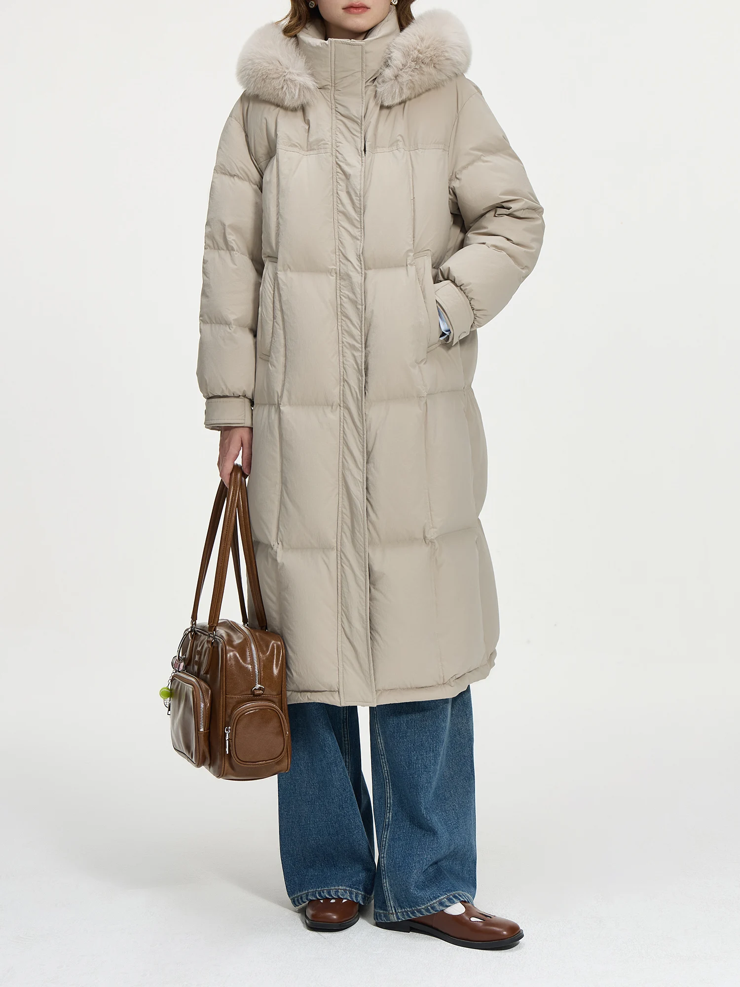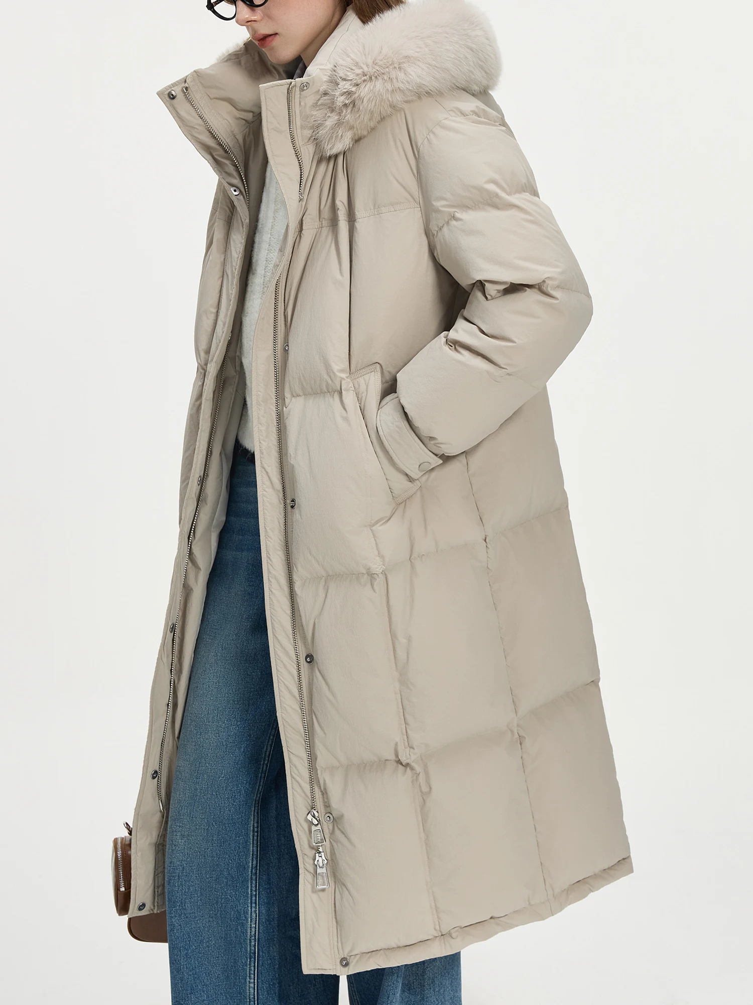 FSLE 207.2G Filling Amount 5 Color Long Down Coat For Women 2024 Winter Fox Fur Collar Hooded Warm Elegant Jacket 24FS14057