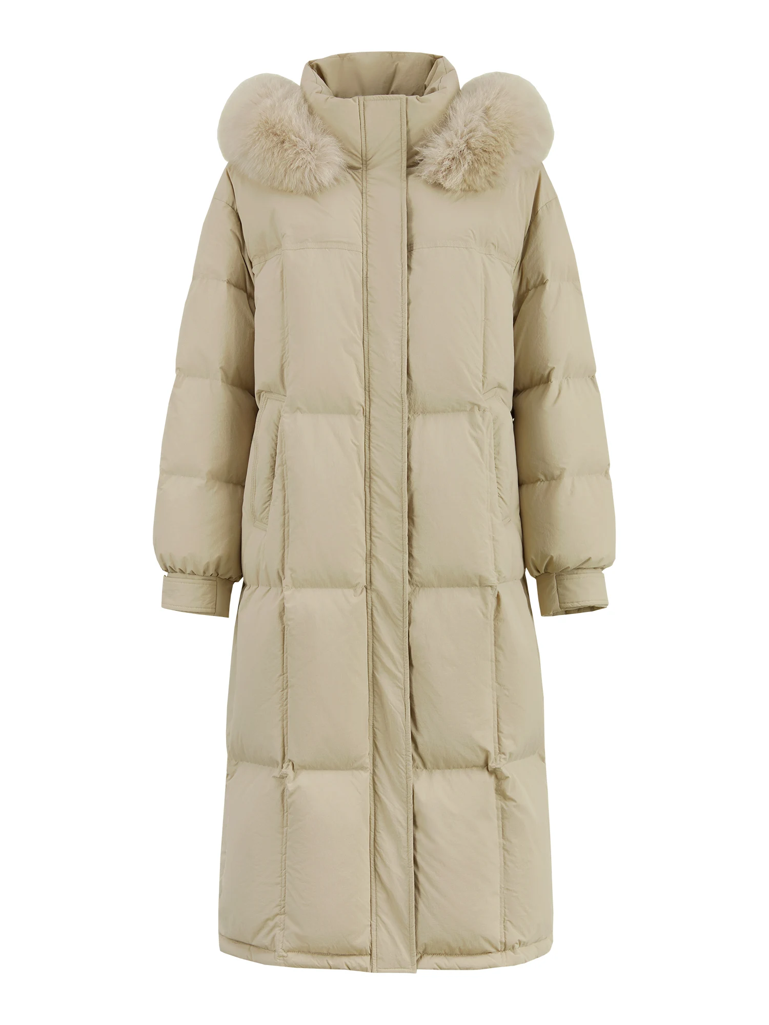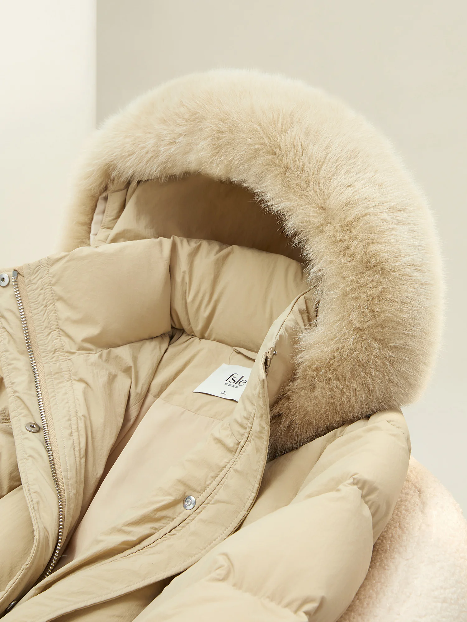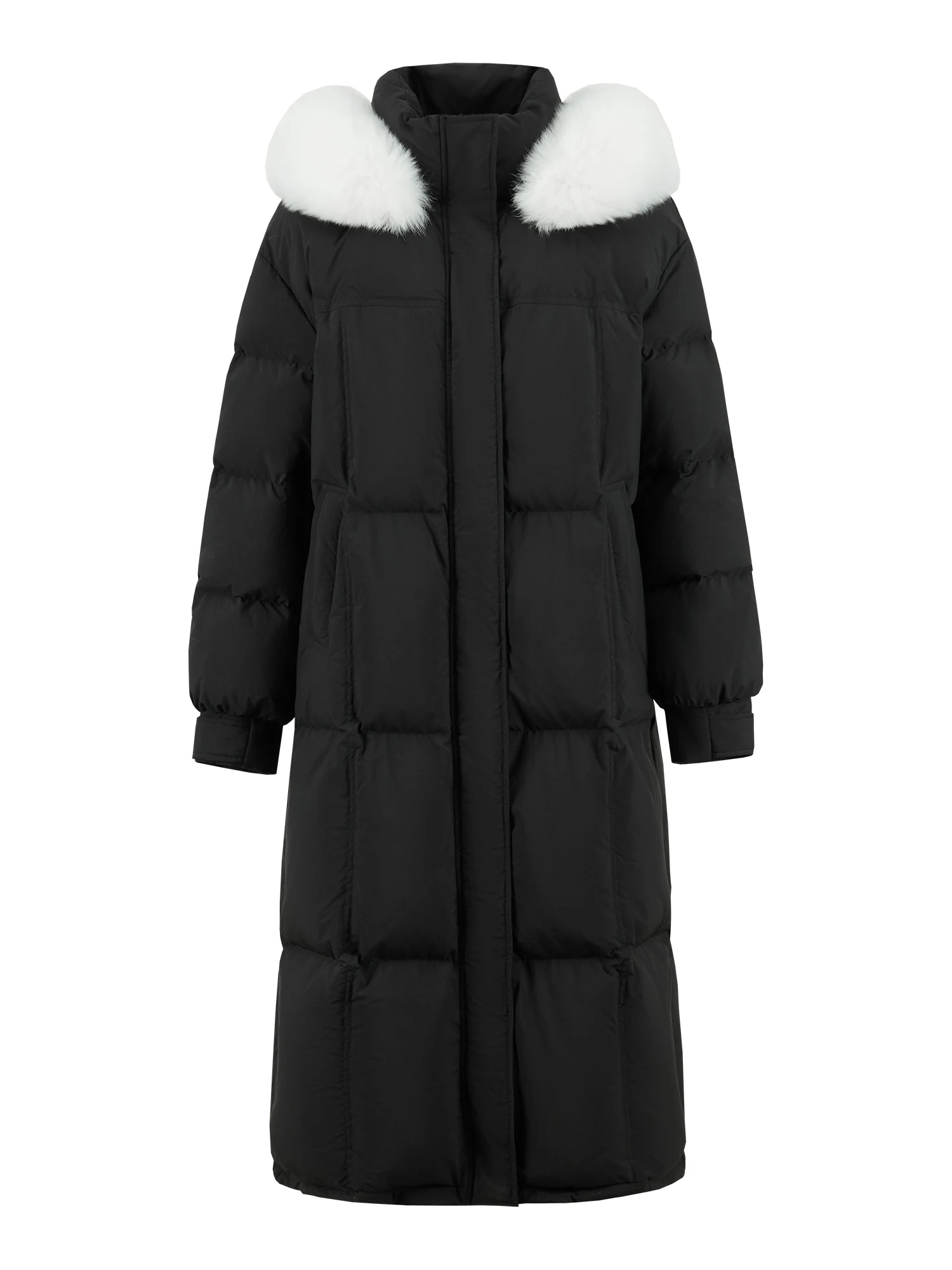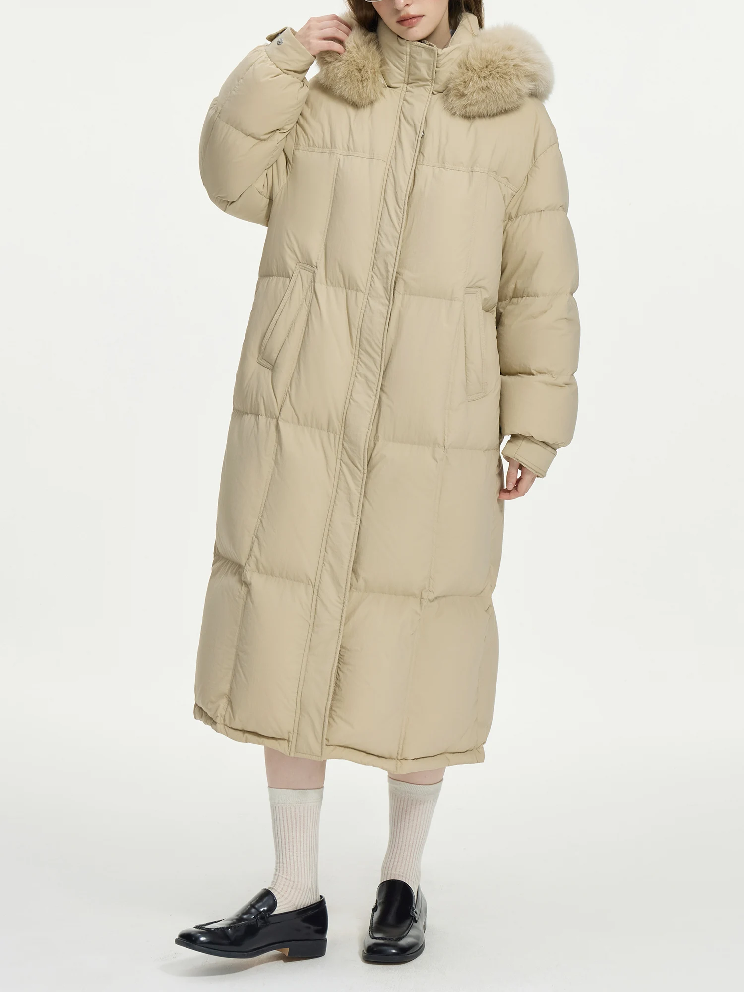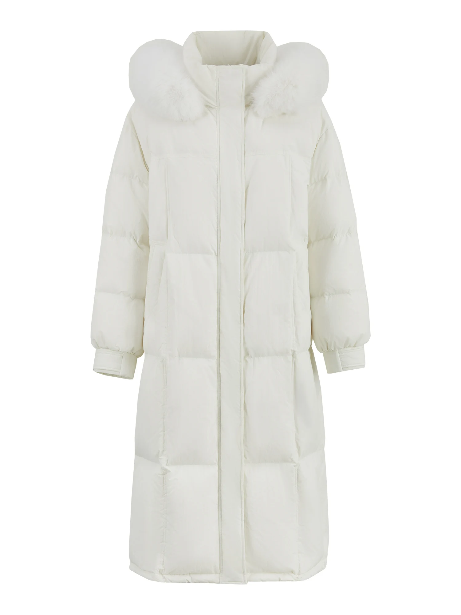 FSLE 207.2G Filling Amount 5 Color Long Down Coat For Women 2024 Winter Fox Fur Collar Hooded Warm Elegant Jacket 24FS14057