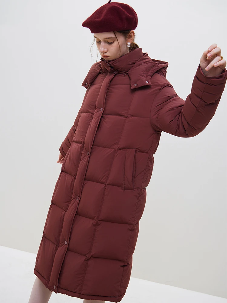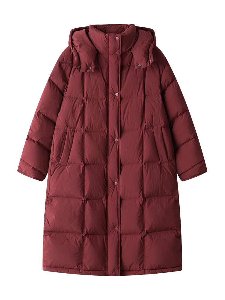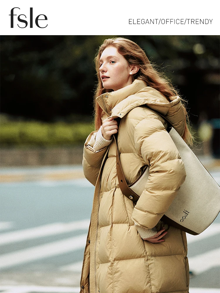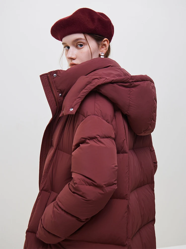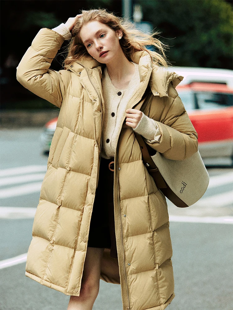 FSLE 240G Filling Capacity Retro Urban Commute Simple Korean Style Hooded Mid-Length Down Jacket Yellow Thicken Female Down Coat