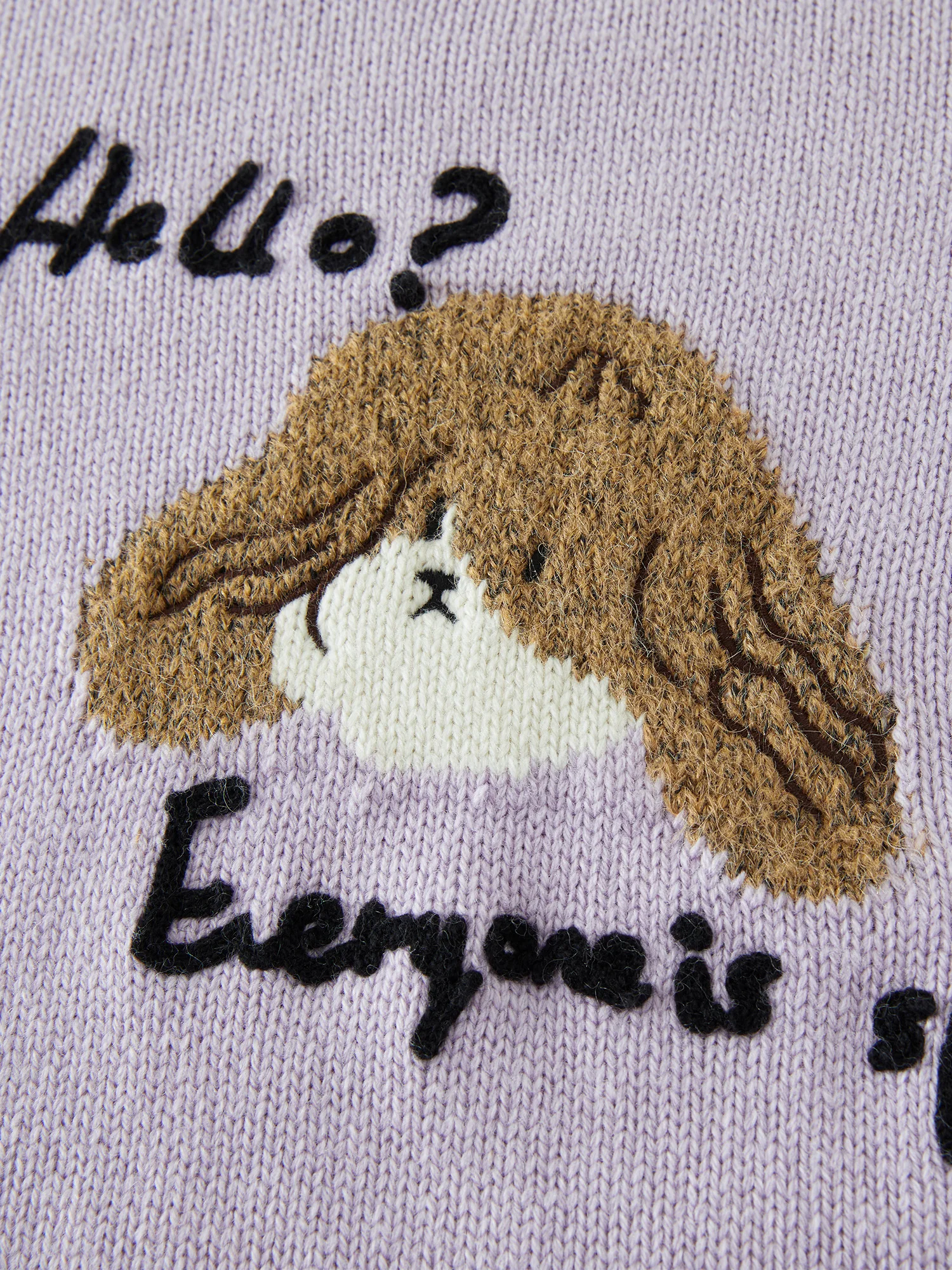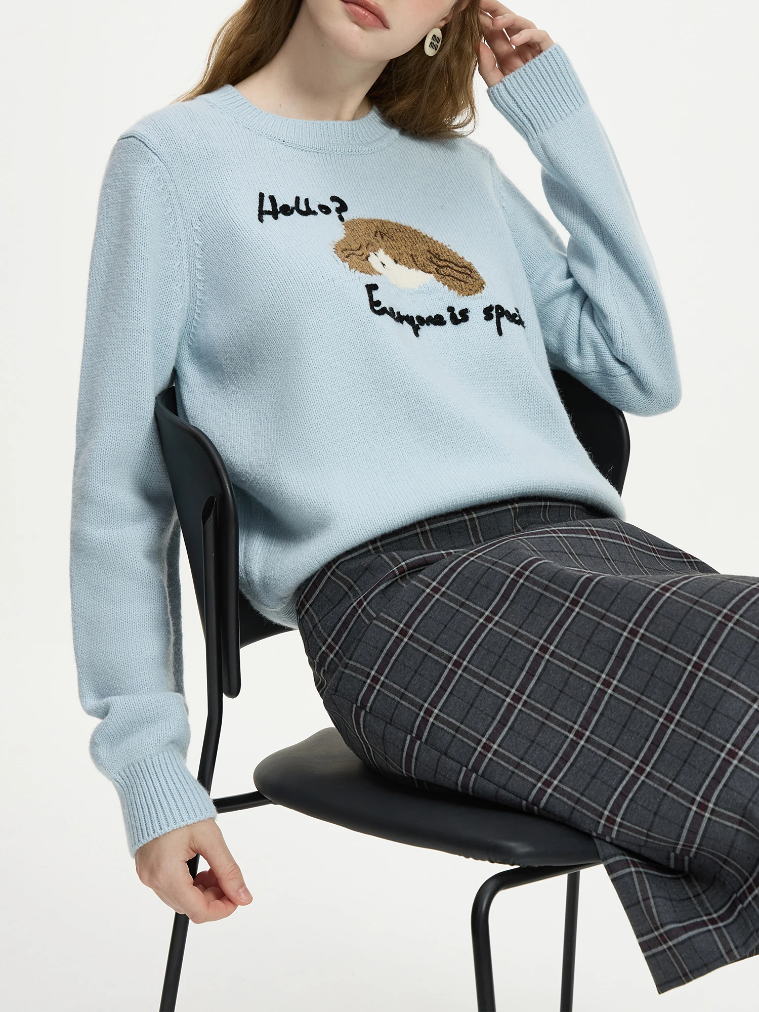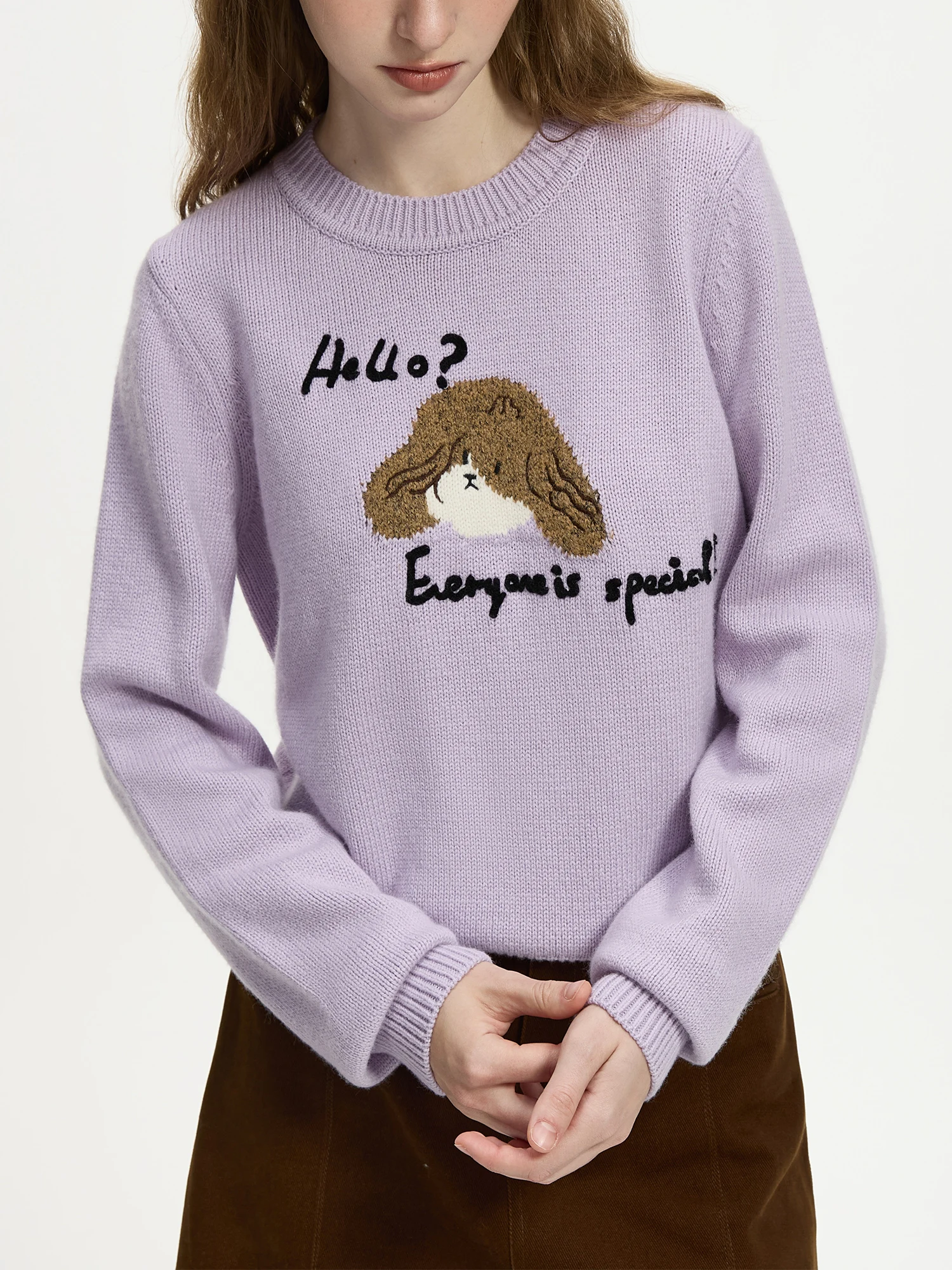 FSLE 29.1% Wool Round Neck Cartoon Puppy Letters Pullover Knit Sweater For Women 2024 Fall Winter New Design Pullover 24FS14245