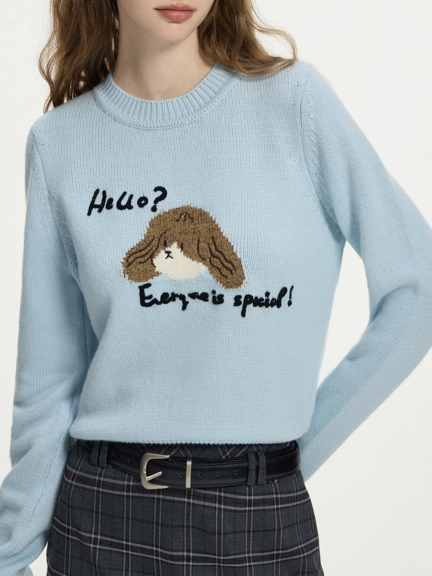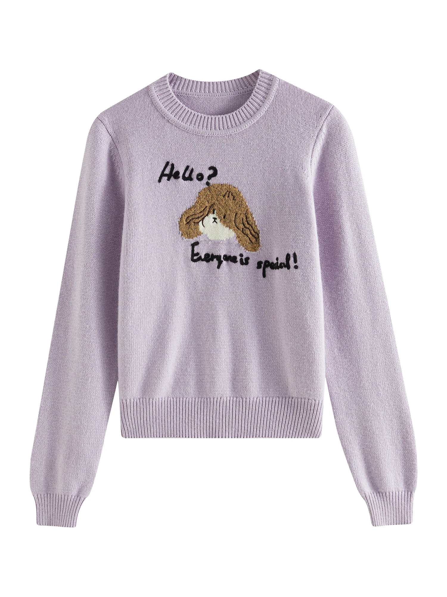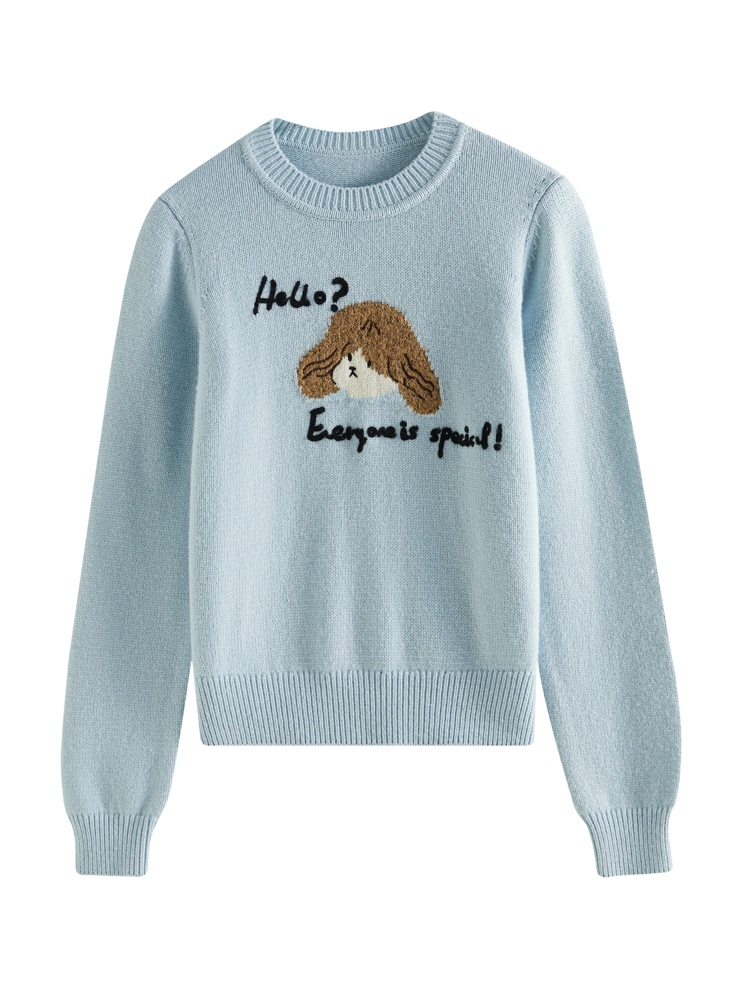 FSLE 29.1% Wool Round Neck Cartoon Puppy Letters Pullover Knit Sweater For Women 2024 Fall Winter New Design Pullover 24FS14245