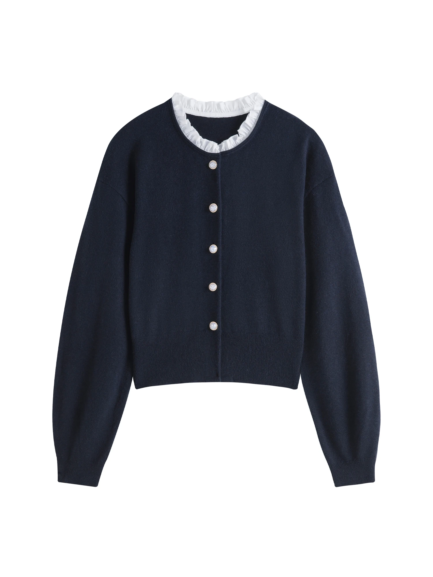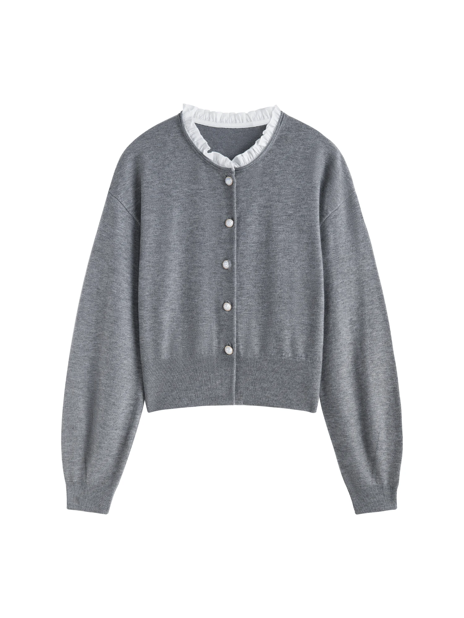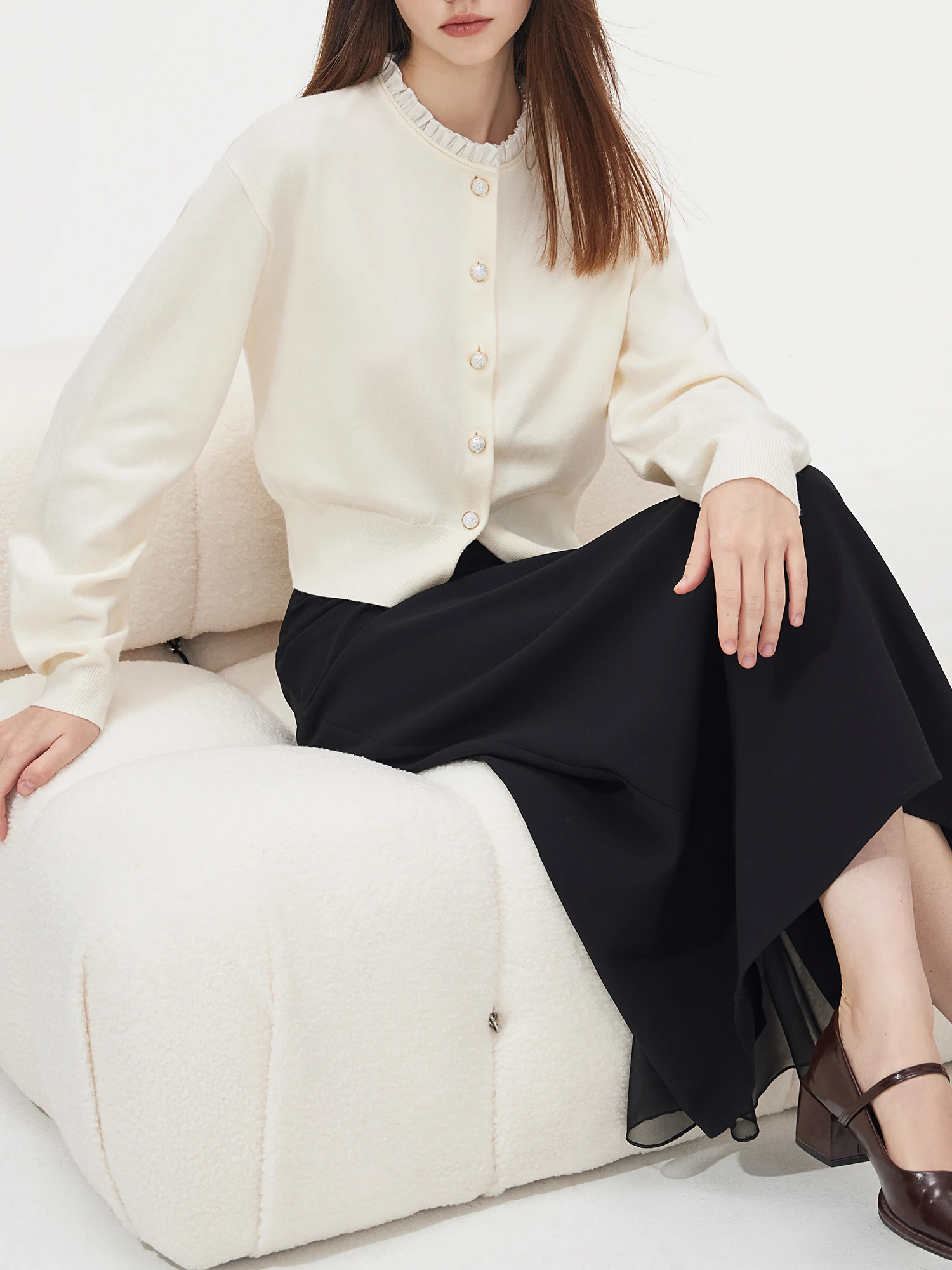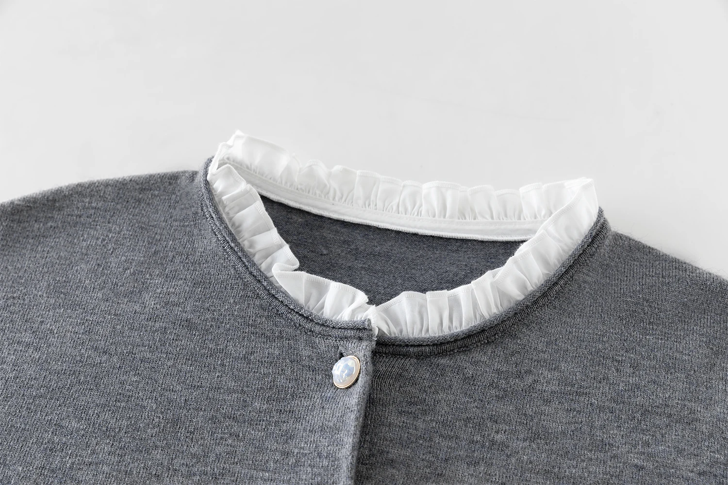 FSLE【3 Colors】Women Sweater Cardigan Patchwork Neckline Design Office Lady Autumn Knitted Single Breasted Cardigan Top 24FS13119