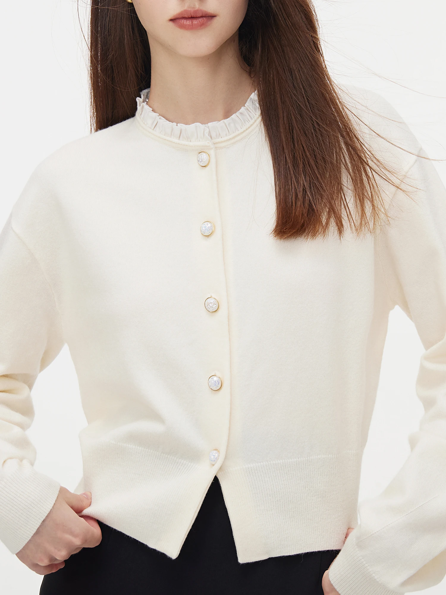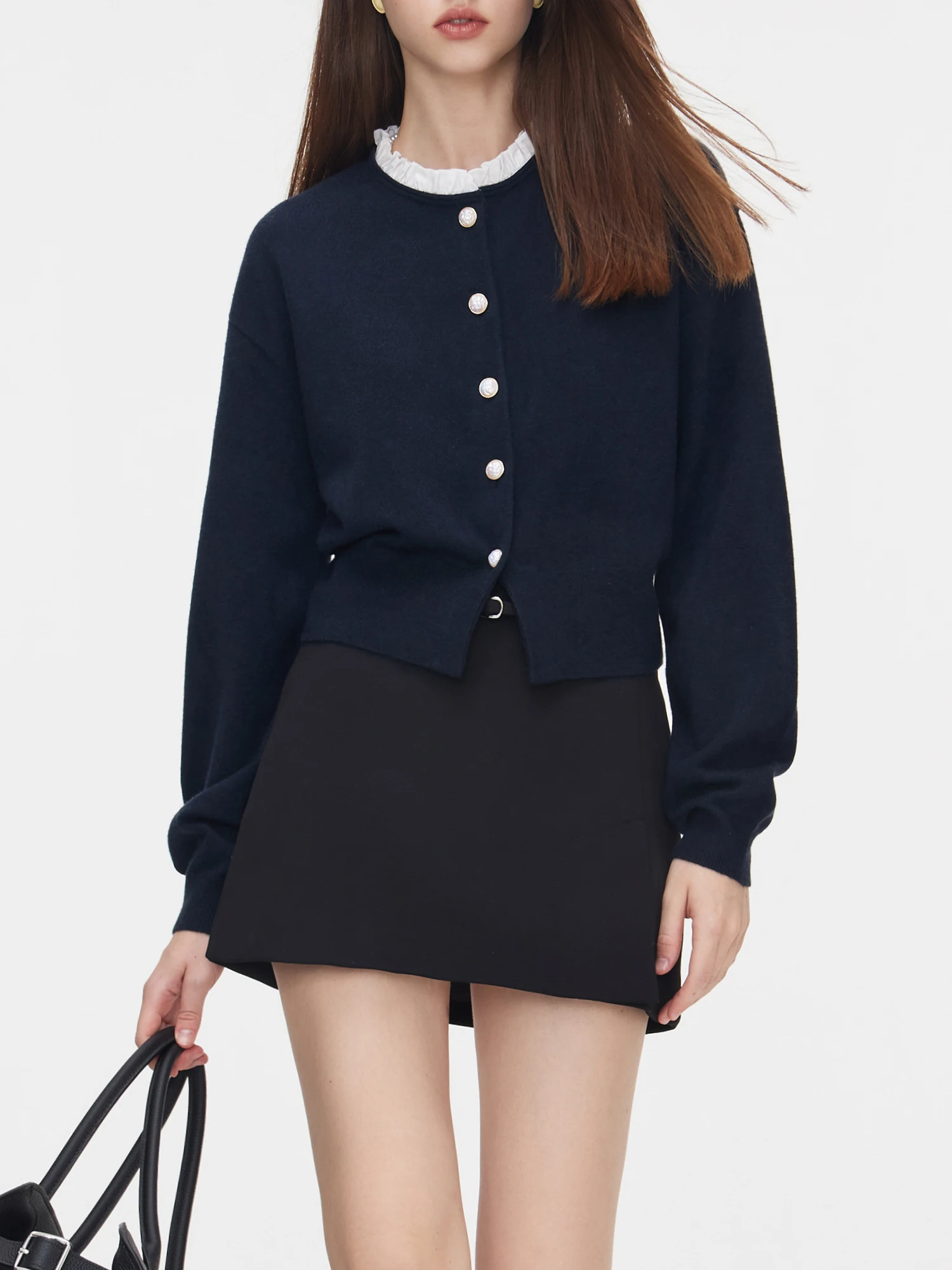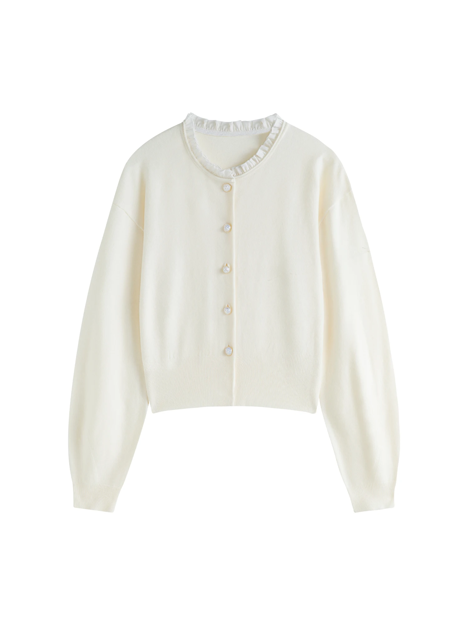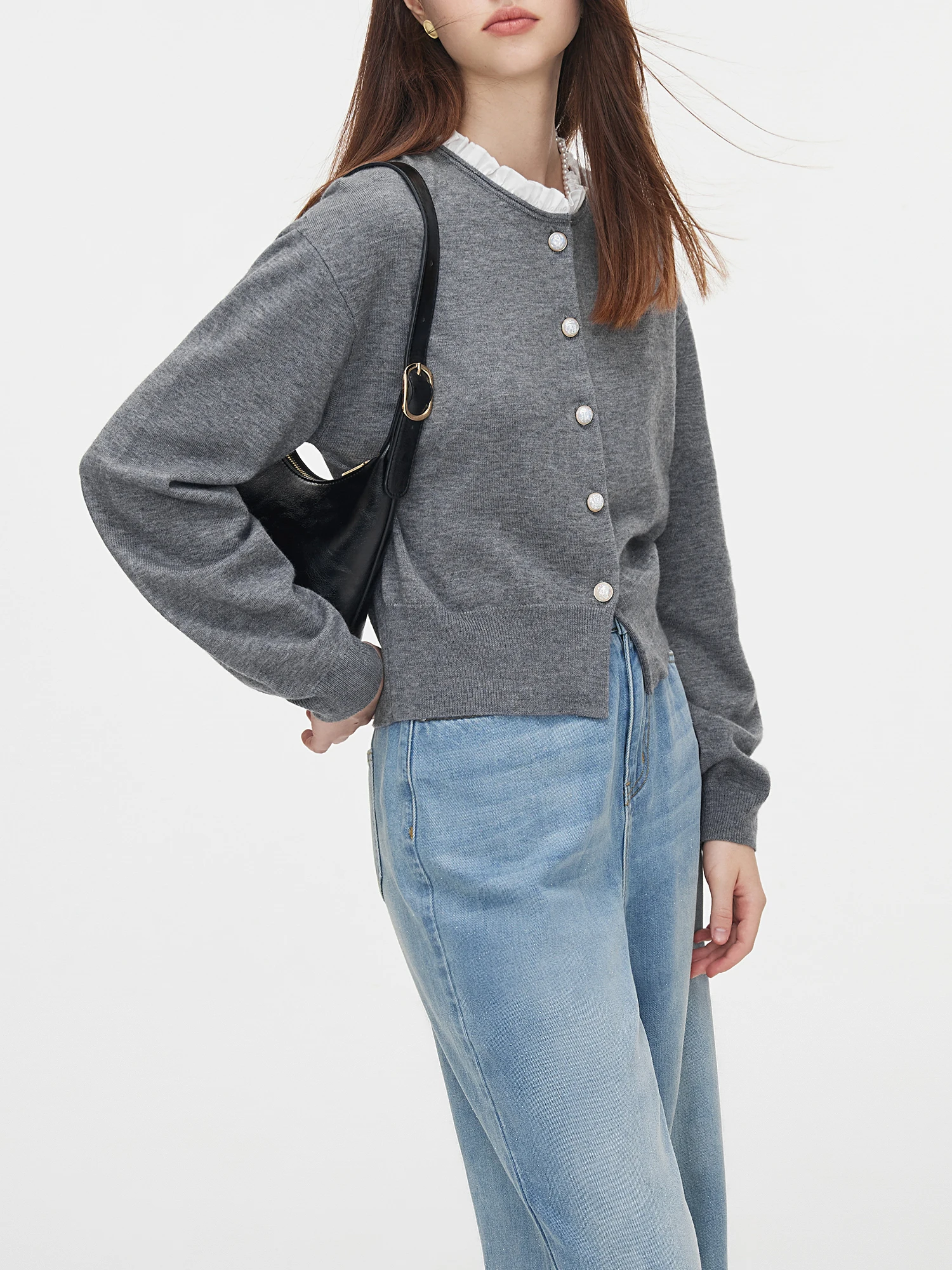 FSLE【3 Colors】Women Sweater Cardigan Patchwork Neckline Design Office Lady Autumn Knitted Single Breasted Cardigan Top 24FS13119