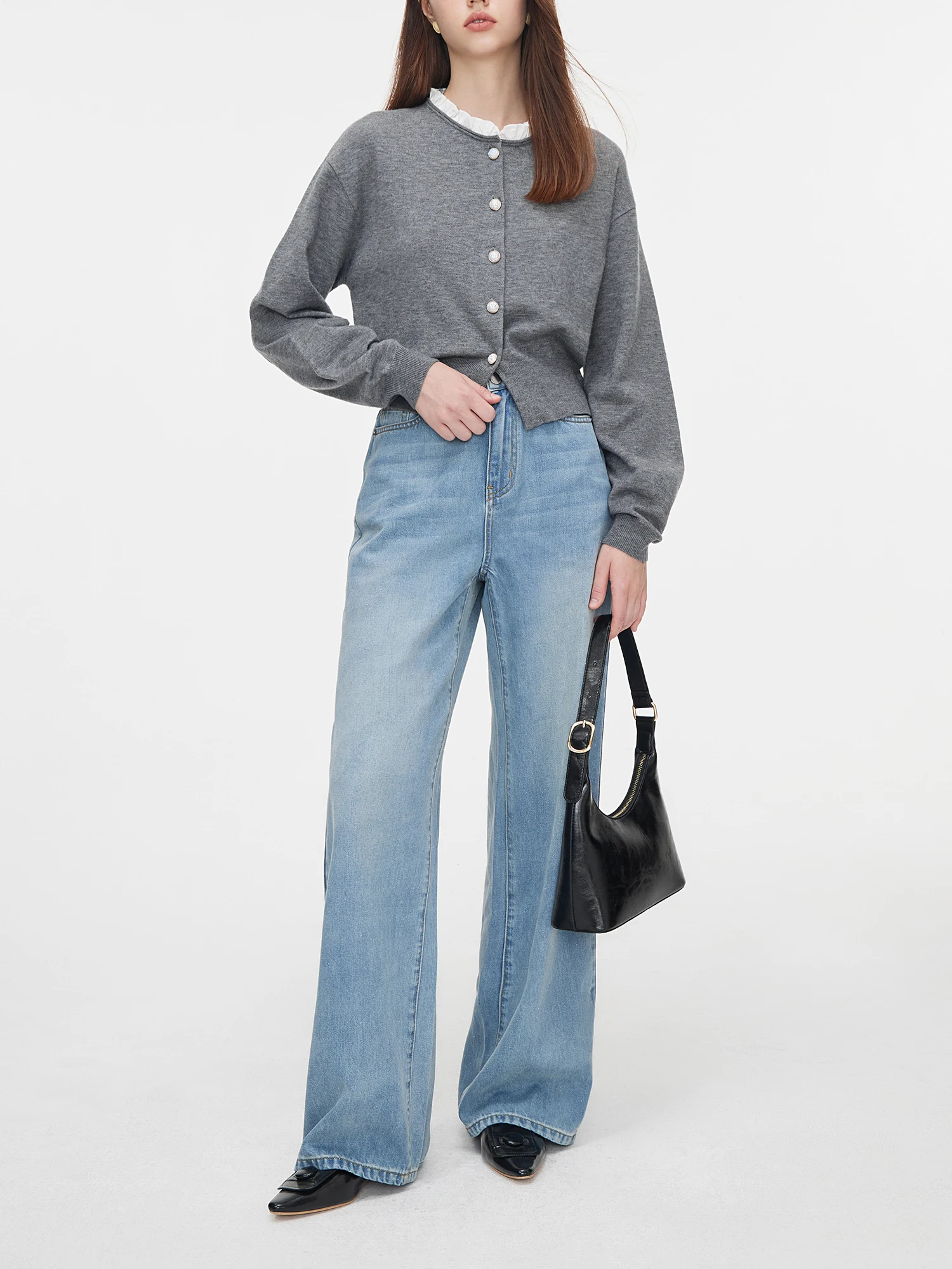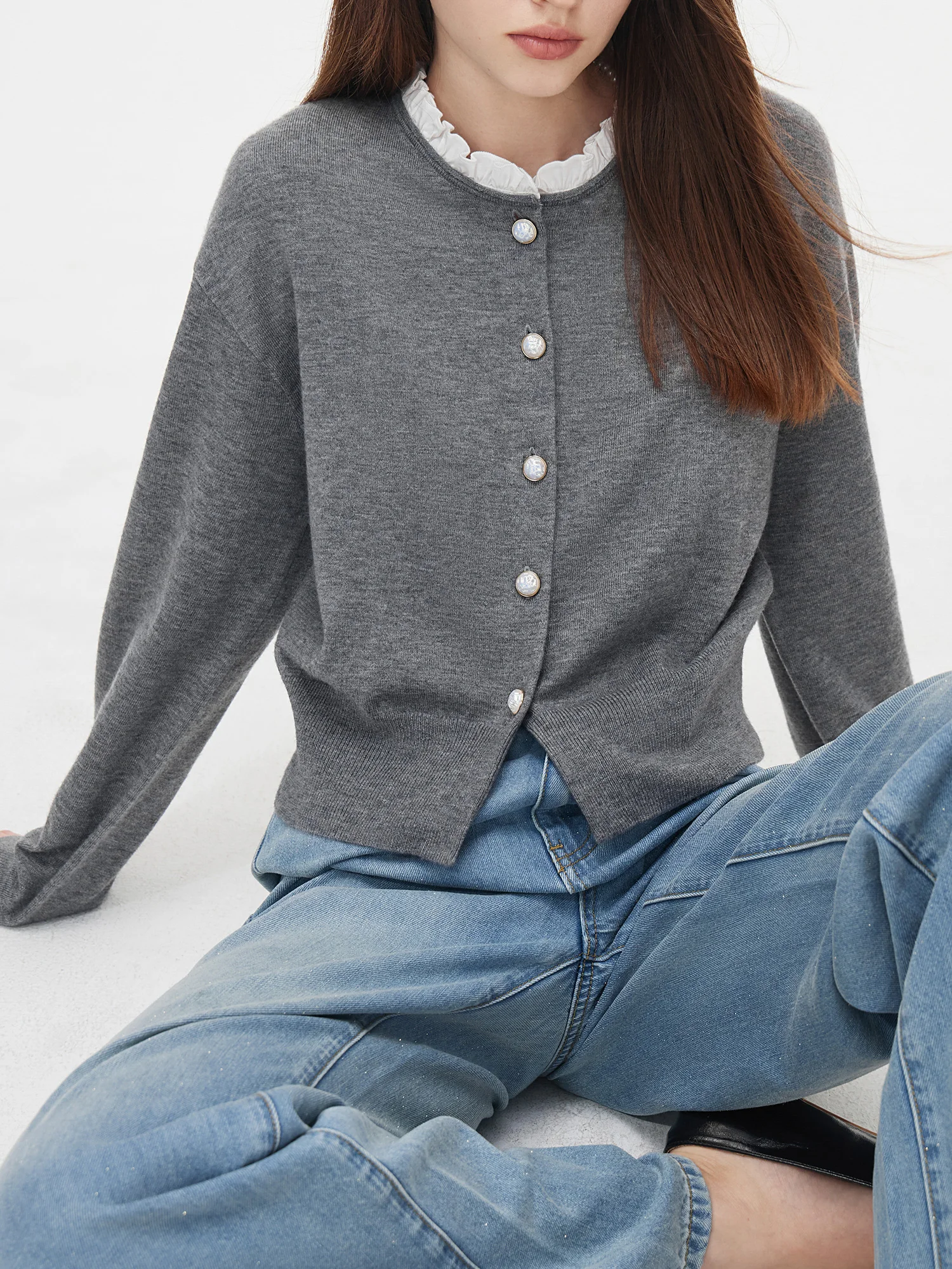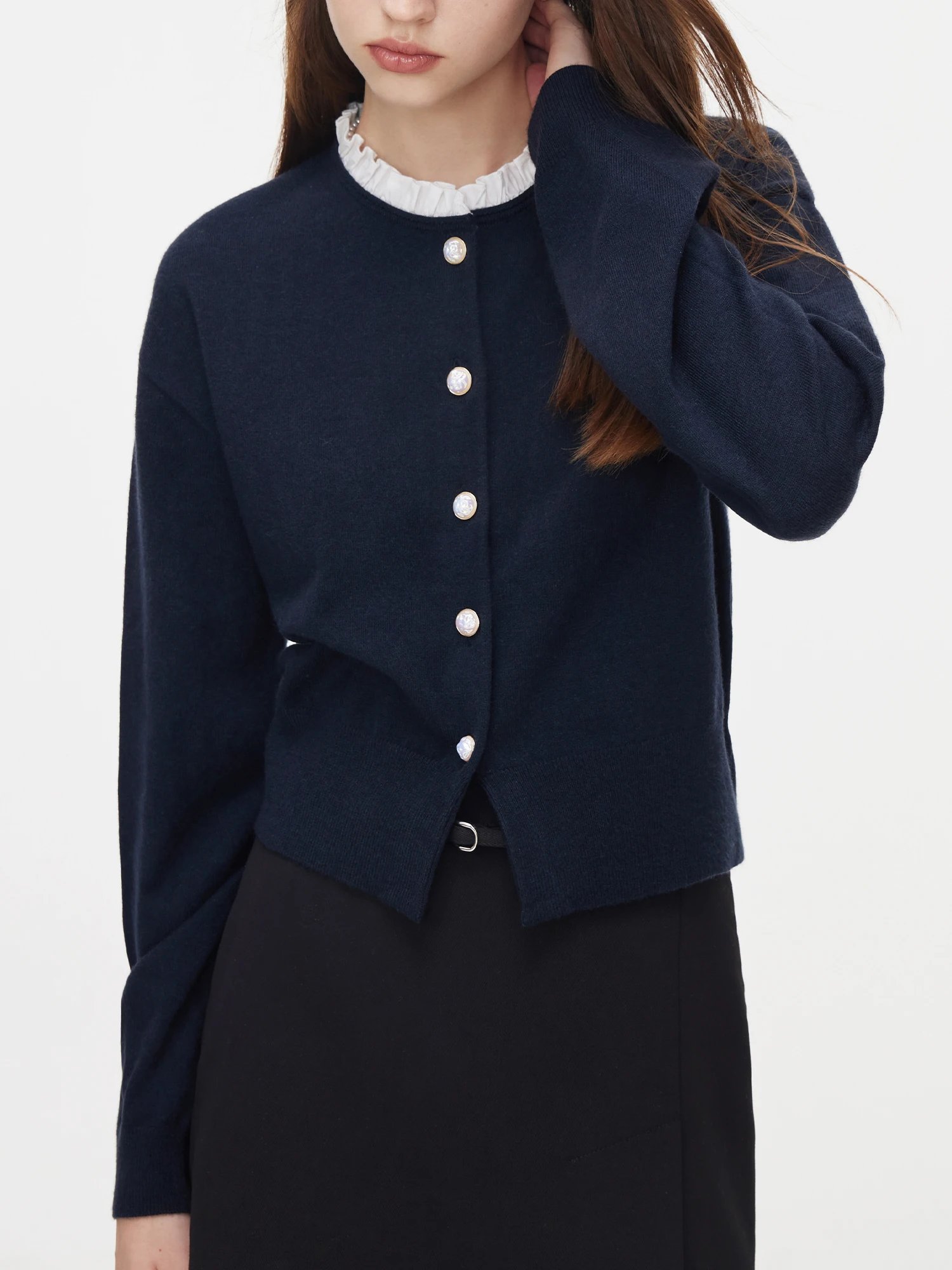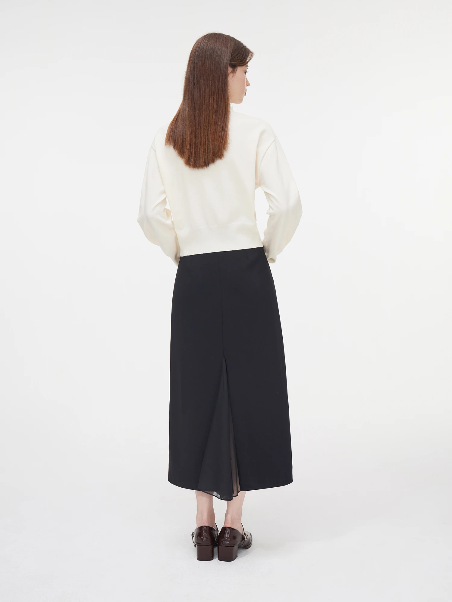 FSLE【3 Colors】Women Sweater Cardigan Patchwork Neckline Design Office Lady Autumn Knitted Single Breasted Cardigan Top 24FS13119