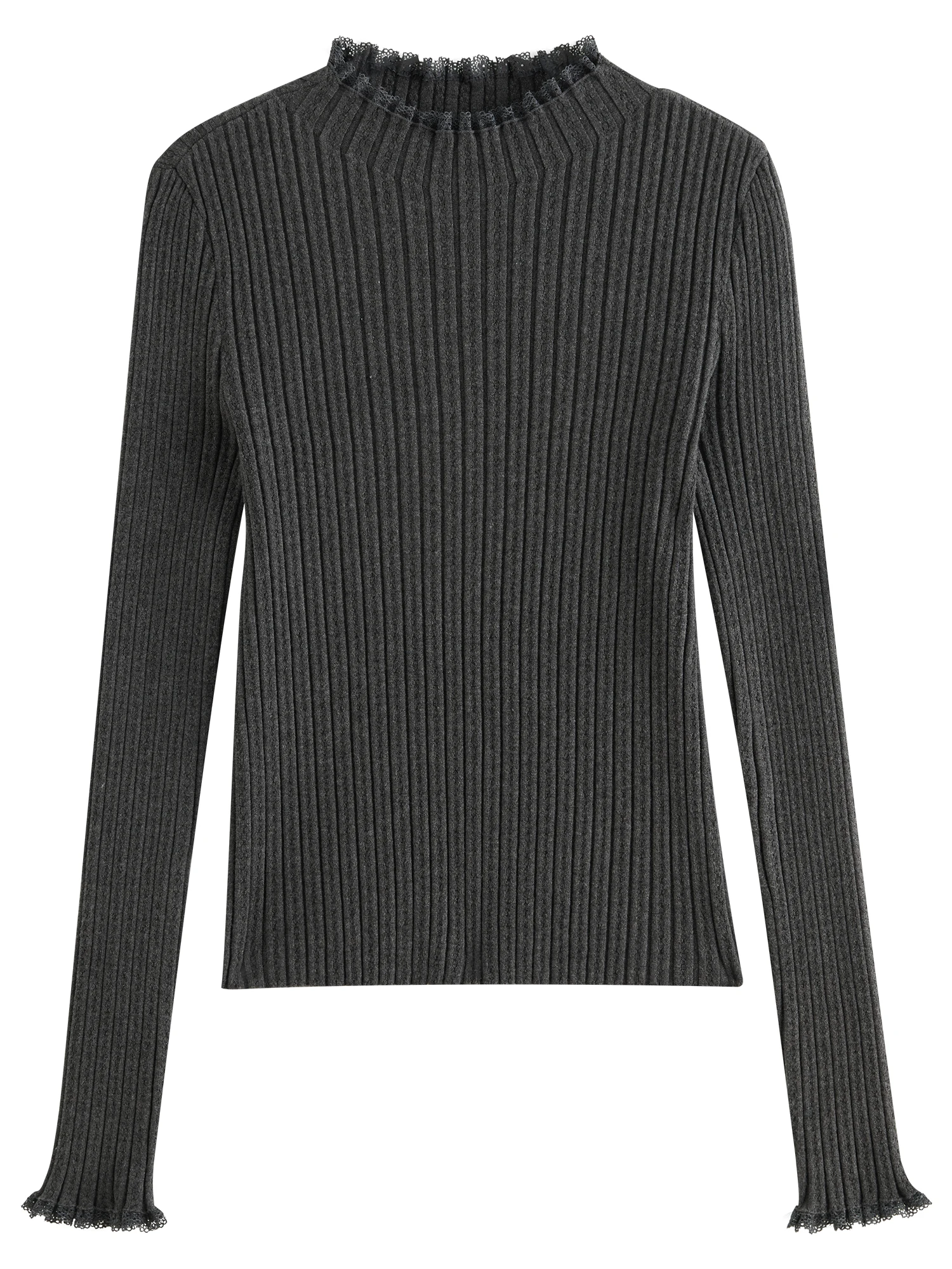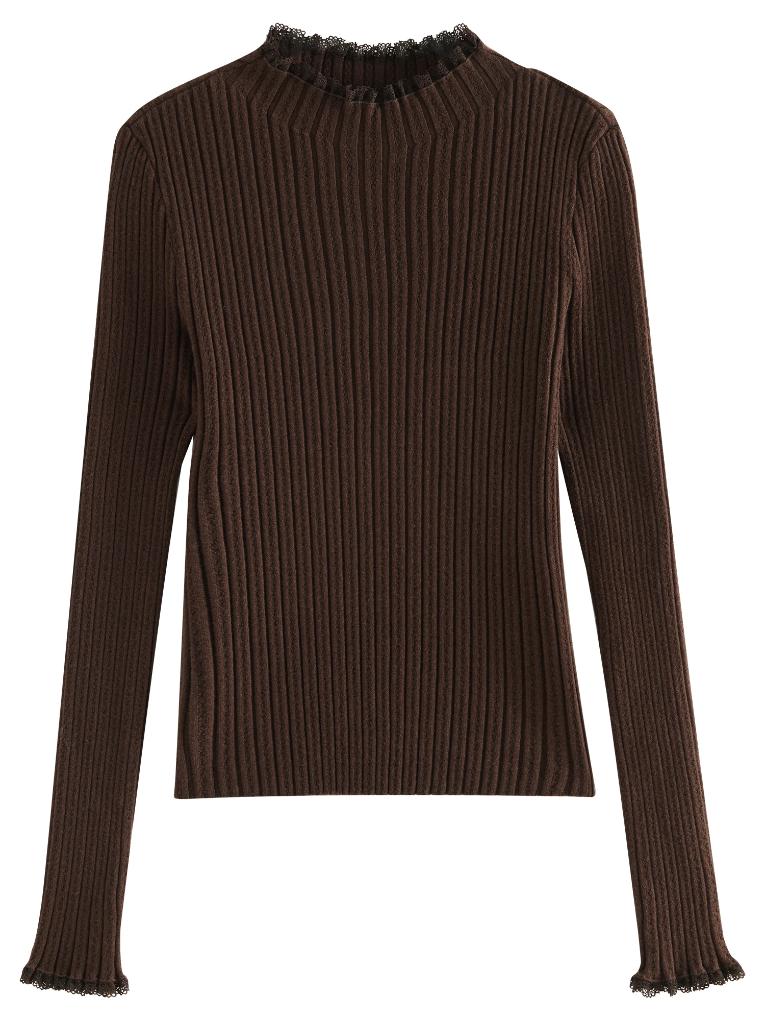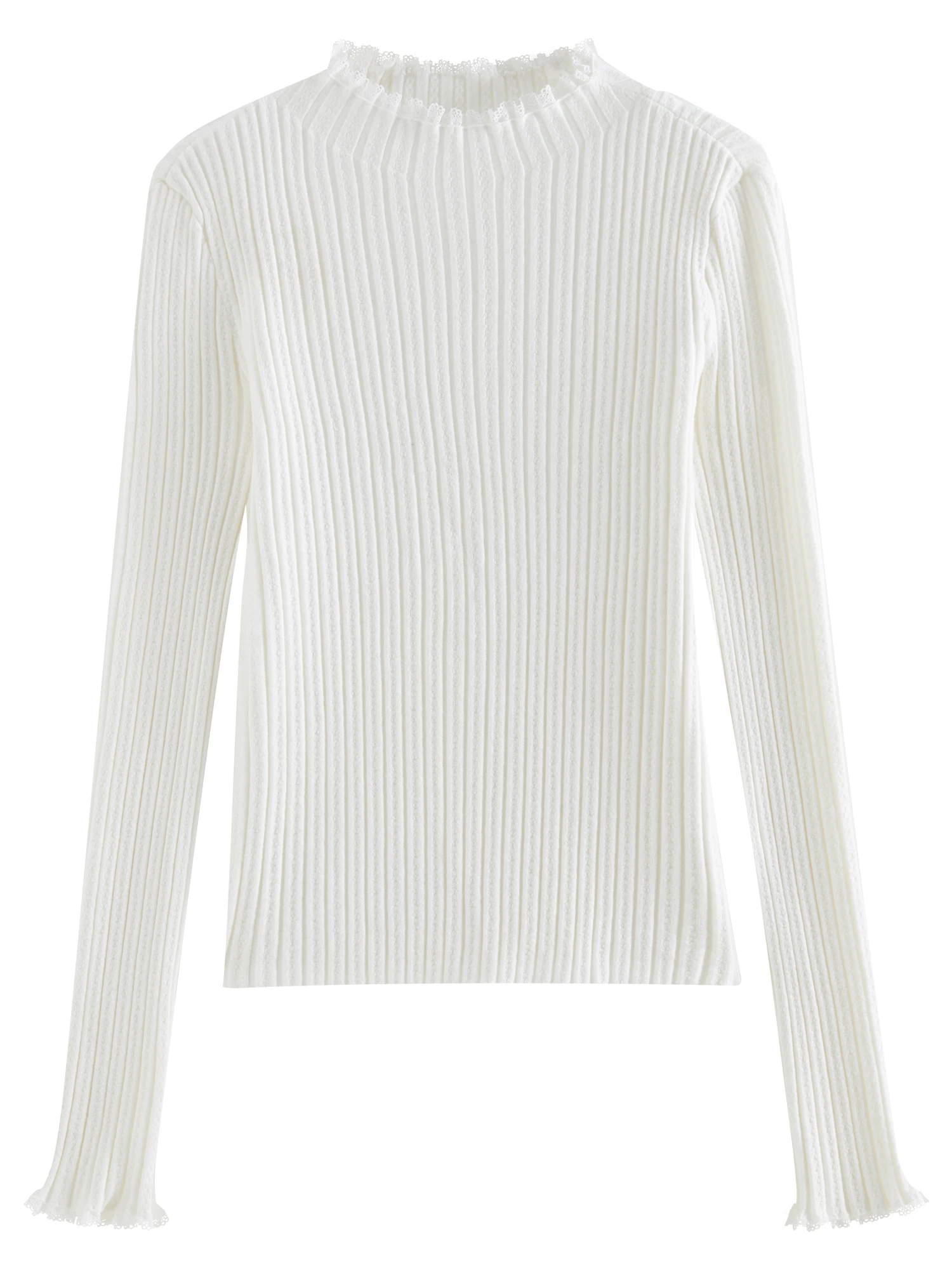 FSLE 4 Color Lace Mock Neck Knitted Bottoming Chic Shirt Pullover Female Fall Winter 2024 New Casual Elegant Sweater 24FS14113