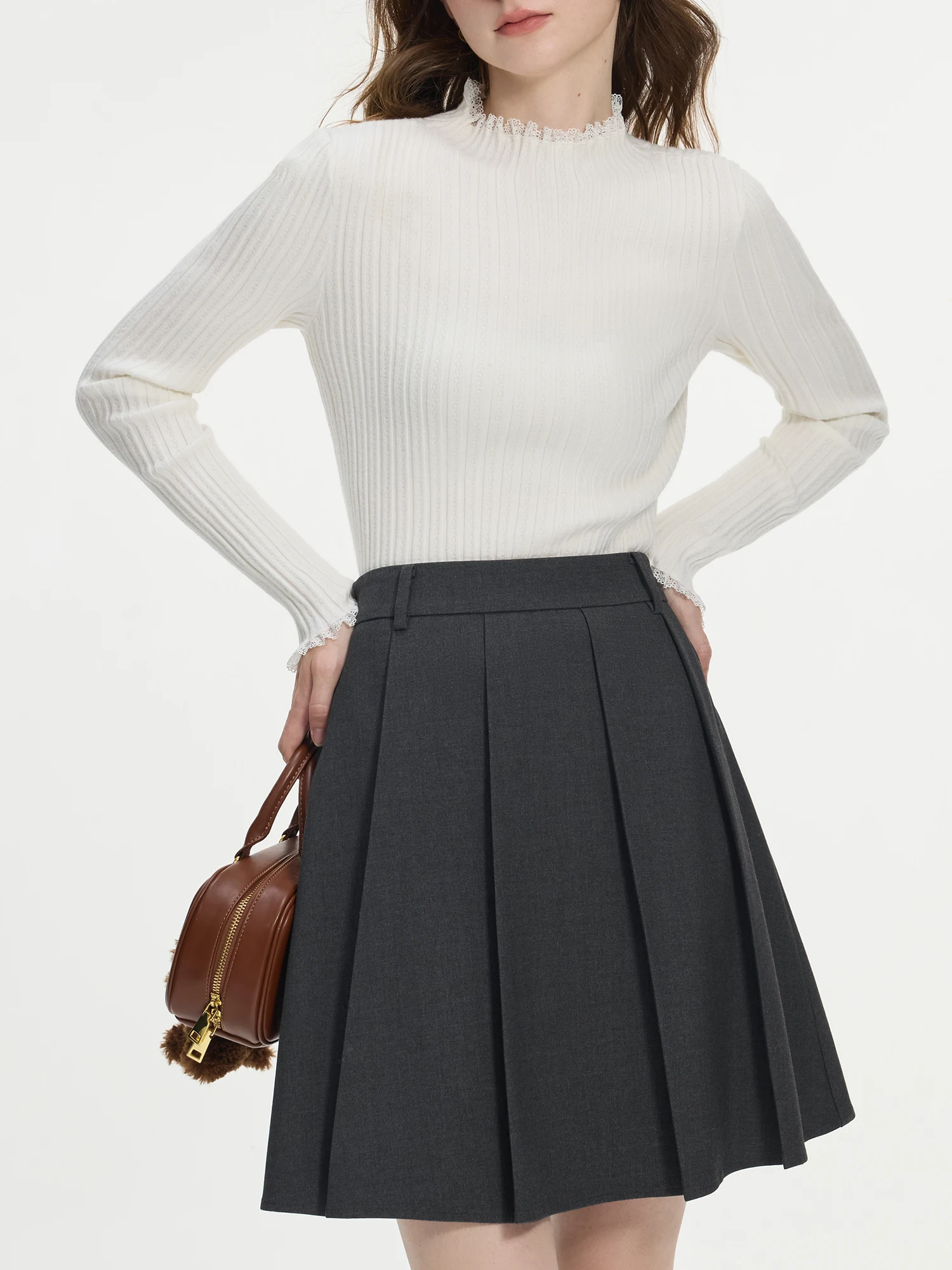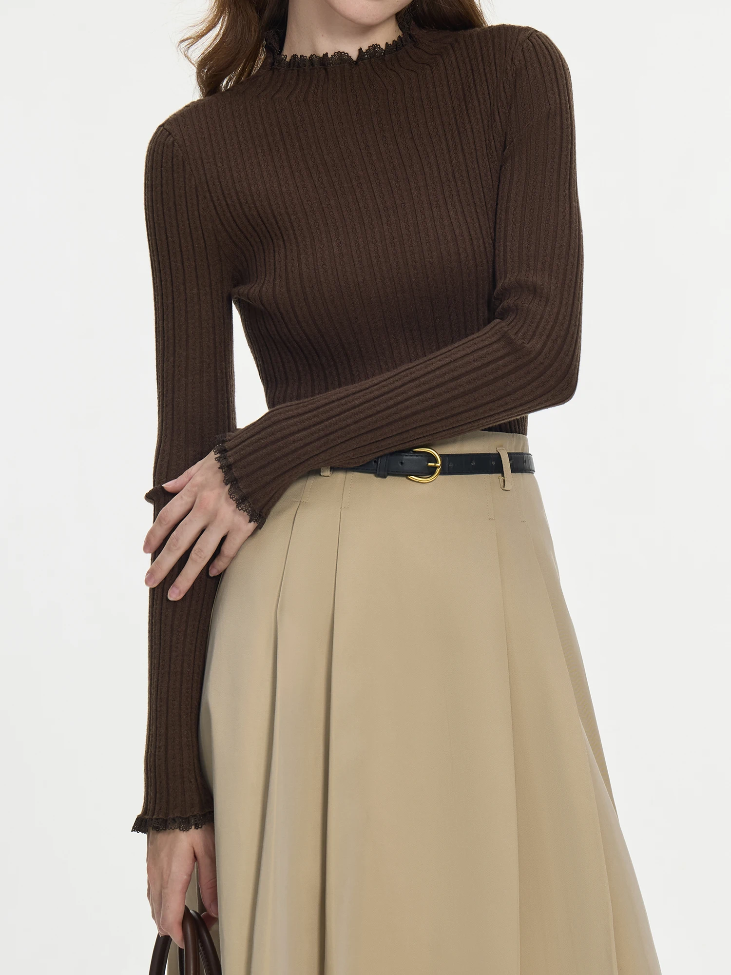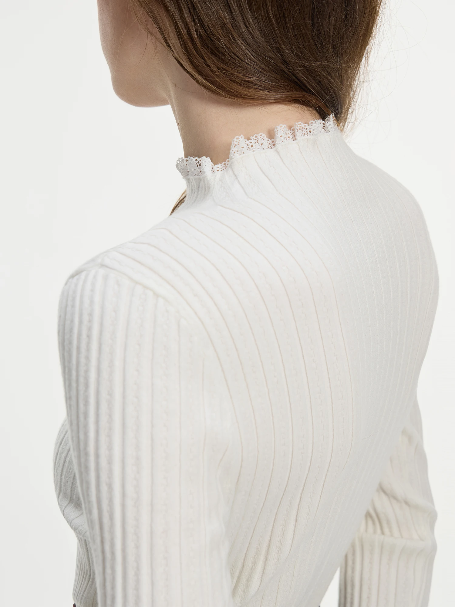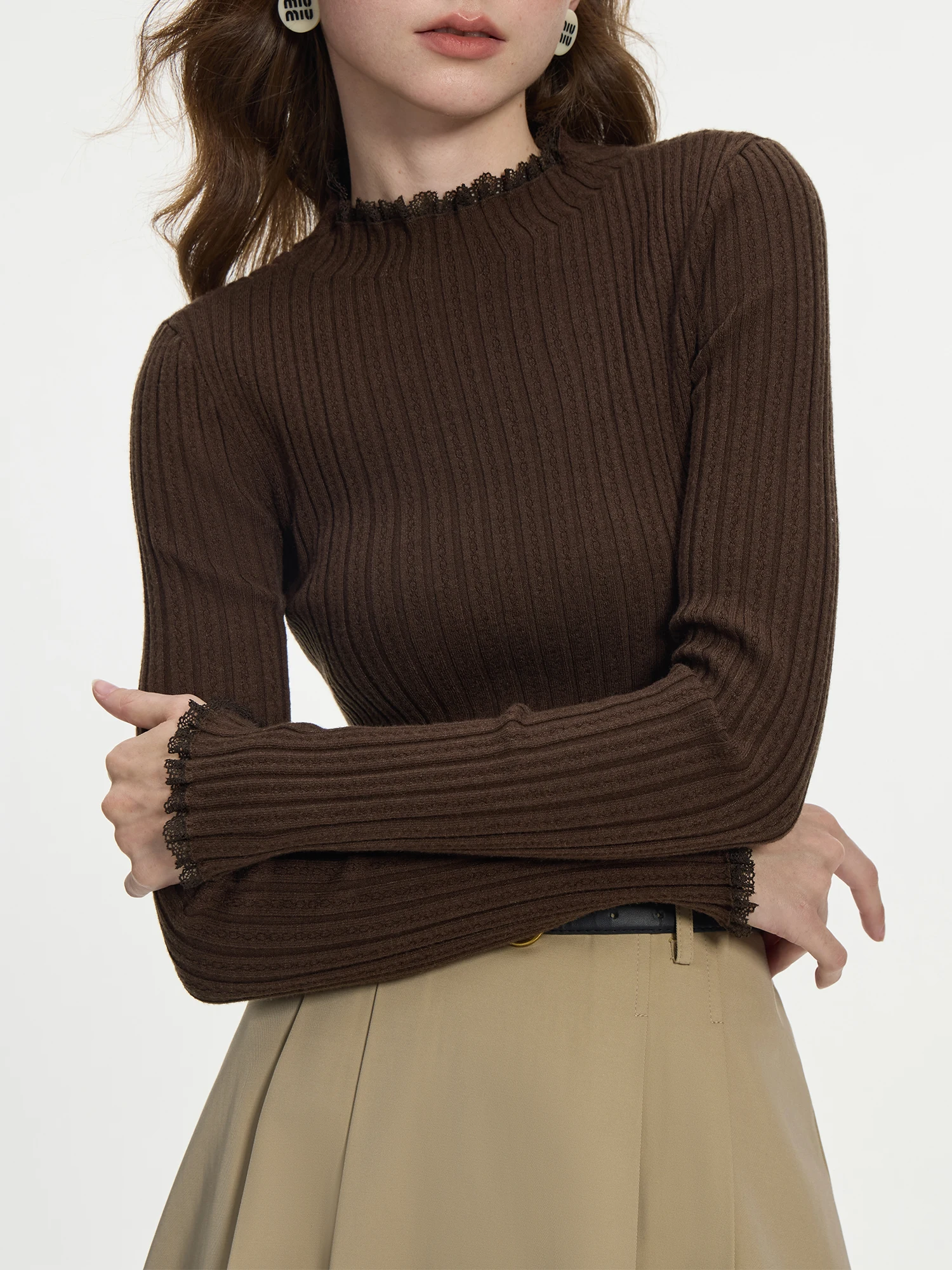 FSLE 4 Color Lace Mock Neck Knitted Bottoming Chic Shirt Pullover Female Fall Winter 2024 New Casual Elegant Sweater 24FS14113