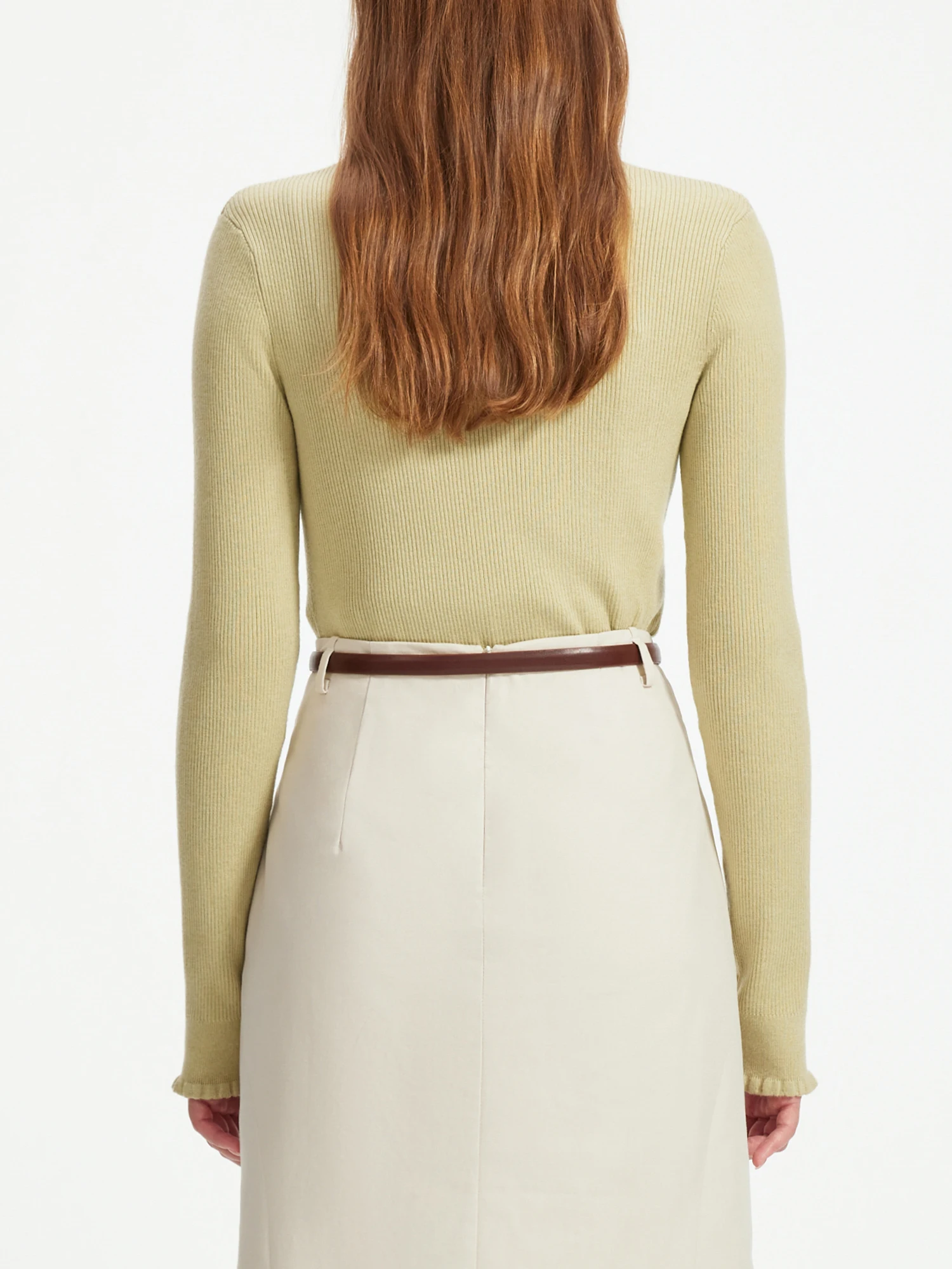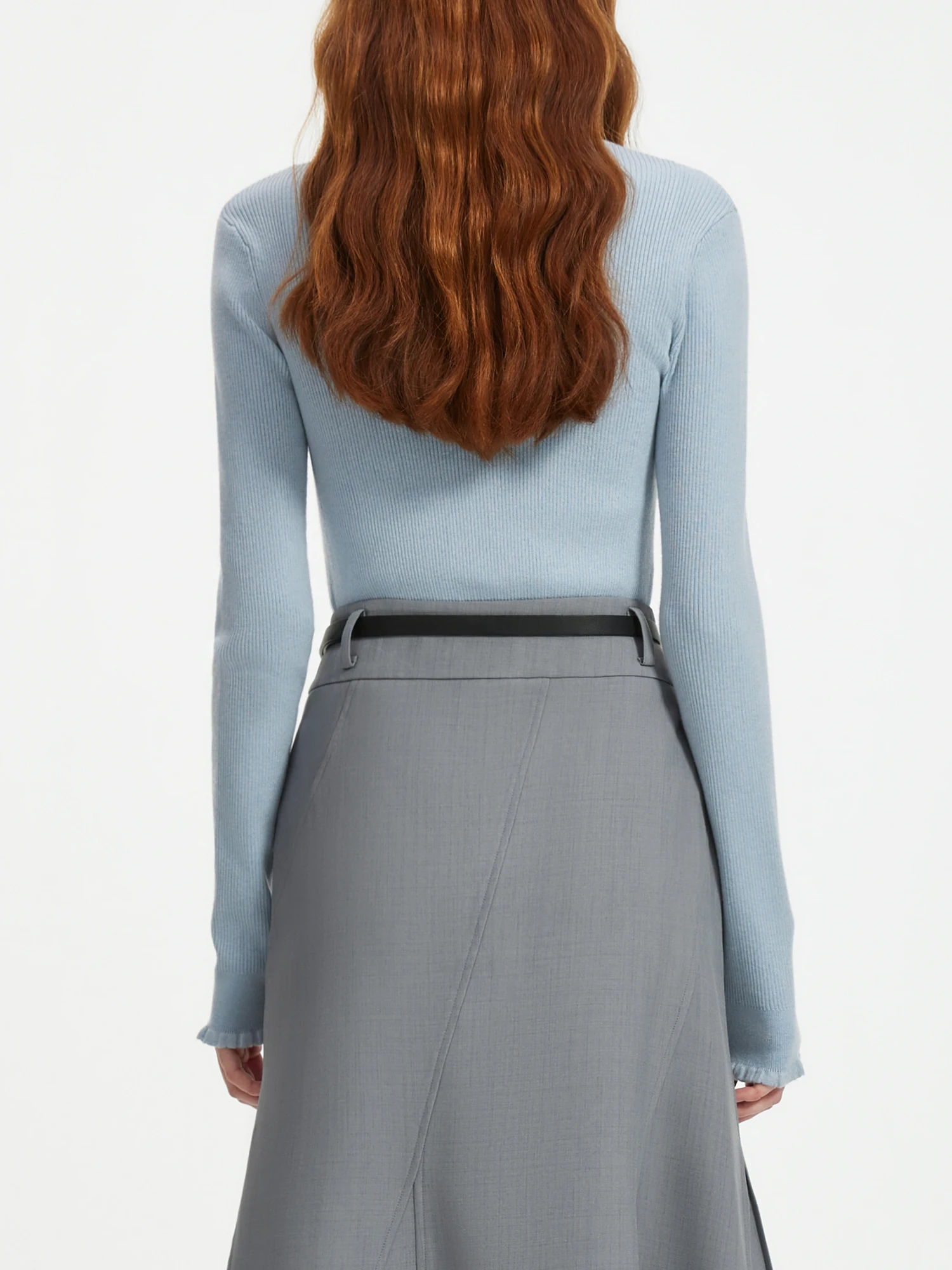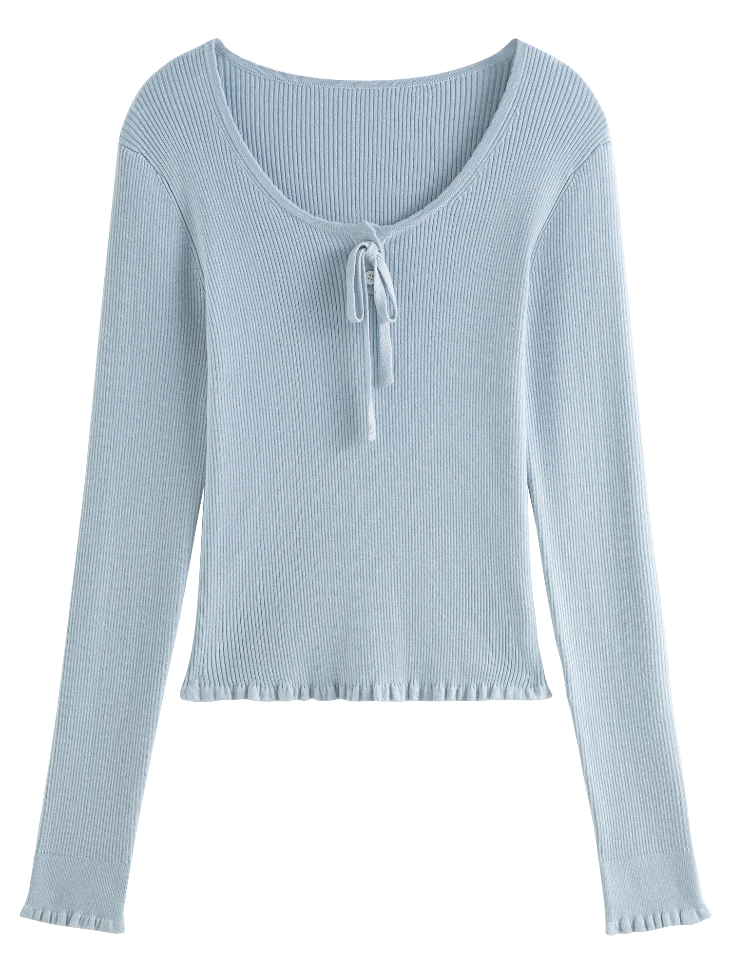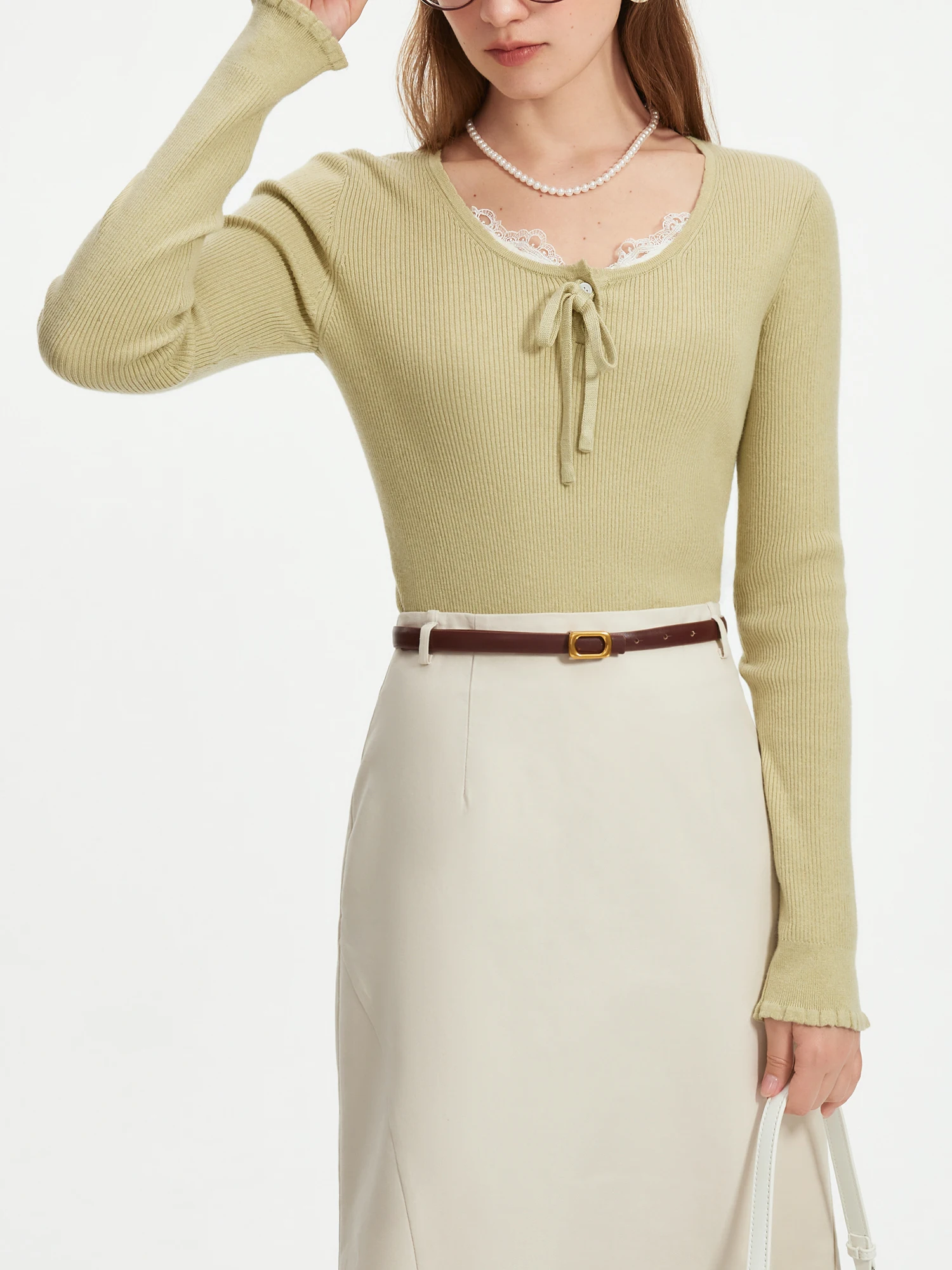 FSLE【4 Colors】Women Slim Sweater U-Neck Lace-Up Design Female Autumn New Black Commuter Knitted 3.9 % Wool Tops 24FS13262