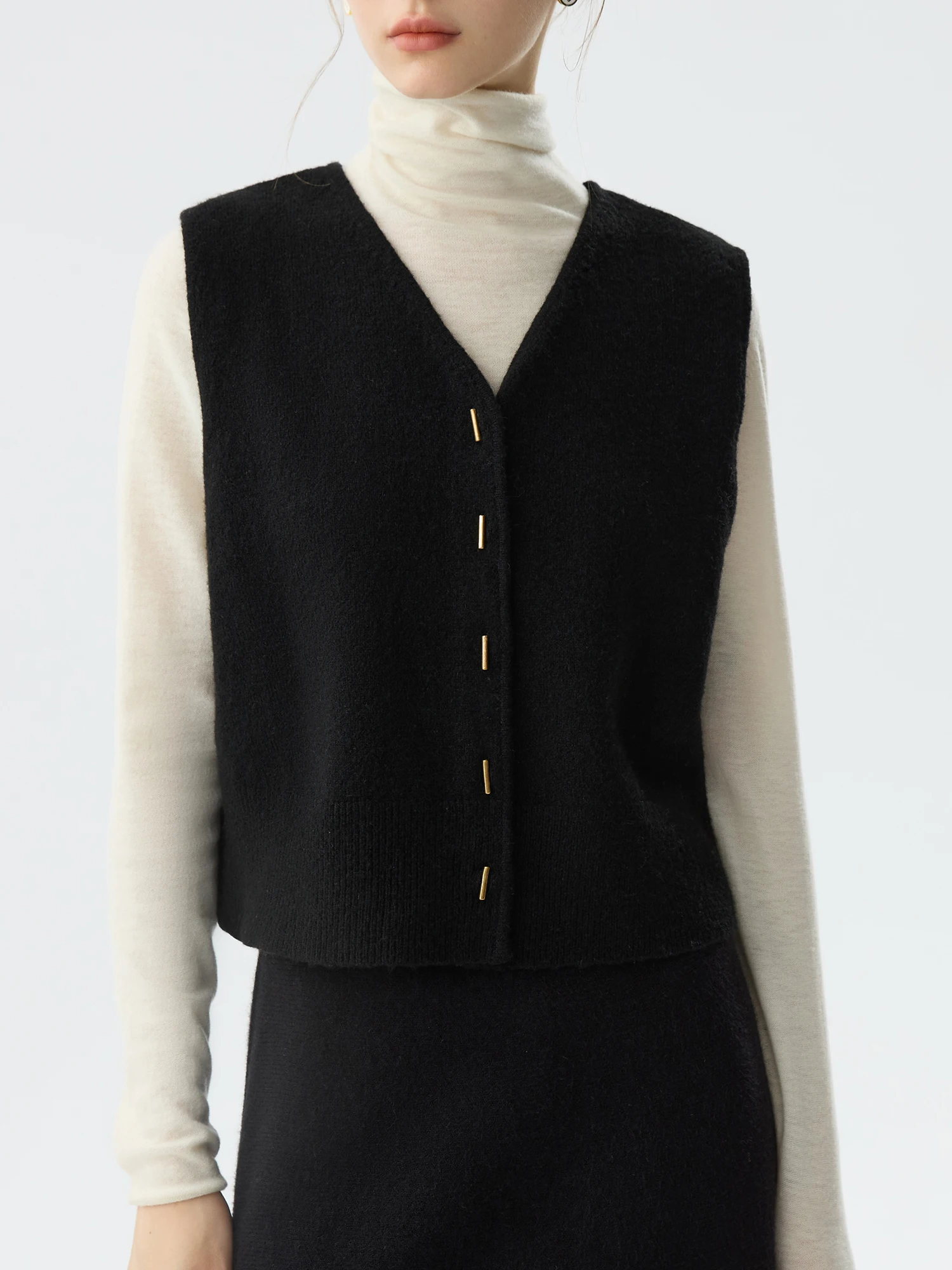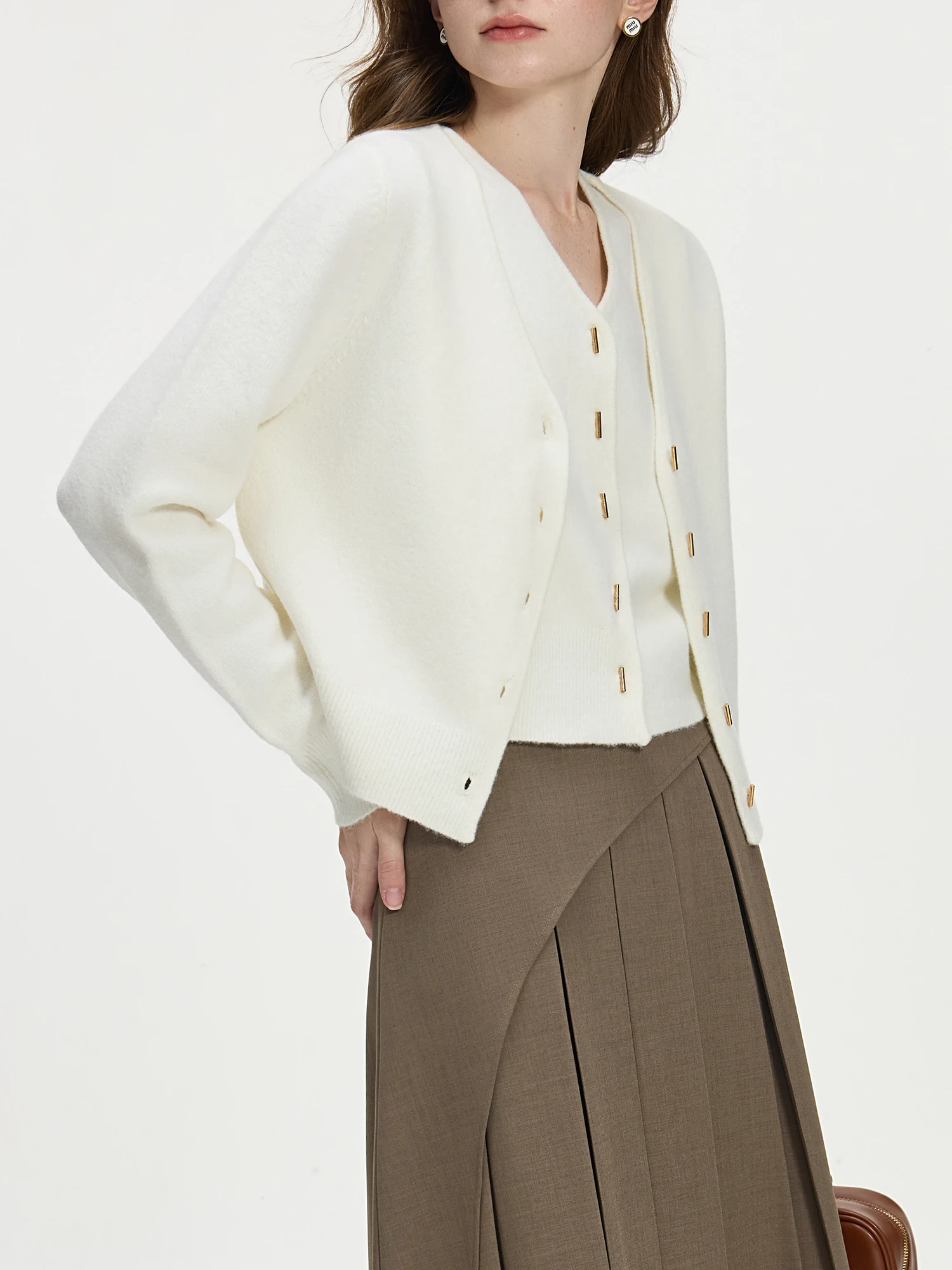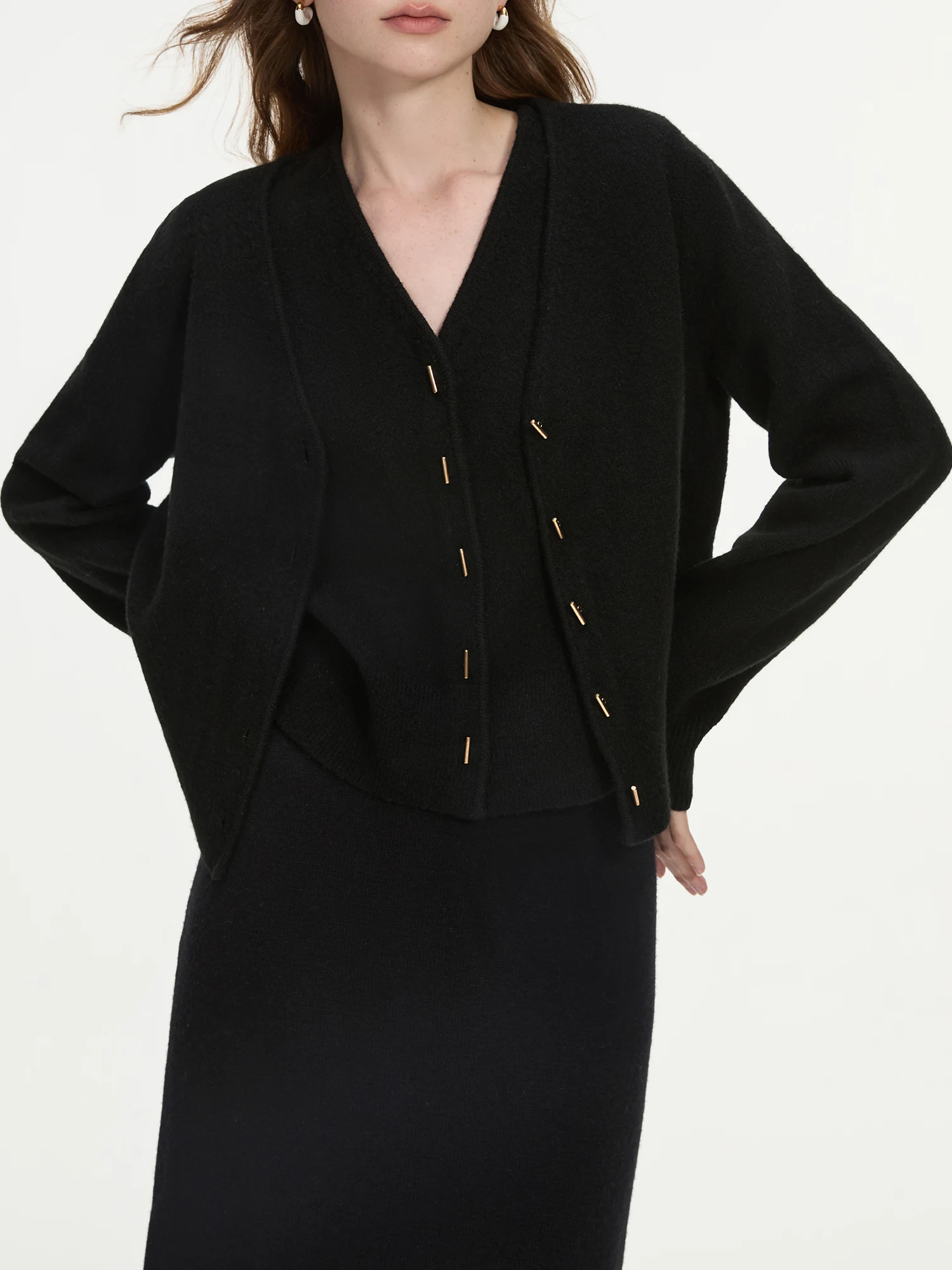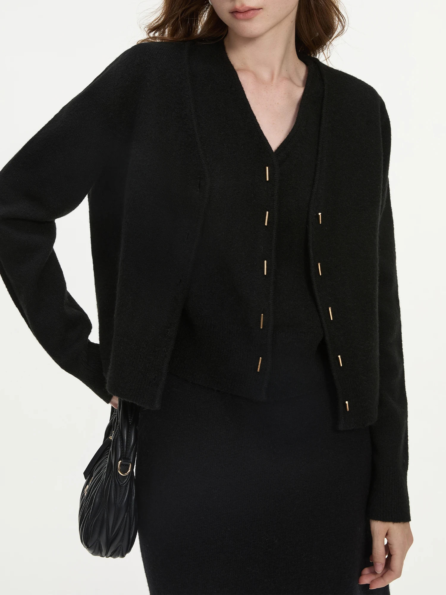 FSLE 7.3% Wool V-Neck Vest Cardigan Two Pieces Set For Women 2024 Autumn Winter New Loose Knit Warm Chic Top 24FS14187+24FS14230