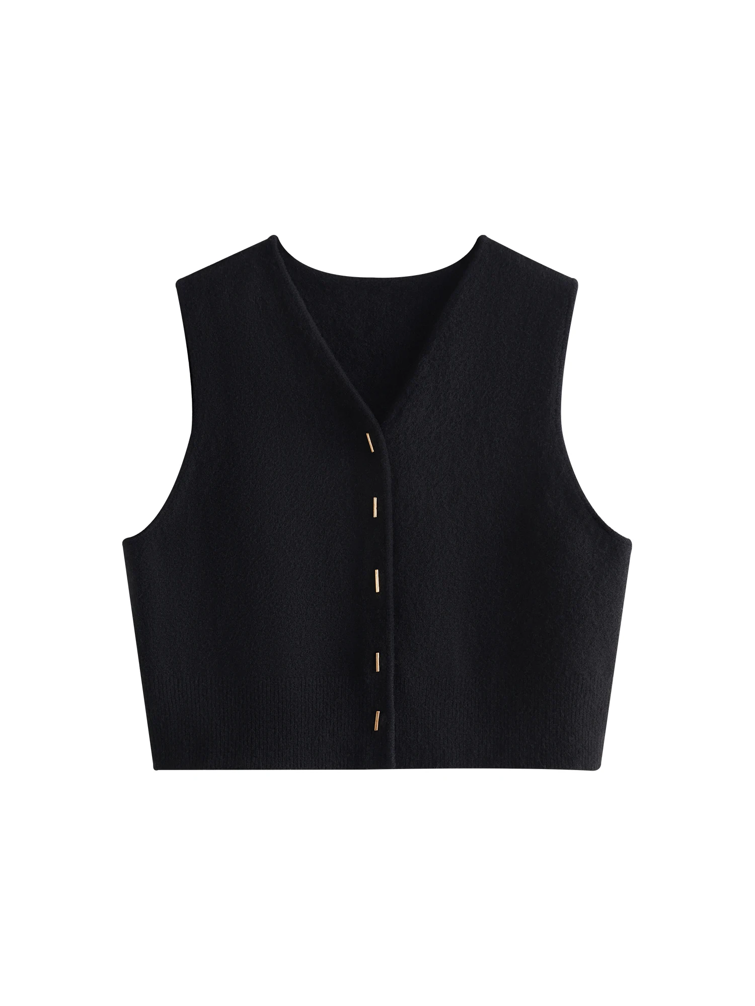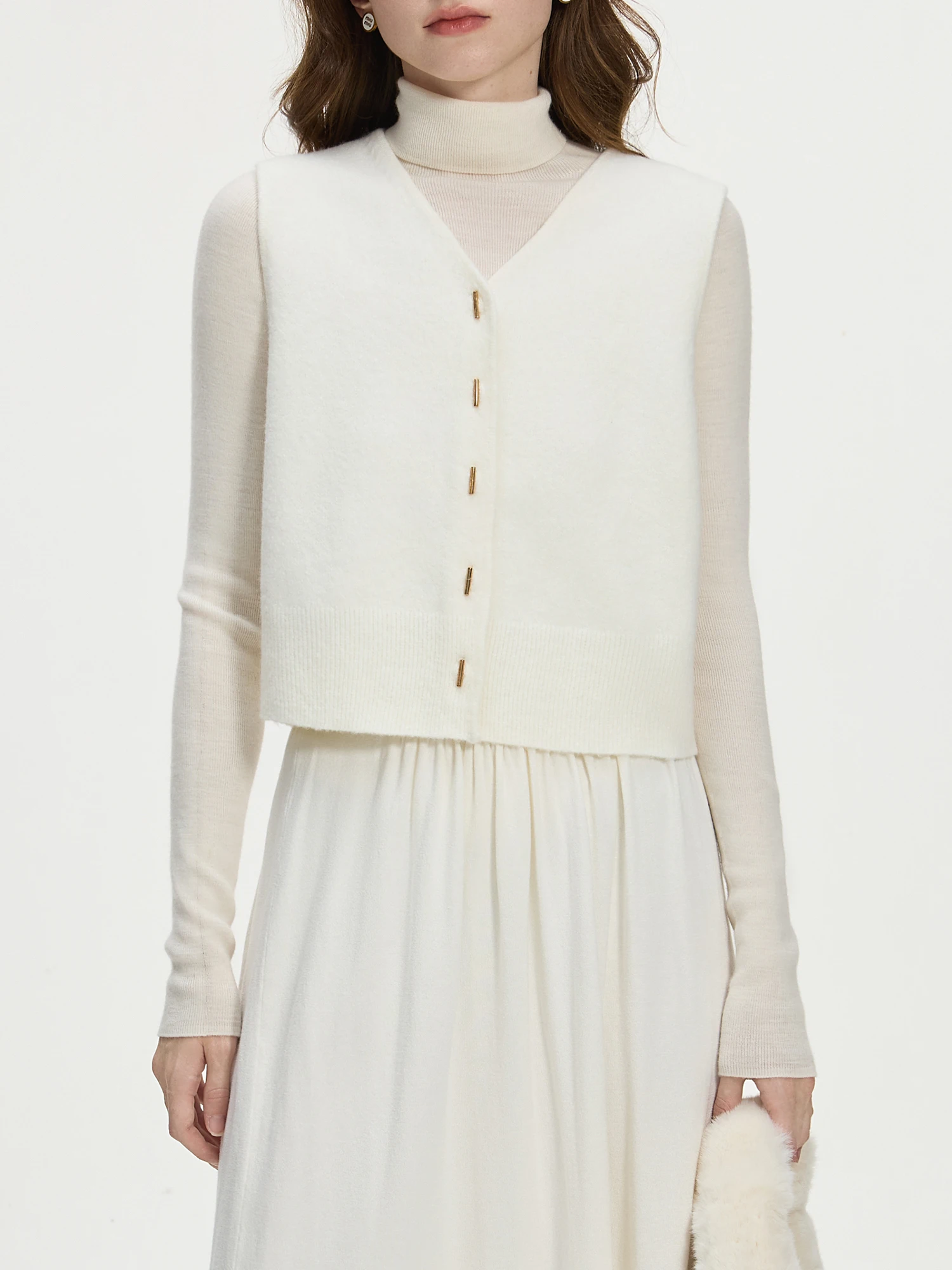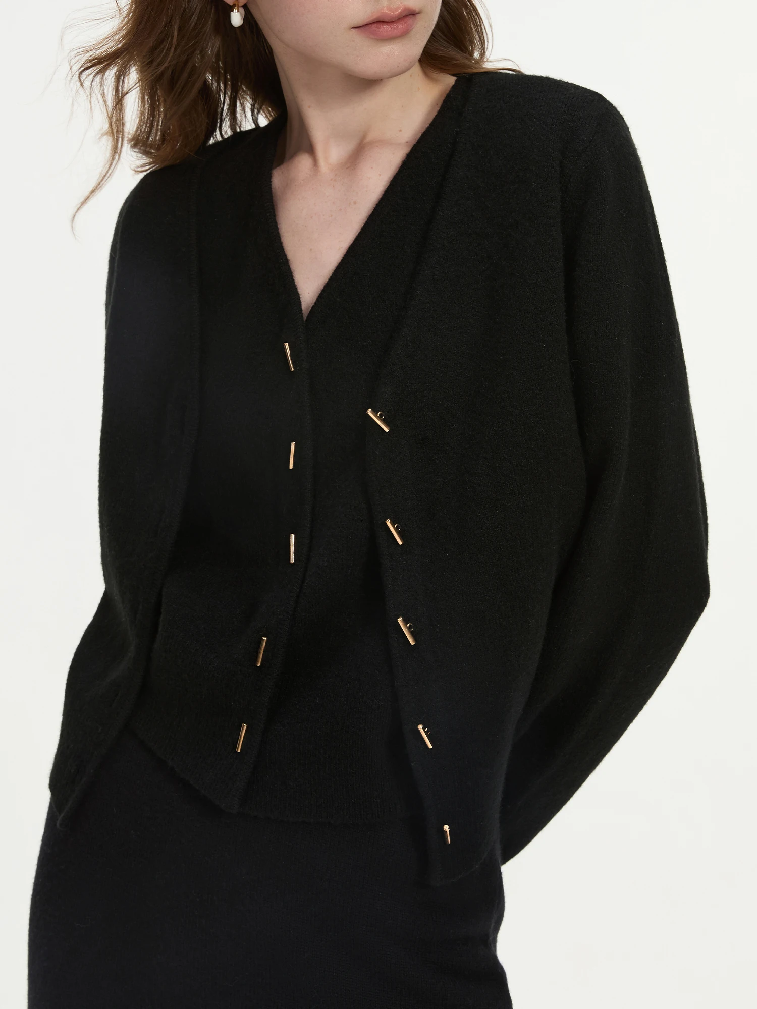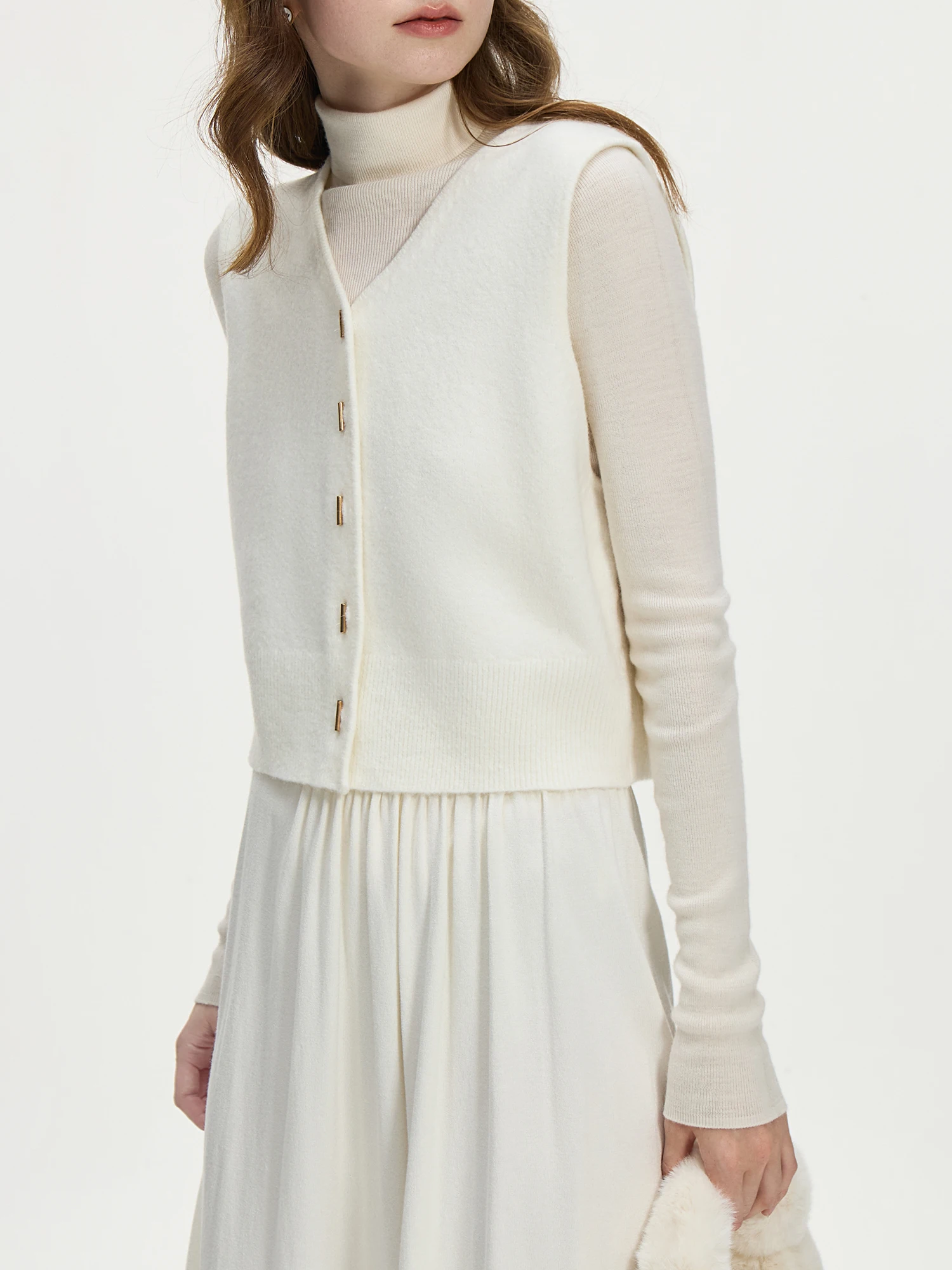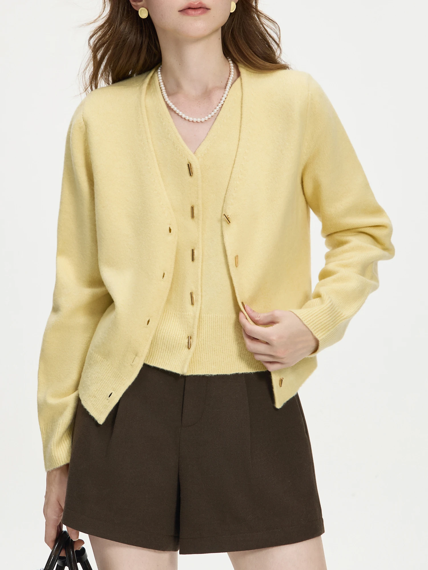 FSLE 7.3% Wool V-Neck Vest Cardigan Two Pieces Set For Women 2024 Autumn Winter New Loose Knit Warm Chic Top 24FS14187+24FS14230
