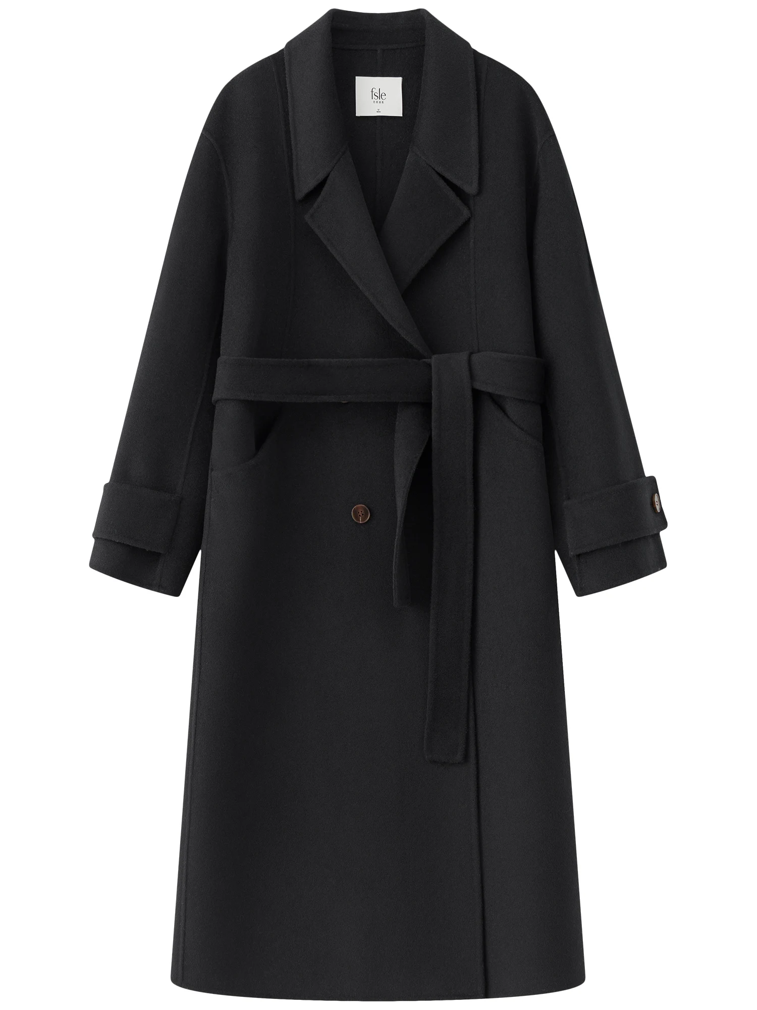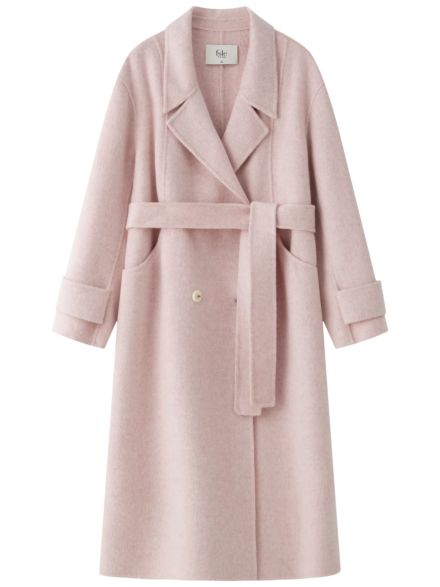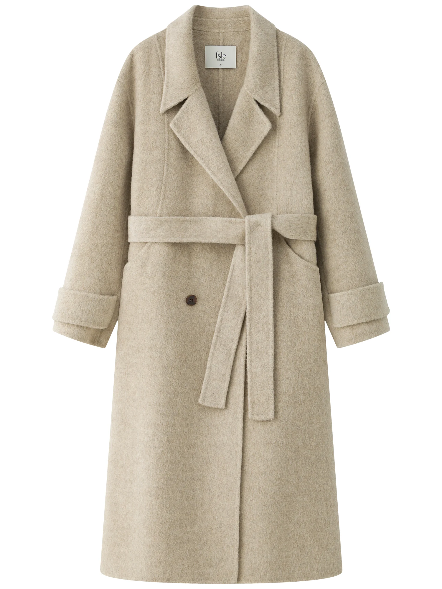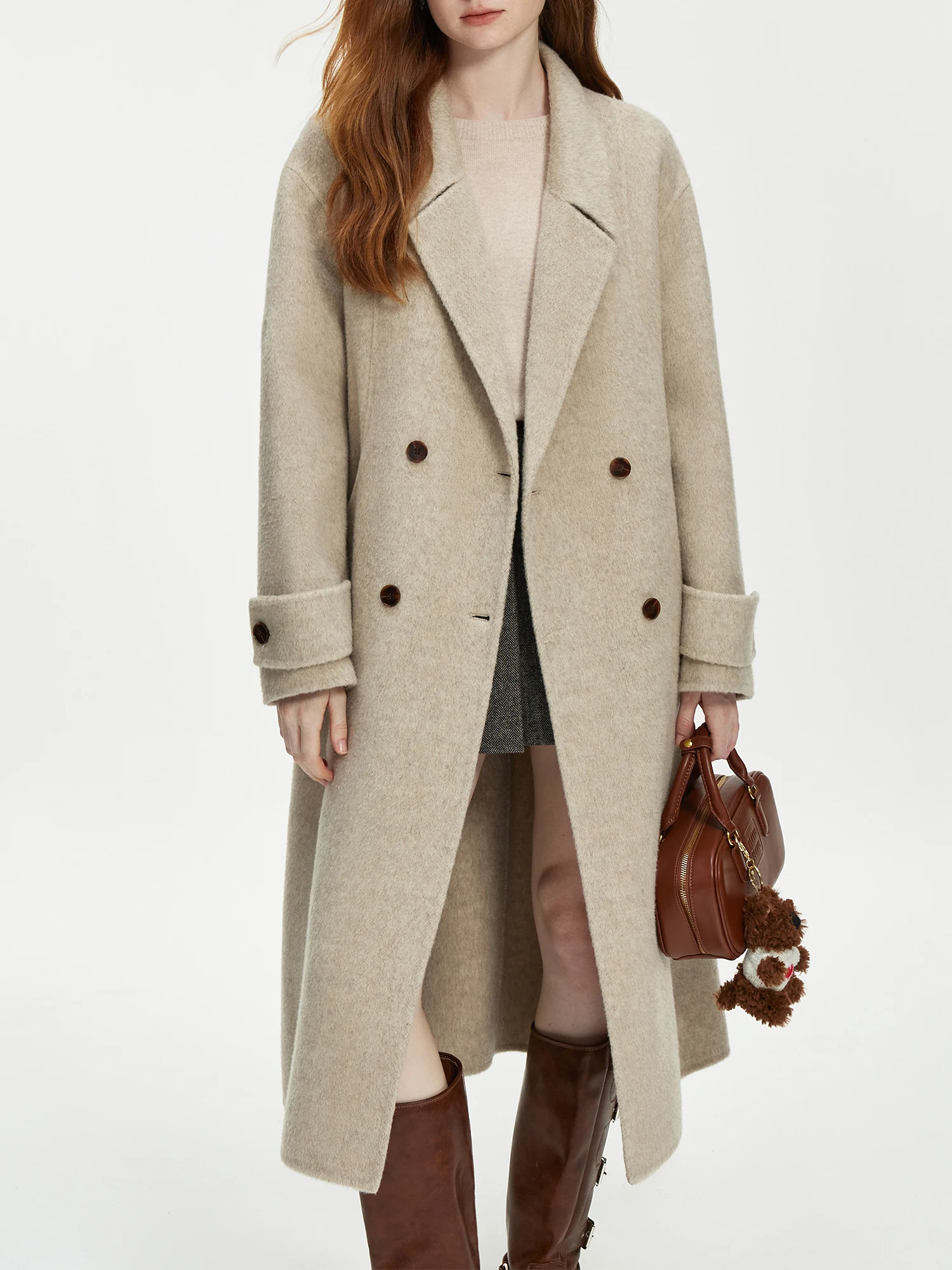FSLE 94.7%-100% Sheep Wool Camel Hair Long Coat For Women 2024 Winter New Design Mid-length Tweed Warm Chic Coat 24FS14213