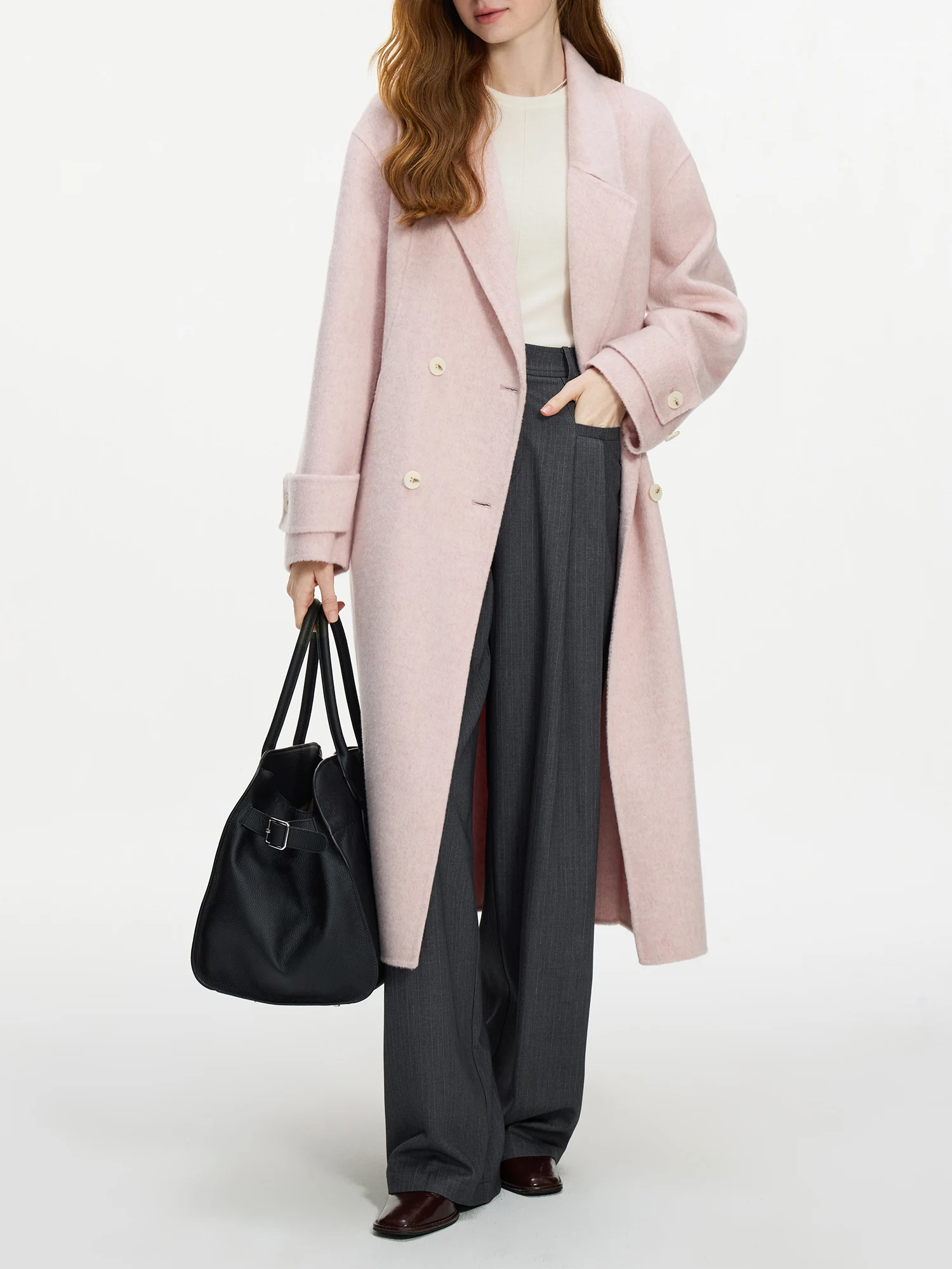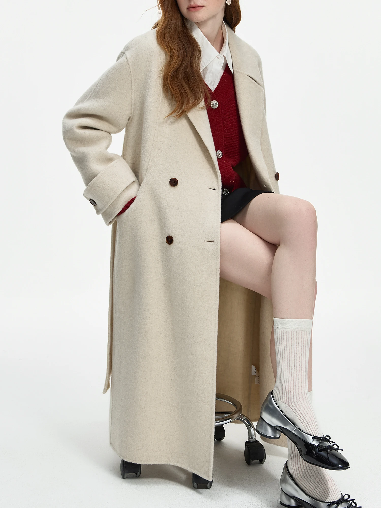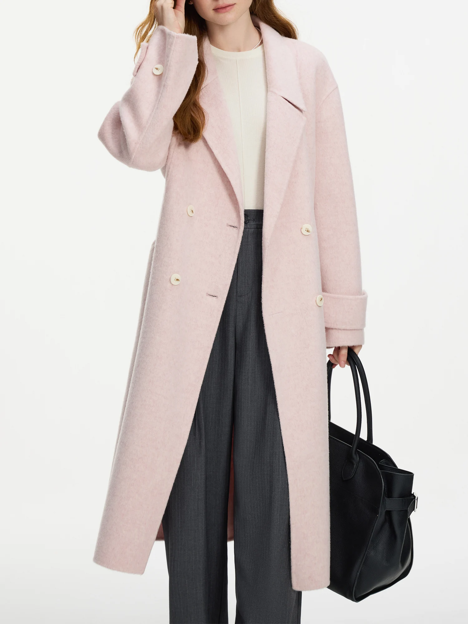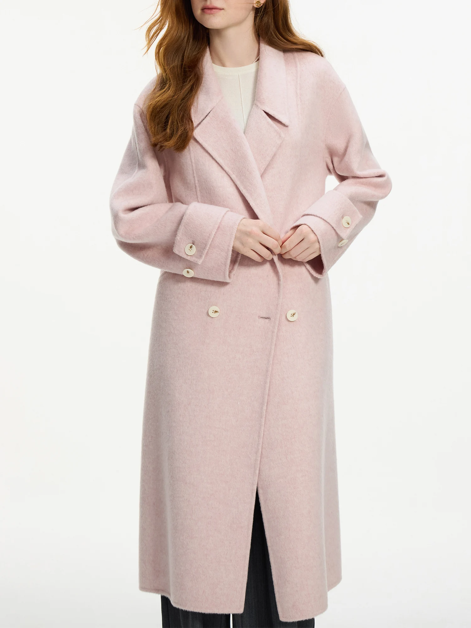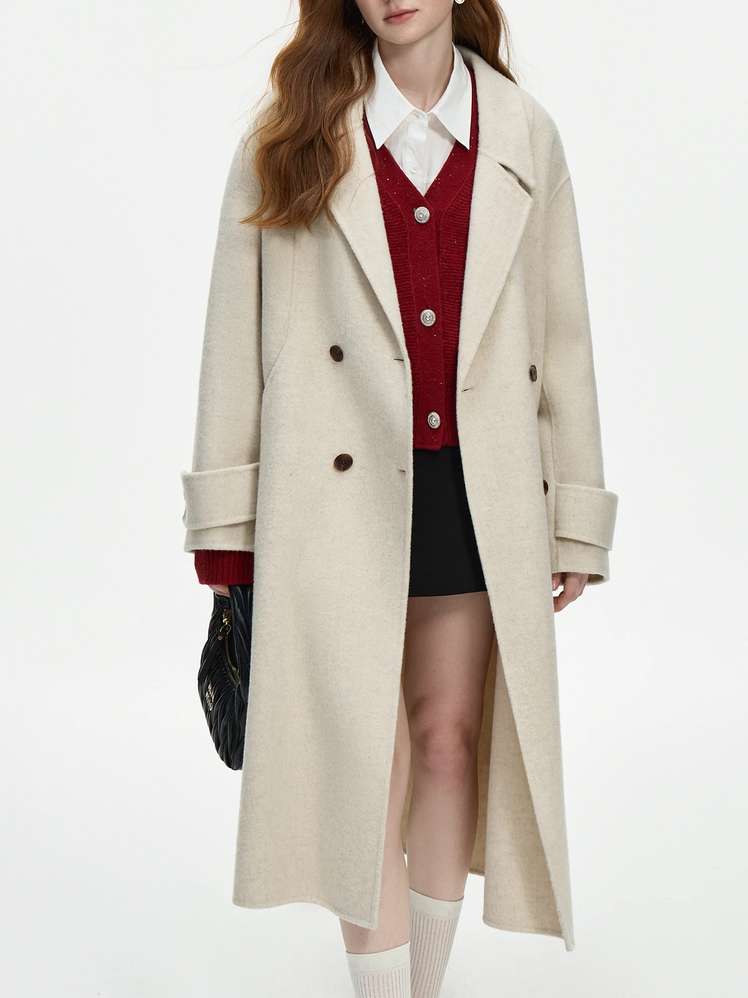 FSLE 94.7%-100% Sheep Wool Camel Hair Long Coat For Women 2024 Winter New Design Mid-length Tweed Warm Chic Coat 24FS14213