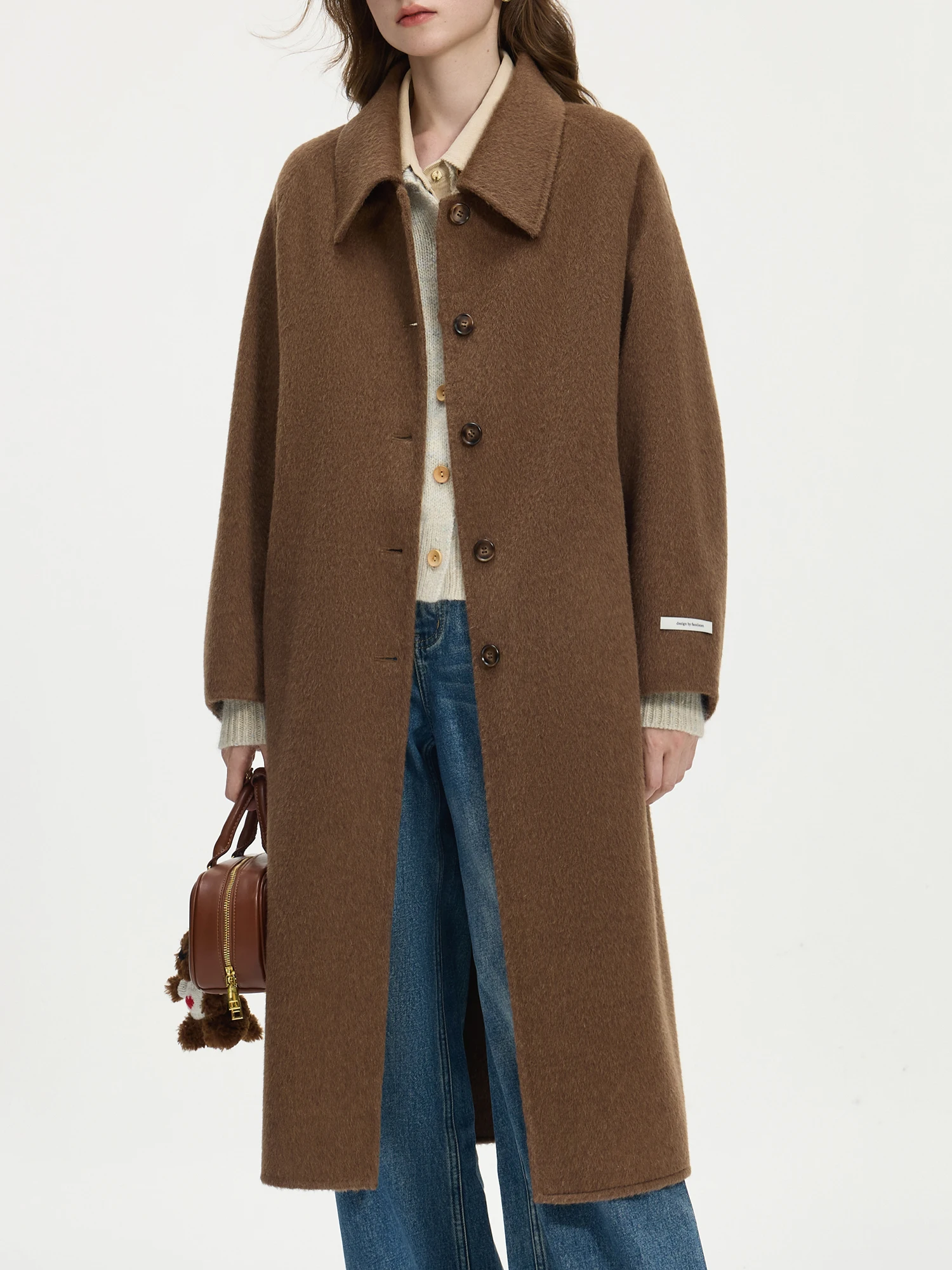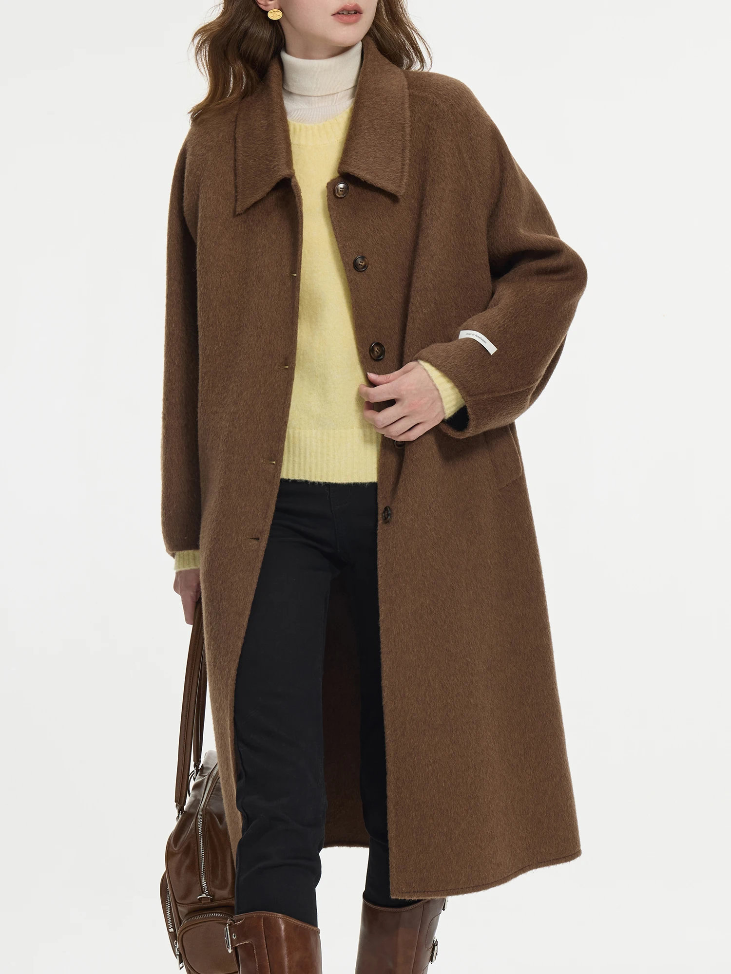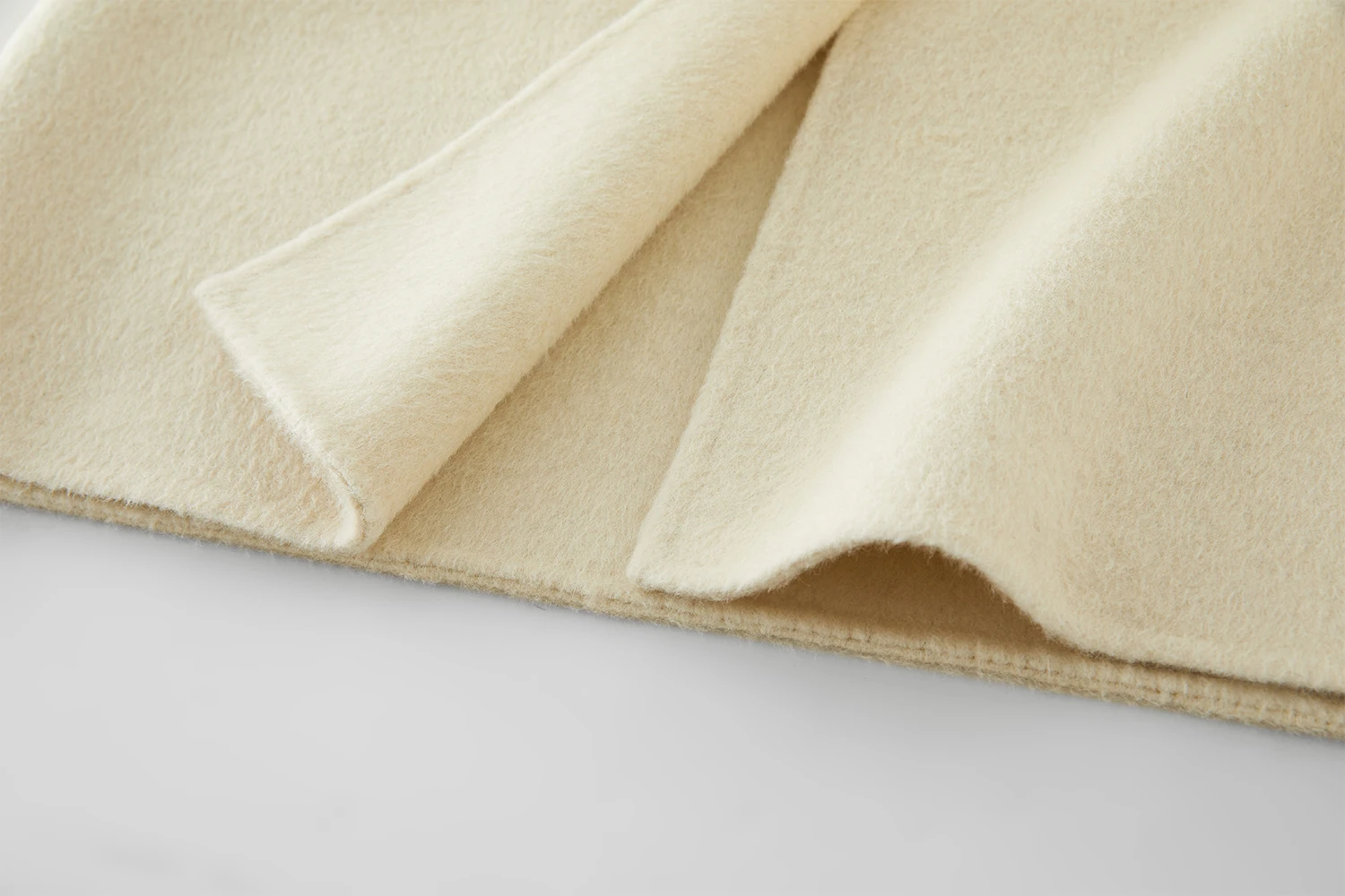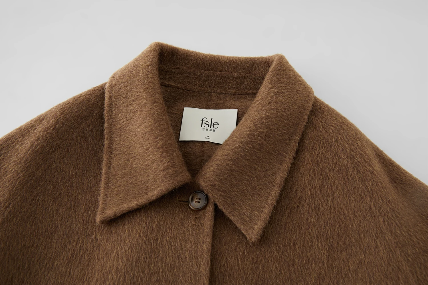 FSLE 95% Wool 5% Camel Wool Lapel Double-sided Tweed 2 Color Coat For Female Winter 2024 New Desig Warm Tweed Jacket 24FS14210