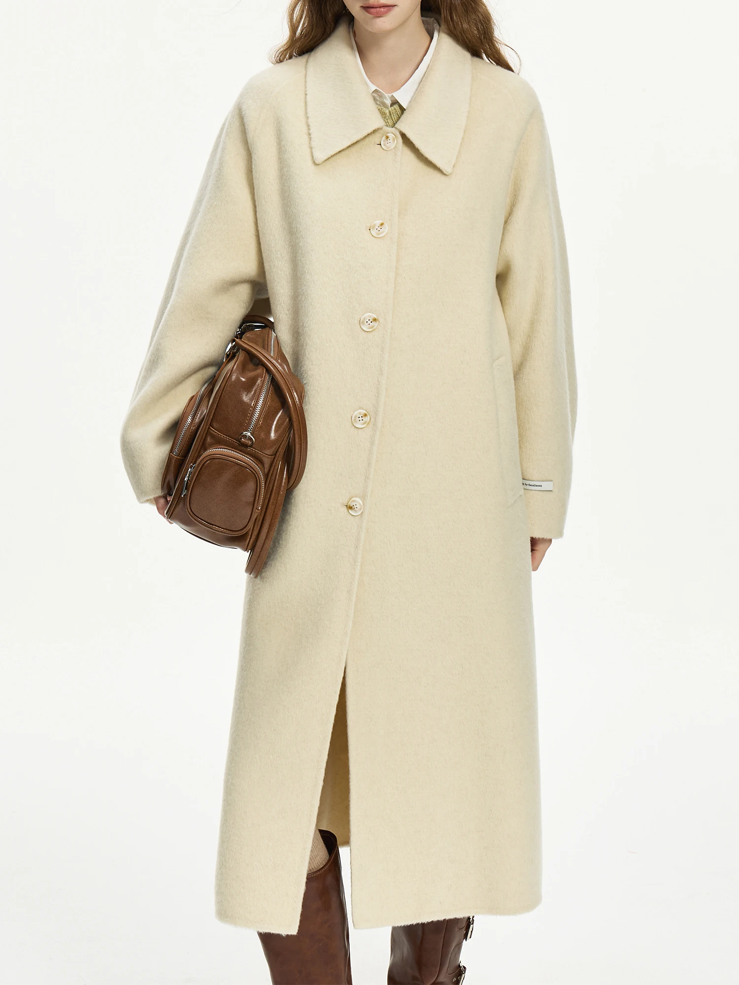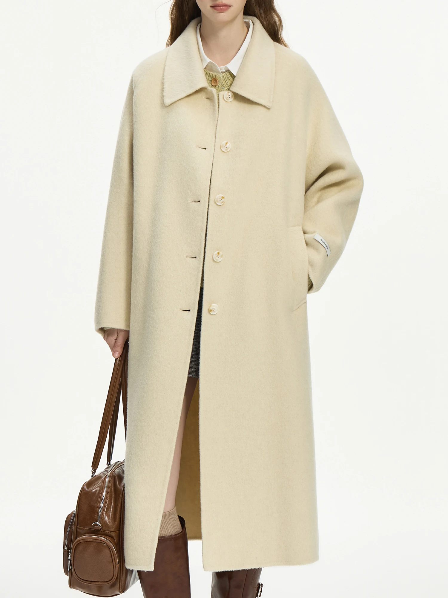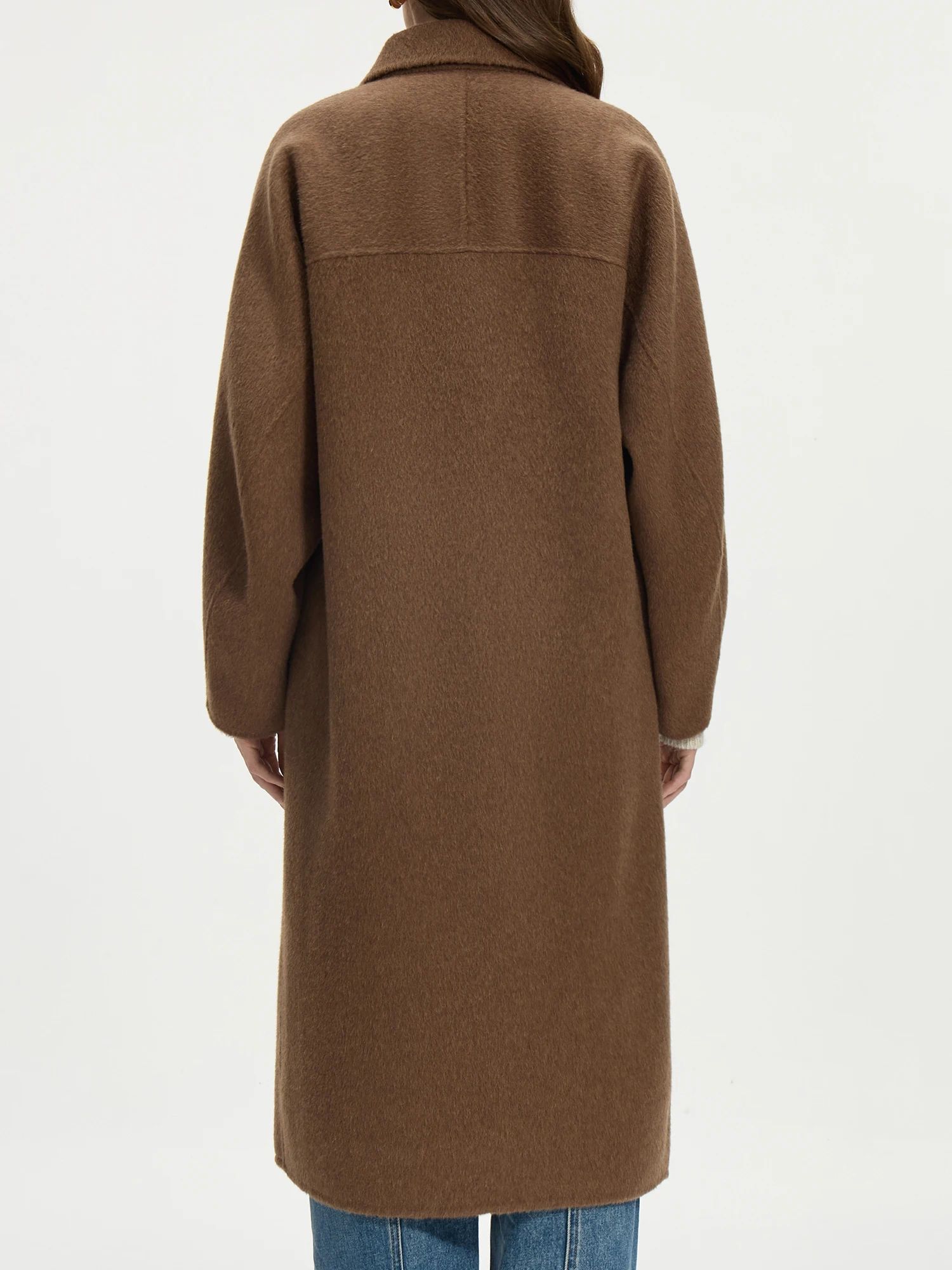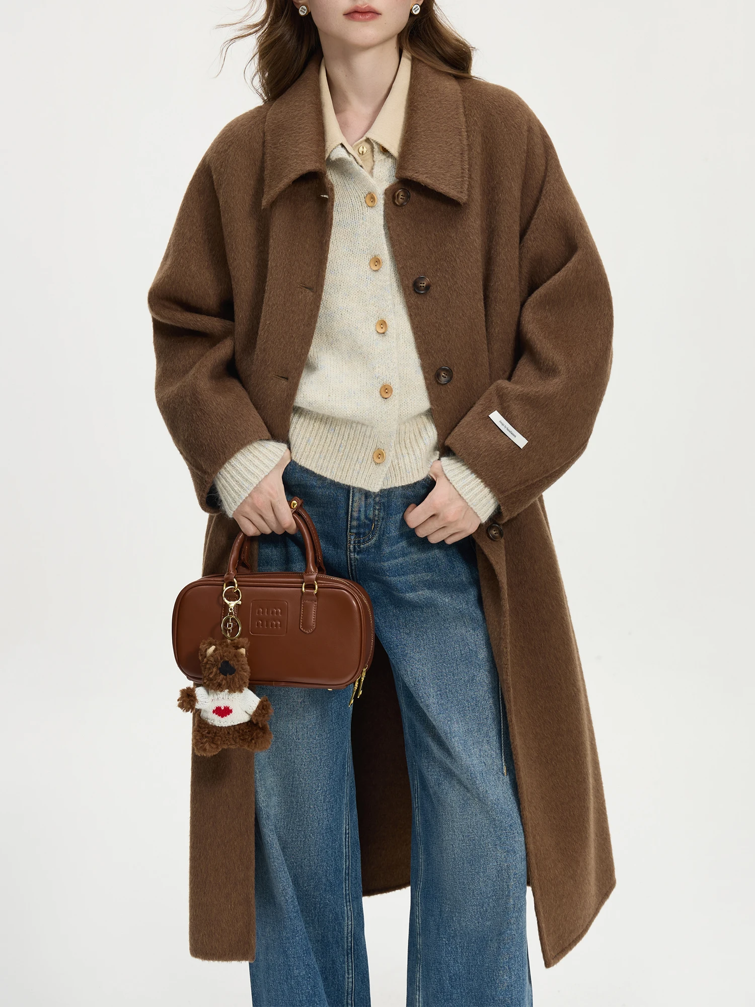 FSLE 95% Wool 5% Camel Wool Lapel Double-sided Tweed 2 Color Coat For Female Winter 2024 New Desig Warm Tweed Jacket 24FS14210